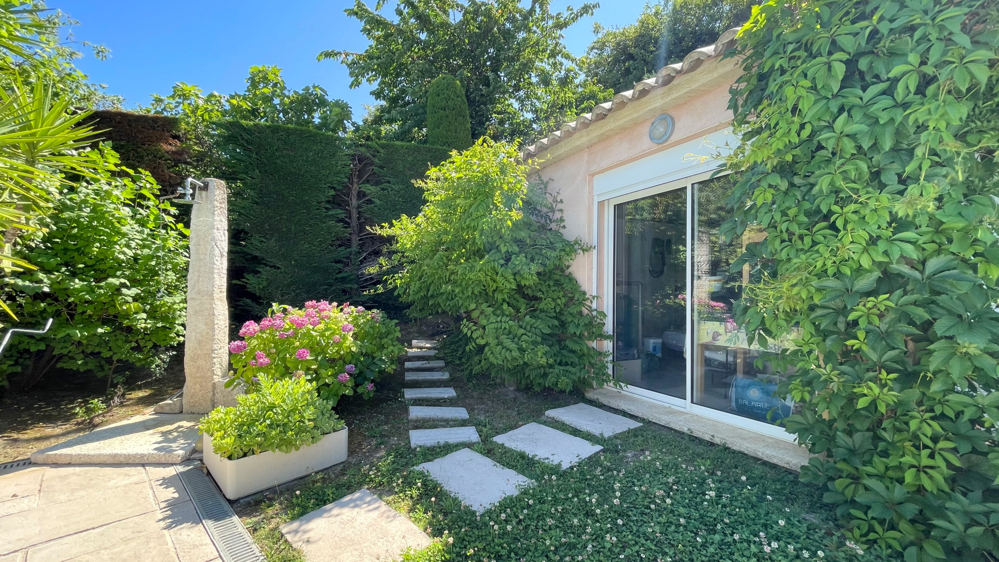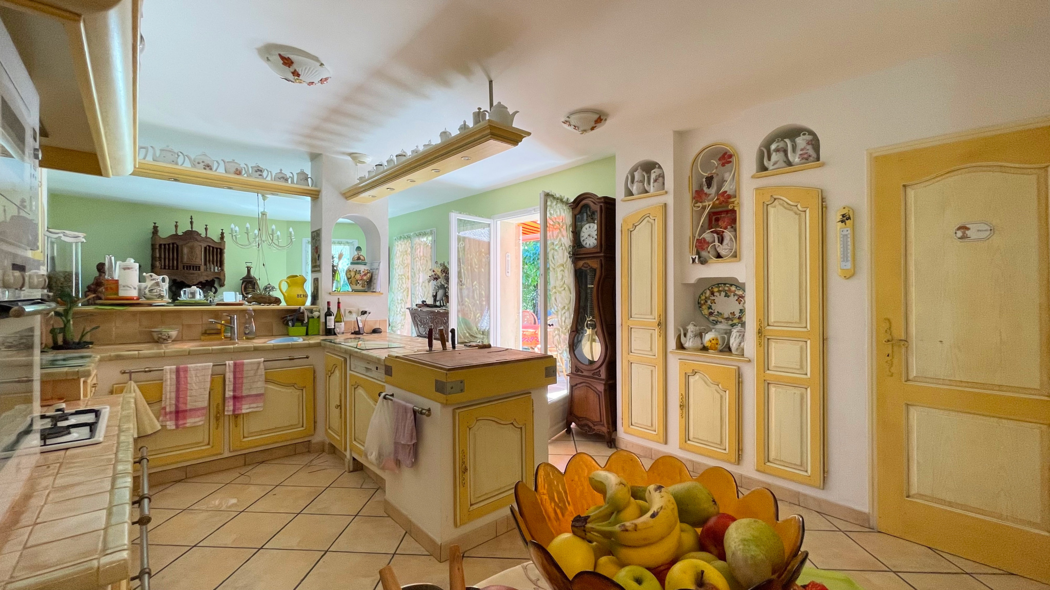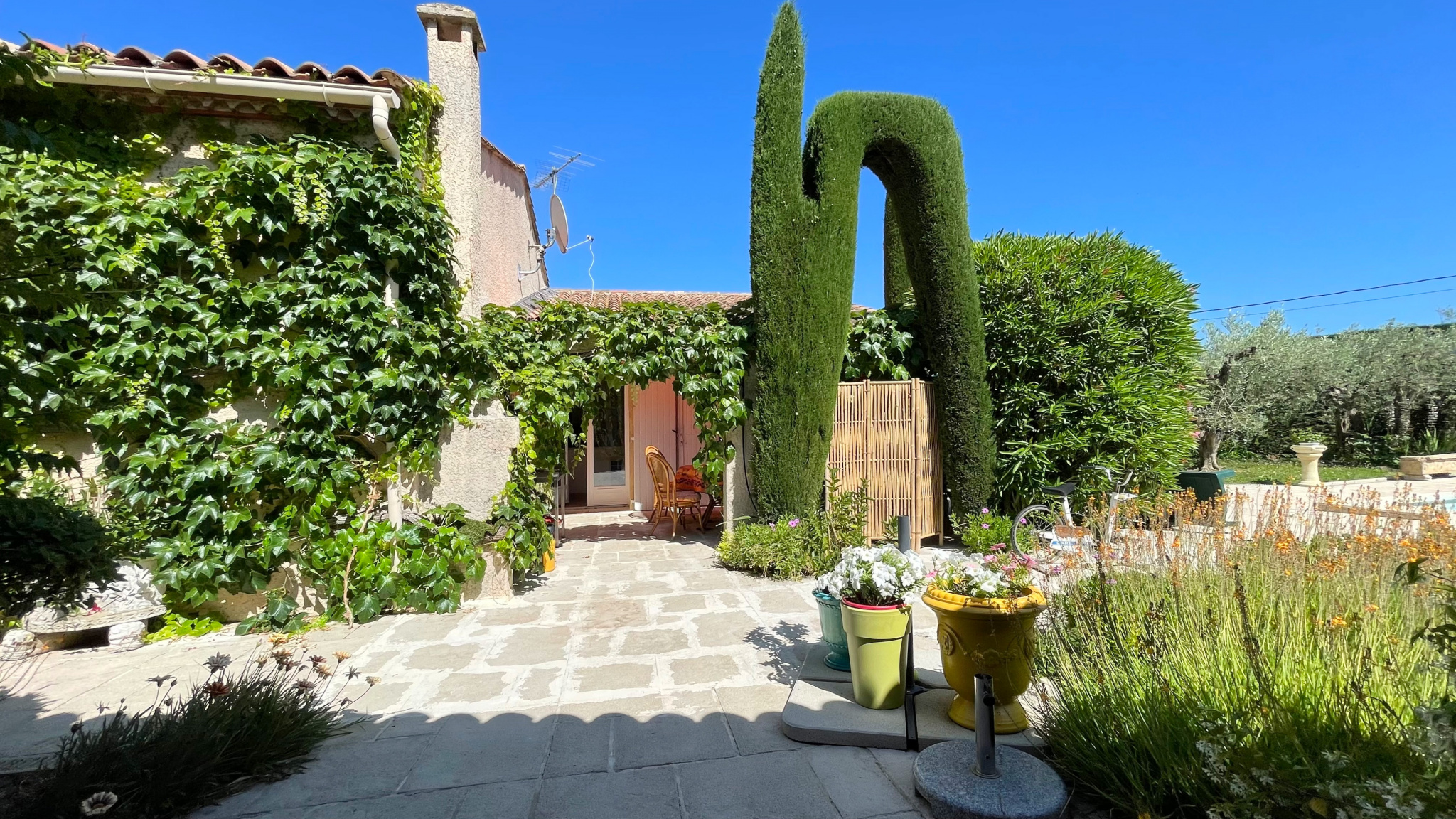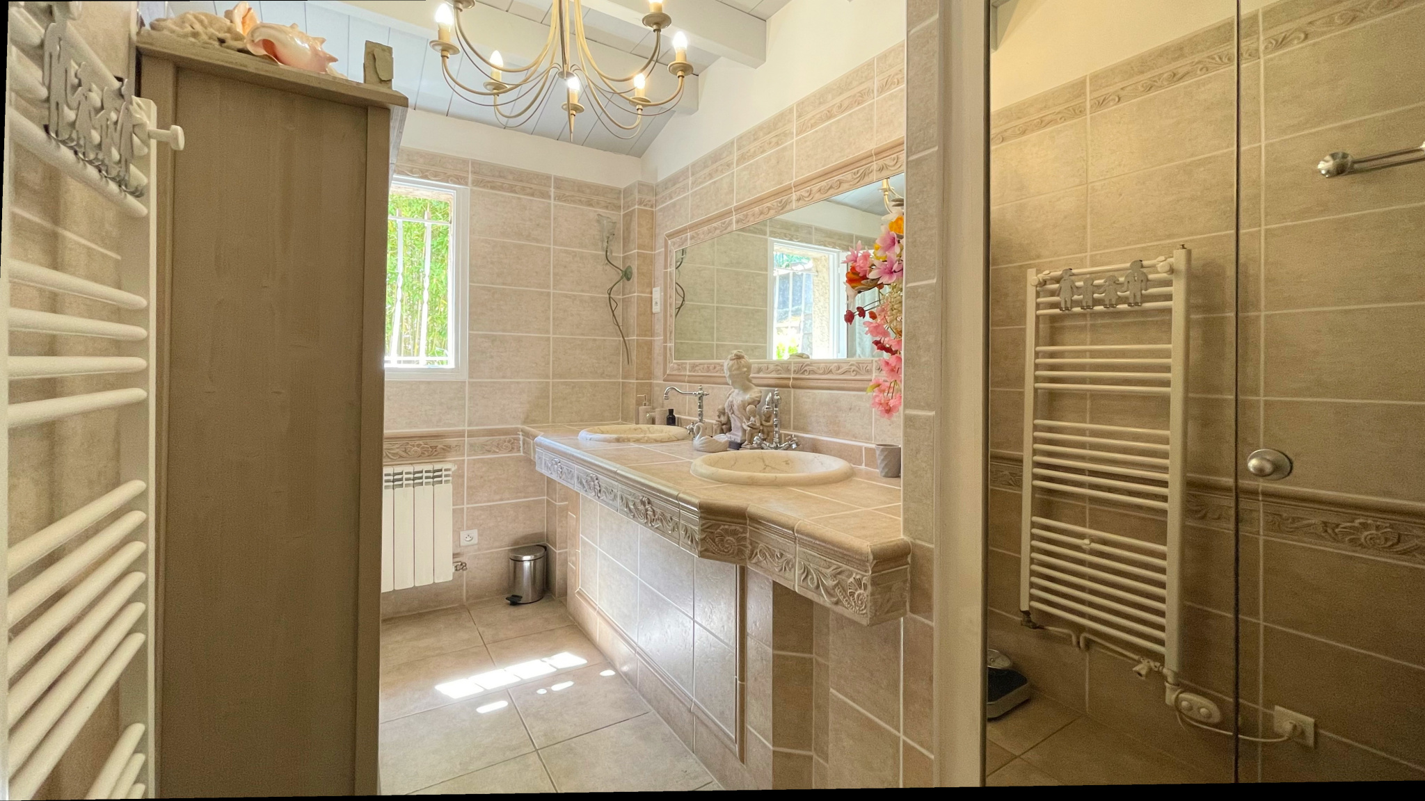 The main part consists of a large entrance hall, a spacious living room with a traditional fireplace, a large equipped Provencal kitchen, the real heart of the house, opening onto the dining room. Oriented East-West, the building benefits from exceptional light throughout the day, with direct access to the garden and exterior terraces from each French window. This part includes a master suite with bathroom, a double office convertible into an additional bedroom, and a second part of the house accessible from the entrance hall, offering a bathroom, two bedrooms with mezzanine, a bedroom en -suite with shower, equipped kitchen, ideal for a gite or to receive loved ones in complete independence.