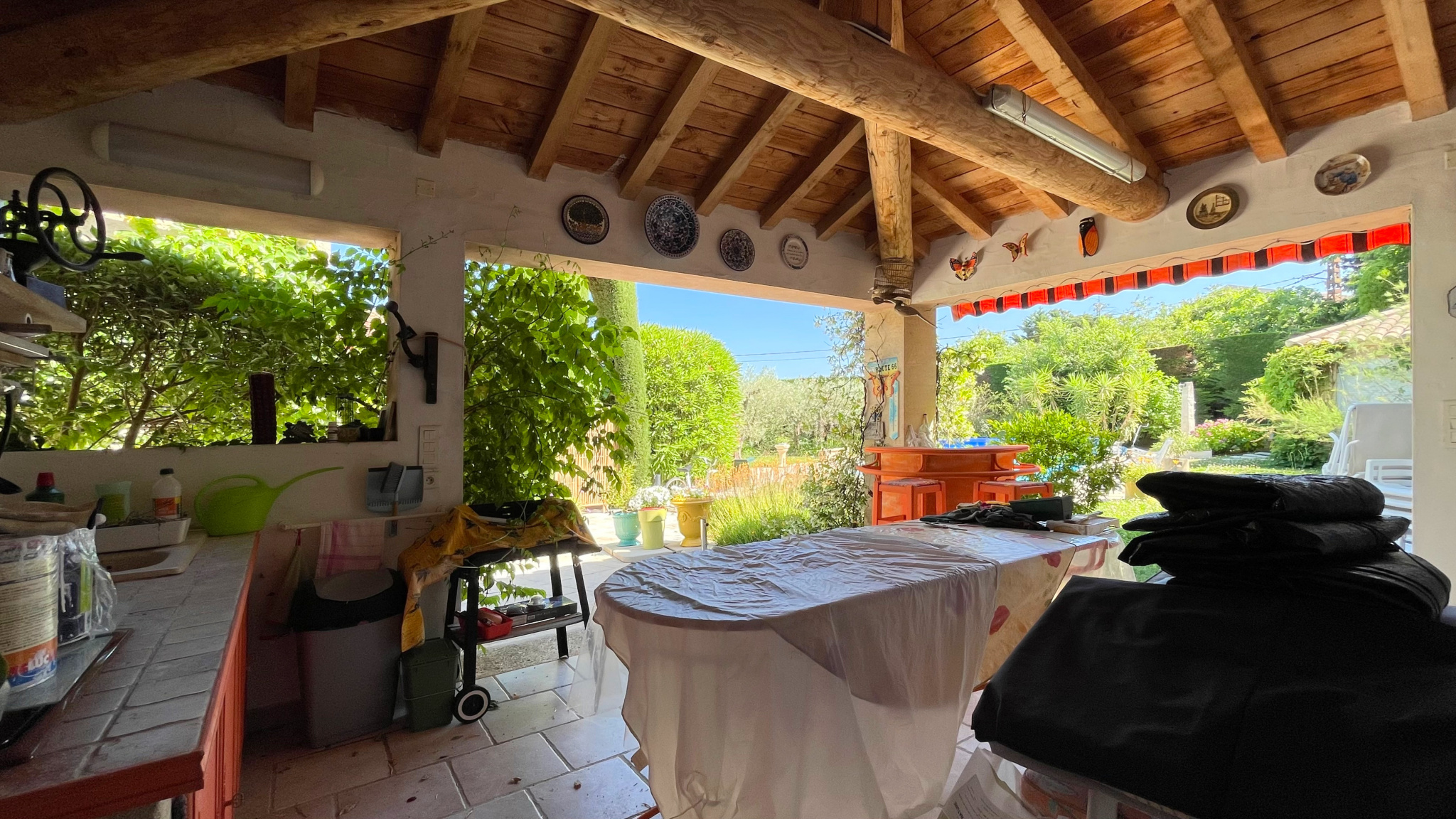 The 3200m2 park, nicely landscaped and planted with Mediterranean species, houses a double garage, a 10 x 5 meter swimming pool with technical room convertible into a studio, a summer kitchen ideal for outdoor meals, and a practical laundry room.