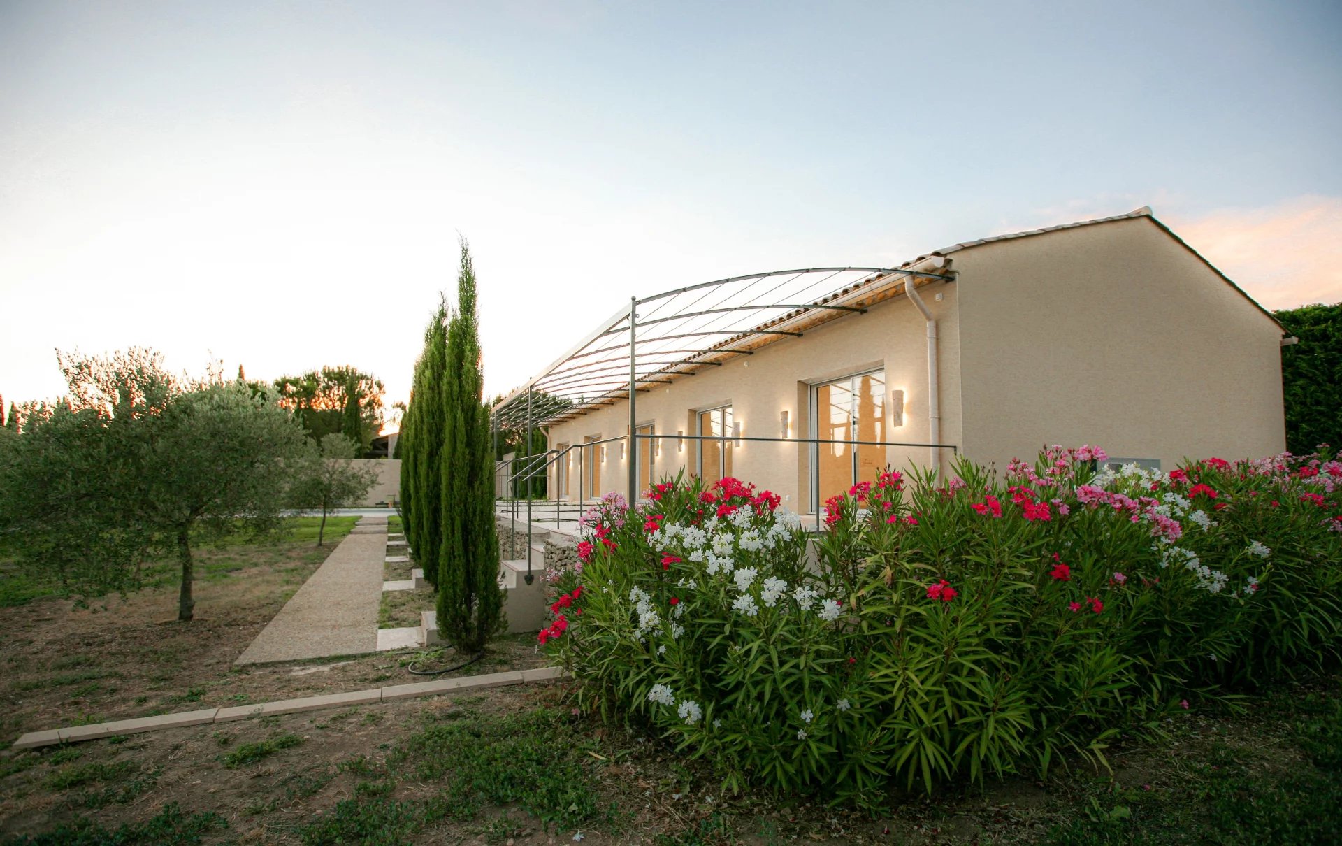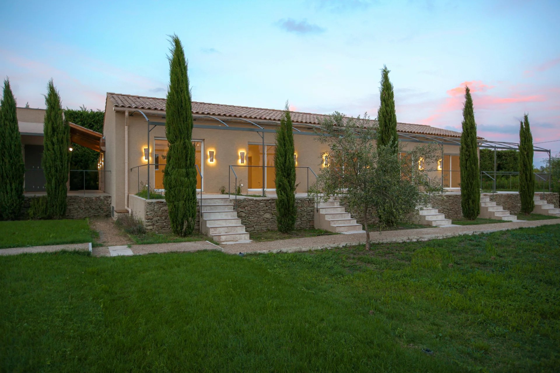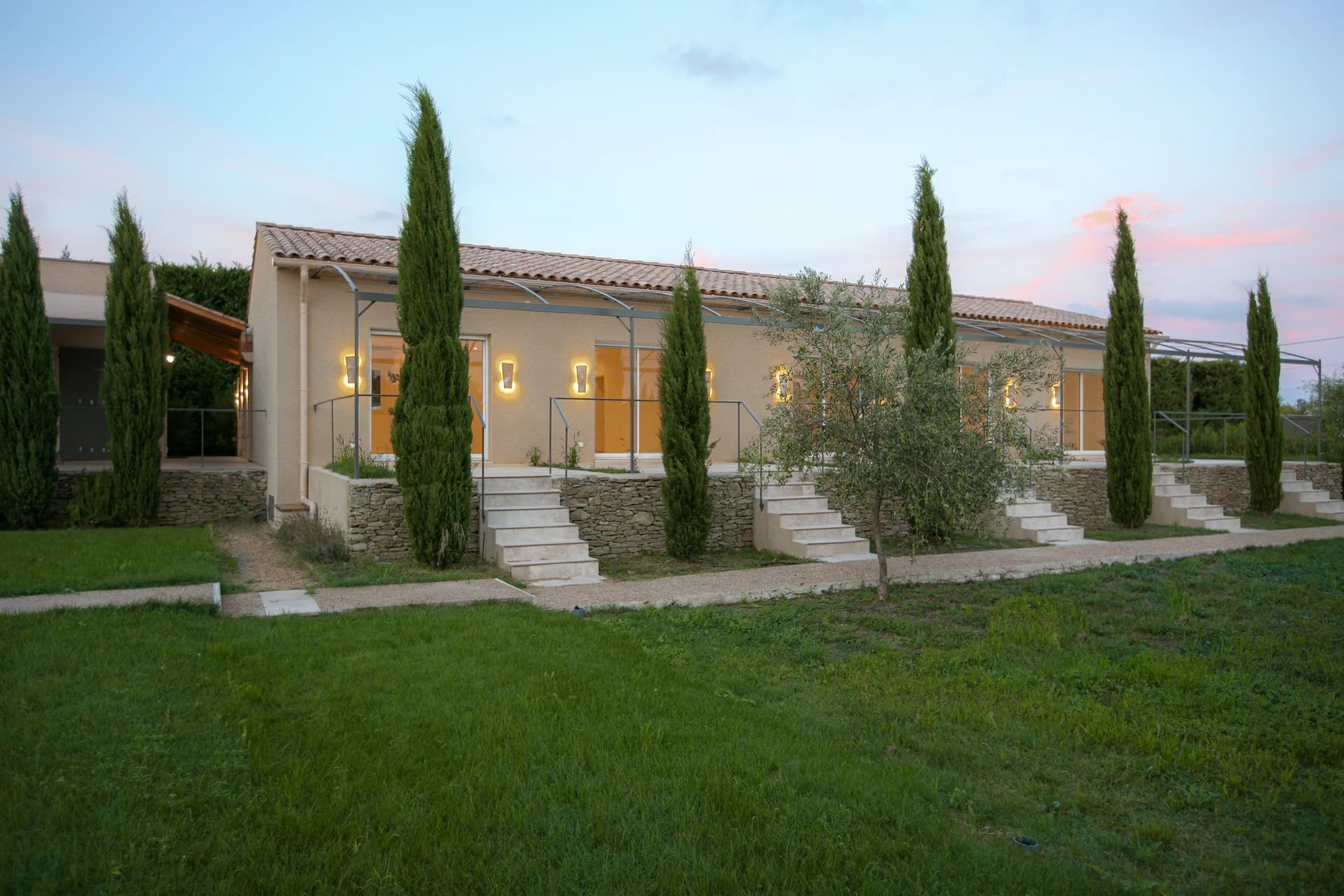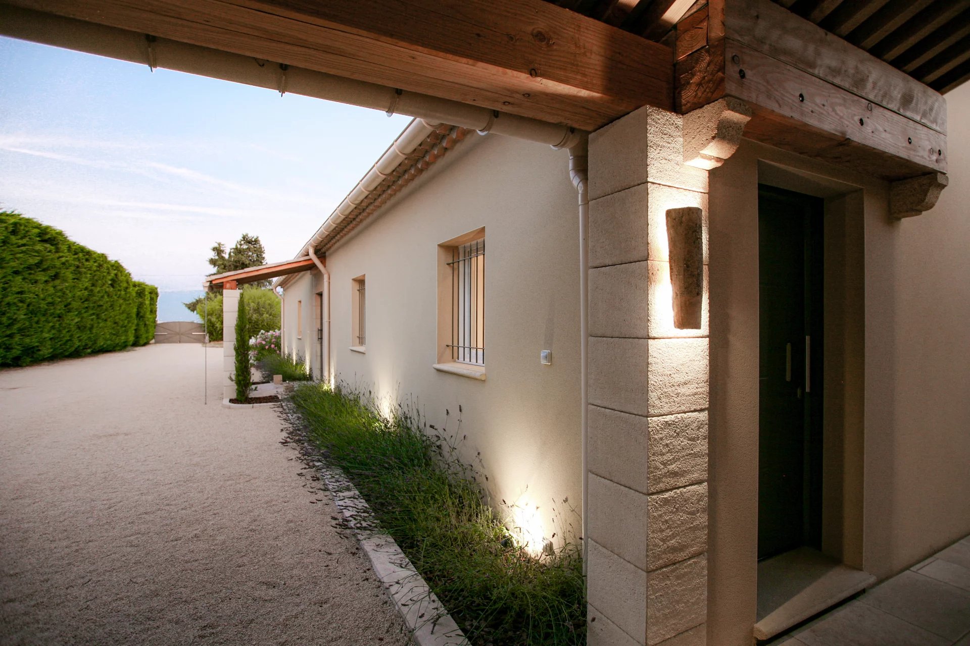 We have found this beautiful contemporary house of 267 m2 in one of the most sought-after areas of Uzes, very close to the shops. The house has two wings, one (west) comprising a large living room, a semi-open-plan kitchen, two bedrooms, 2 shower rooms and 3 separate bathrooms.