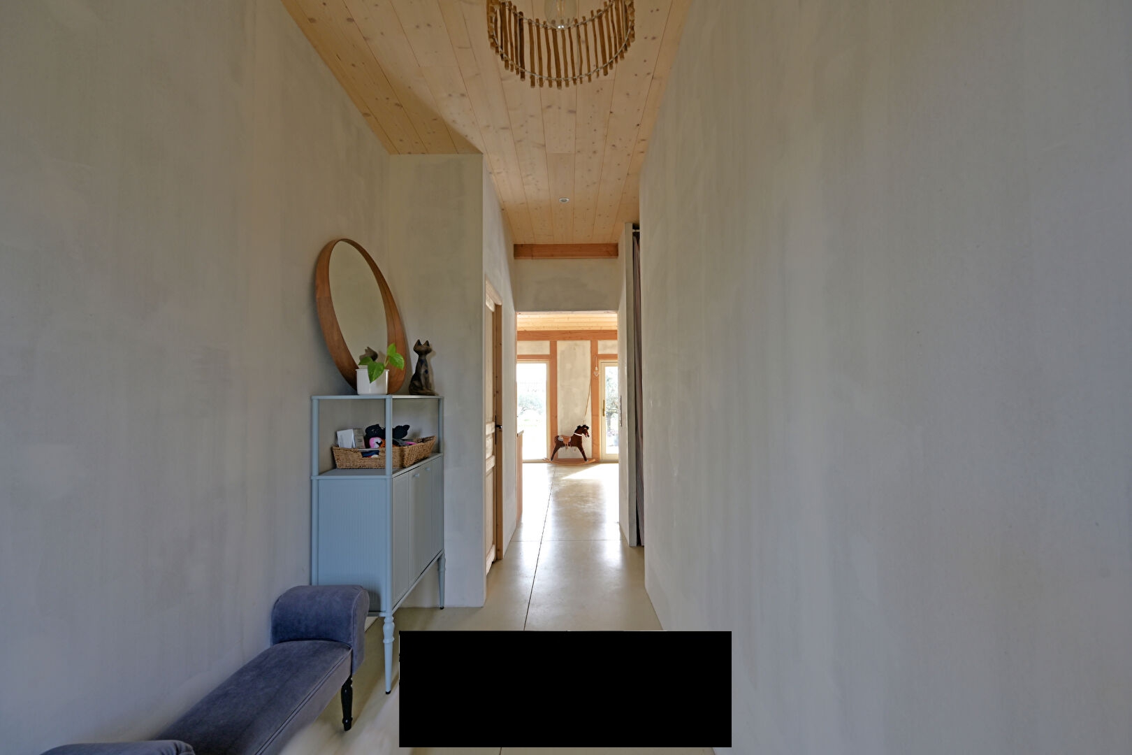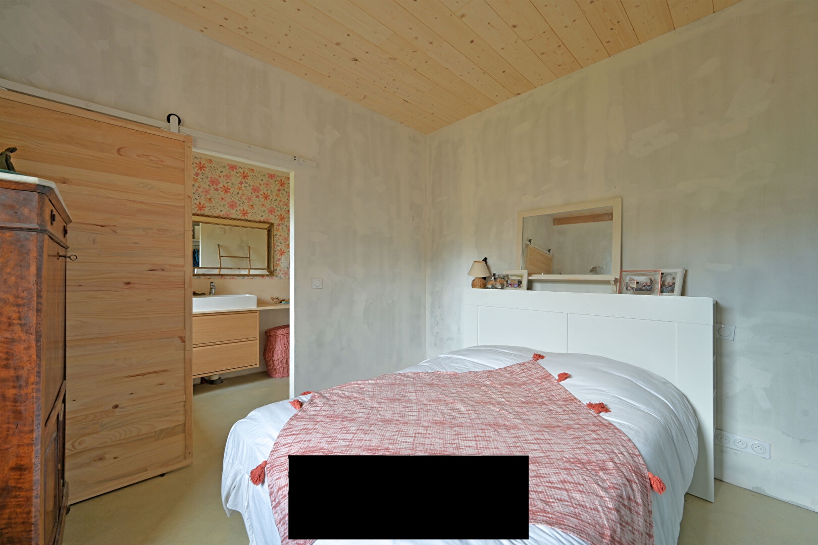 Year-round thermal comfort is ensured by a double-flow mechanical ventilation system, high-performance bio-based insulation, and a wood-burning stove positioned at the heart of the house. The floating quartz concrete slab, constructed without thermal breaks, structures the volumes with understated elegance and enhances the building’s thermal mass. On the roof, cellulose wadding insulation, combined with sandwich panels, guarantees excellent summer comfort, particularly sought after in this region.