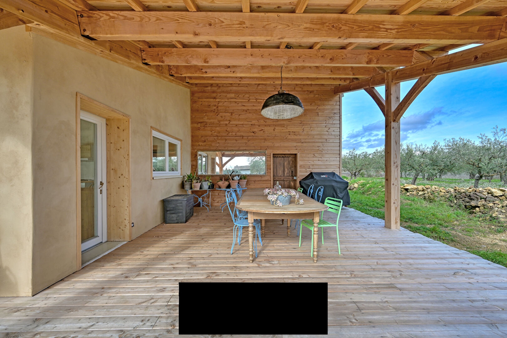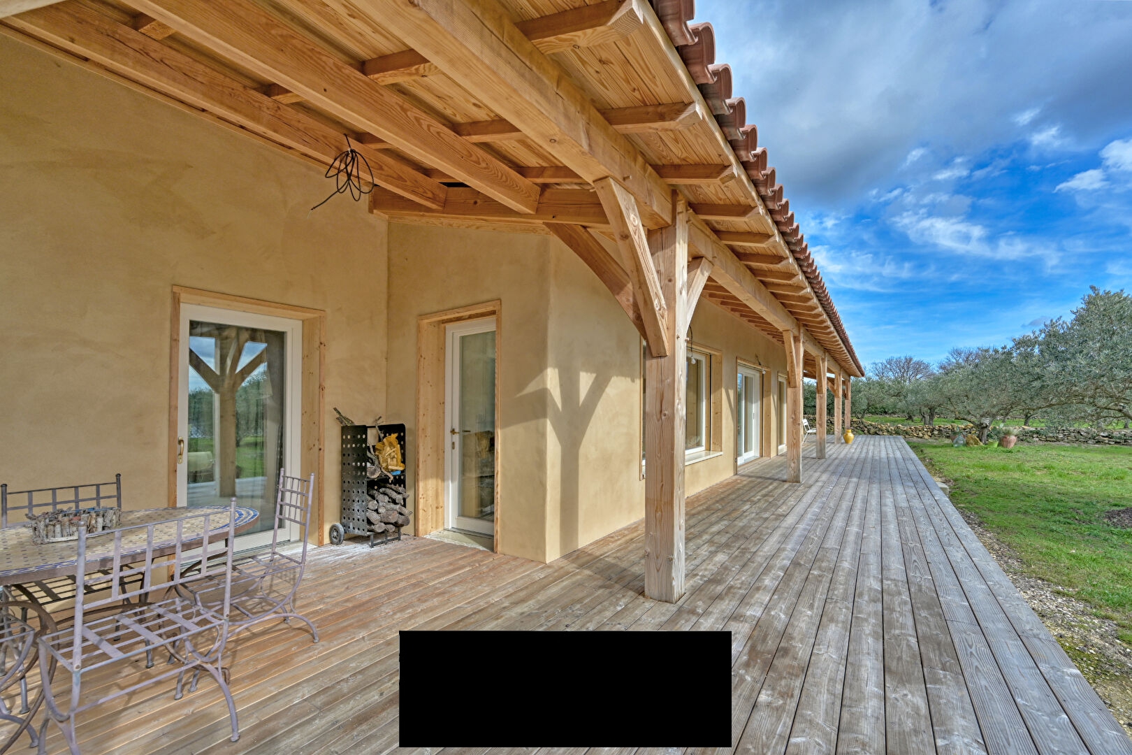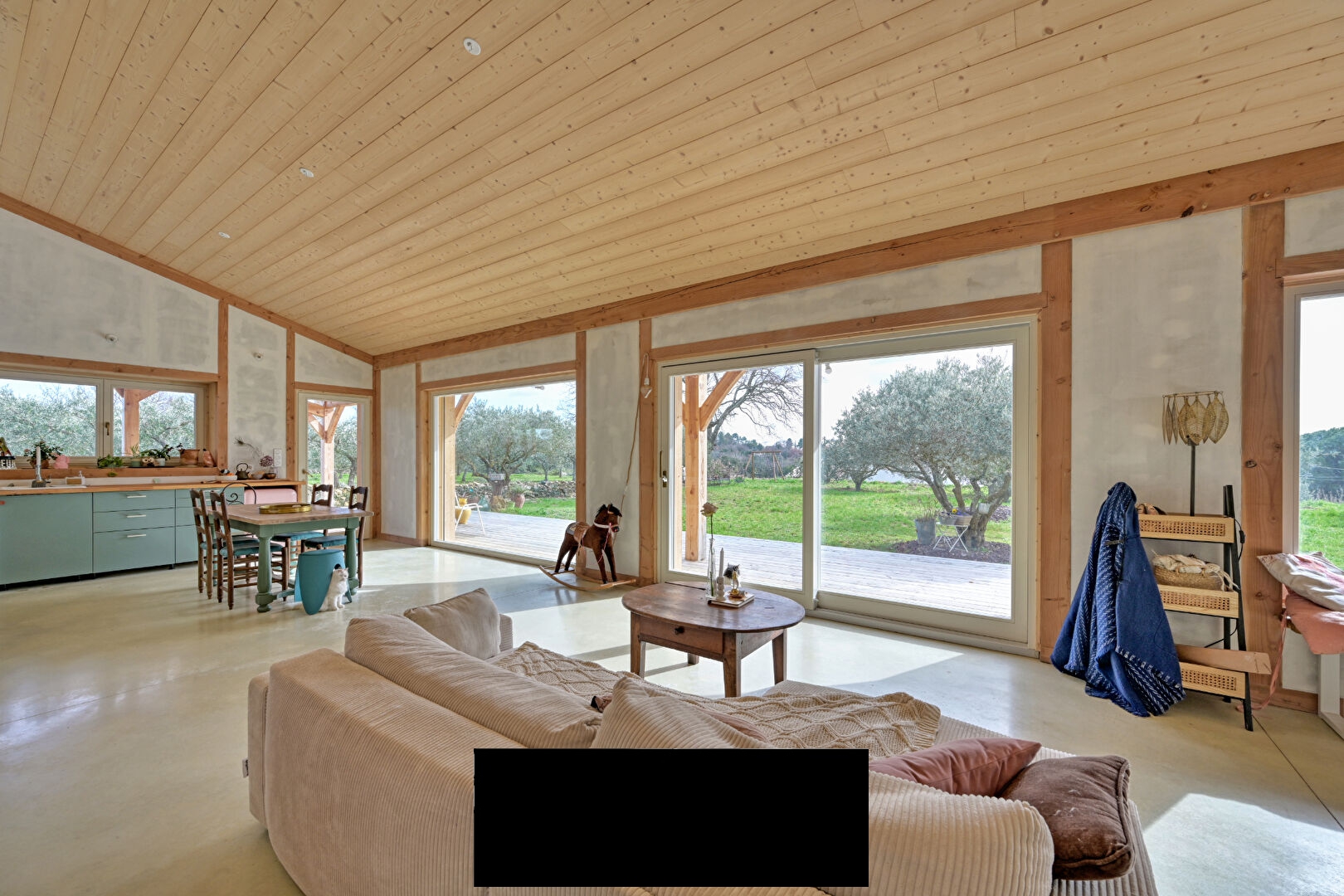 Near Uzes, on the heights of a village with all amenities, in a protected environment planted with olive trees, this contemporary house offers a sensitive interpretation of living, where bioclimatic architecture, natural materials, and a harmonious relationship to the site.