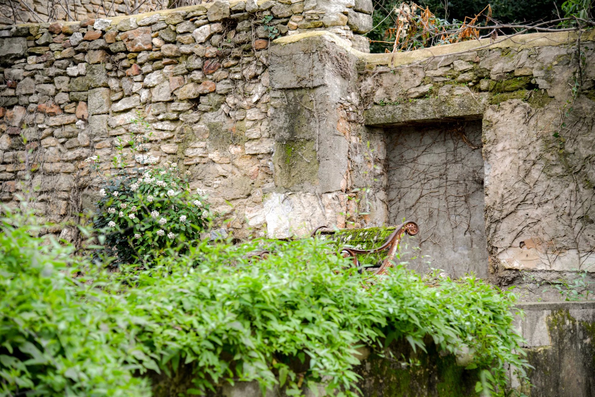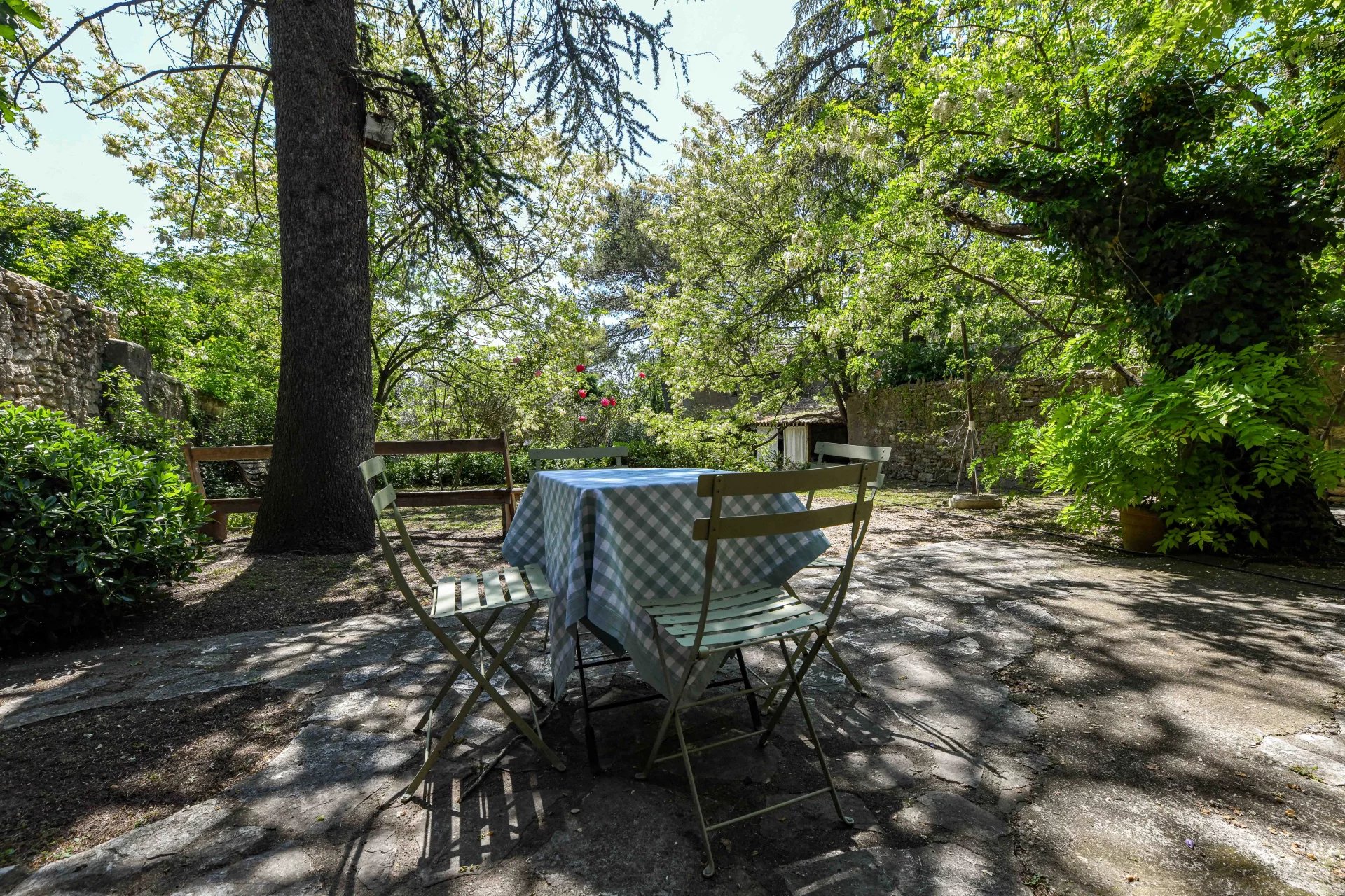 The garden (1000 m2 plot) is south-facing and planted with major trees. It is peaceful and bordered by stone walls.