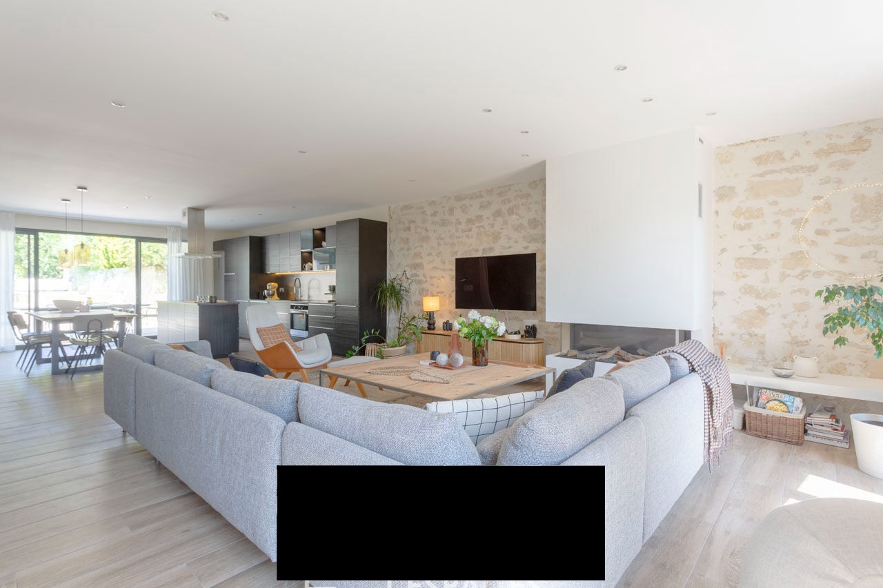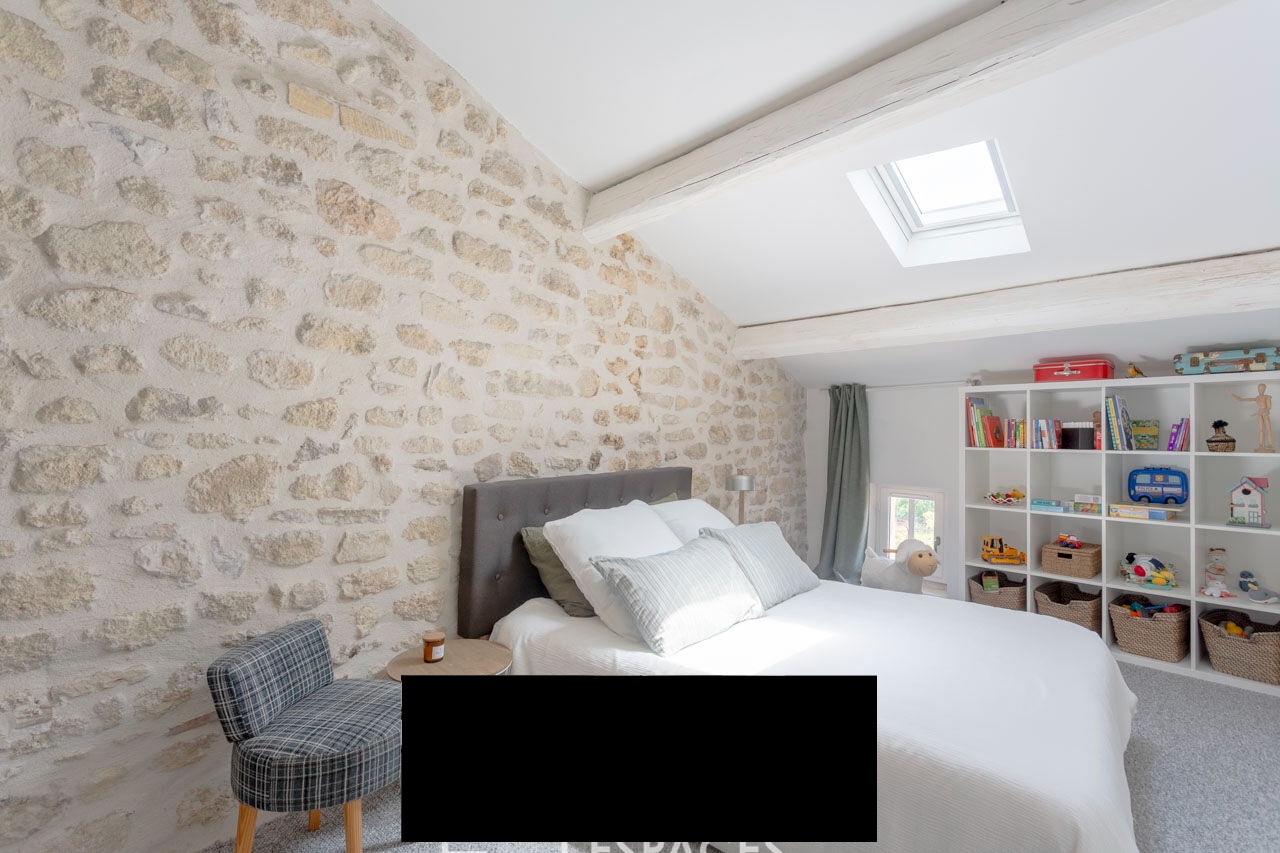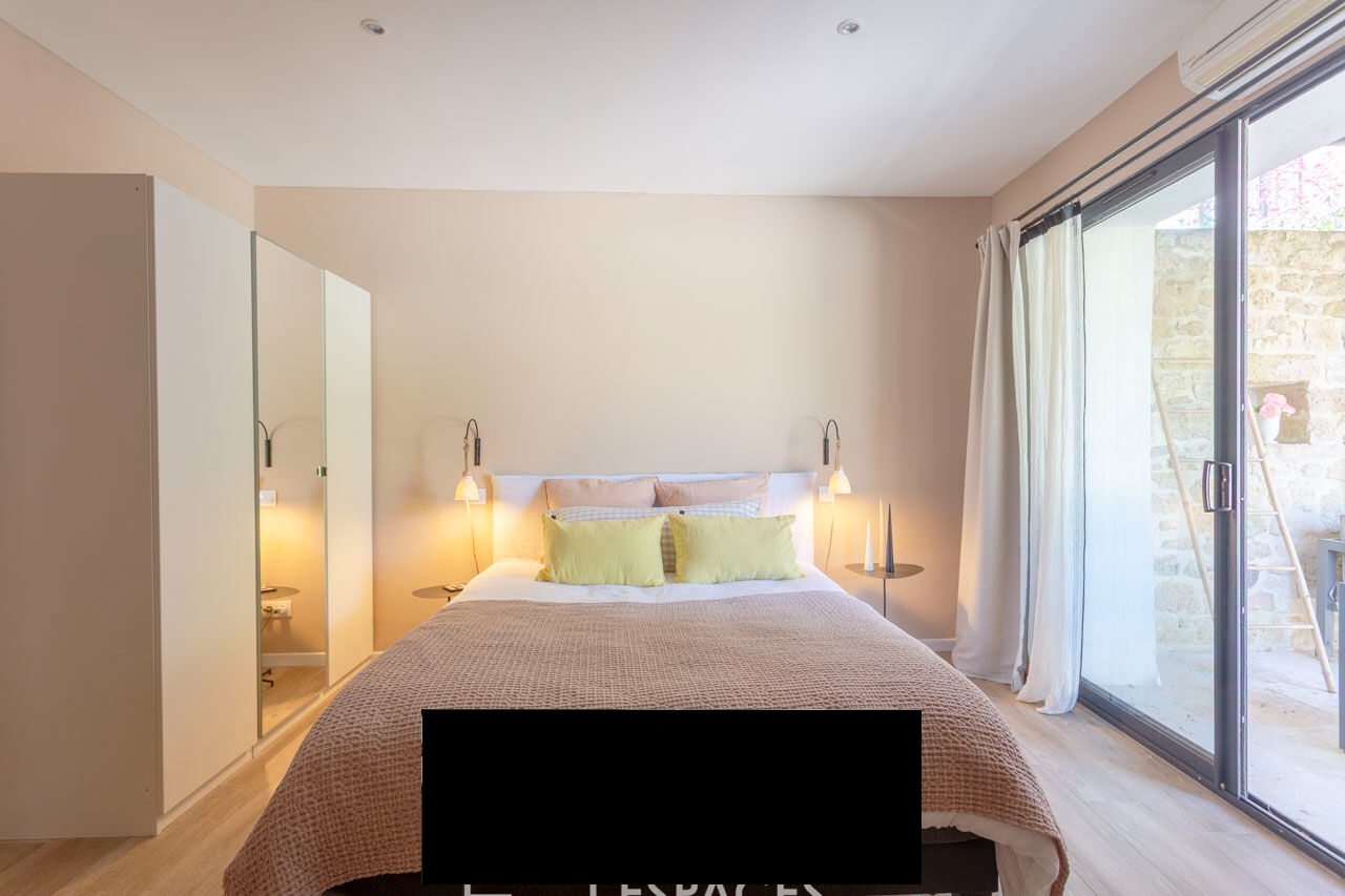 The main house opens onto a generous 60 m2 living space, where the volumes interact seamlessly: open kitchen, dining room, living room around a gas fireplace, designed for winter evenings when we still dream of summer. Two bedrooms, a bathroom and toilets complete this level. Upstairs, three additional bedrooms, two with private bathrooms, a large dressing room and two toilets invite you to relax. Everything is air-conditioned, fluid, functional and yet unique.