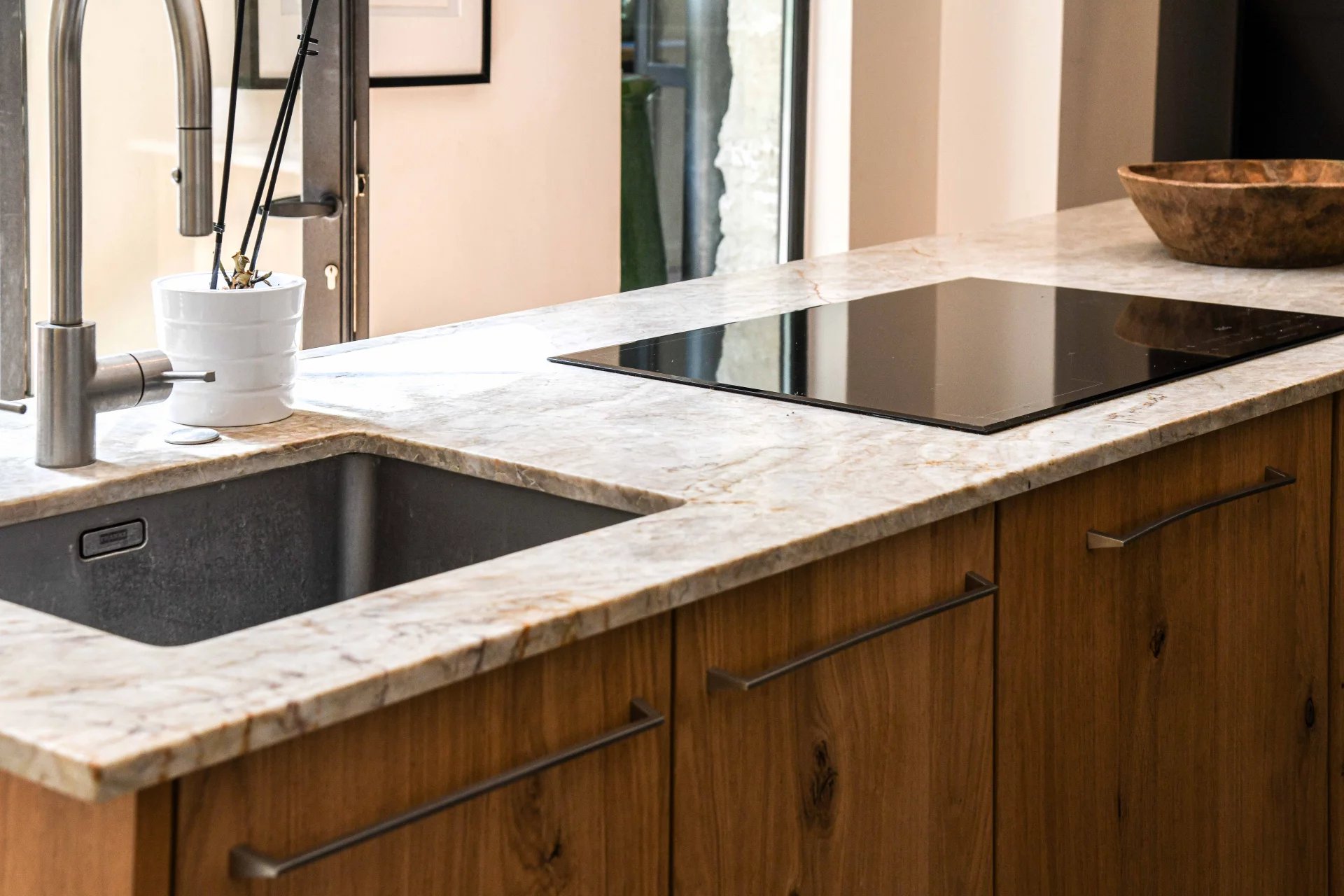 On the other side, we enter a completely renovated and fully equipped kitchen that opens onto the garden. Then we have a large living area including a dining room and a lounge, both of which open onto the garden through beautiful, high-quality French windows. A functional laundry room and a guest toilet complete this level.