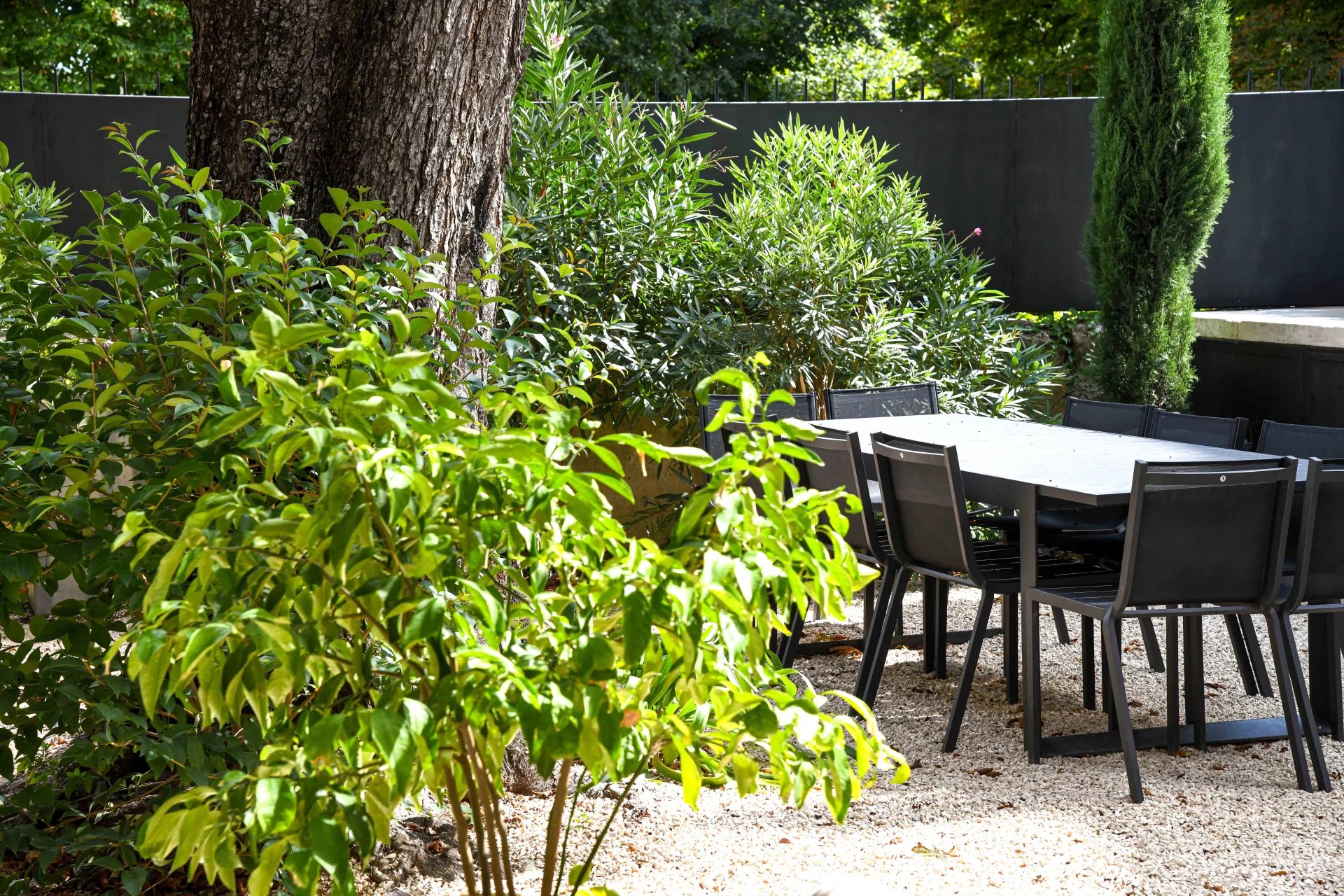 Outside, the garden is a green haven where you will find a large terrace shaded by a magnificent chestnut tree and a pool.