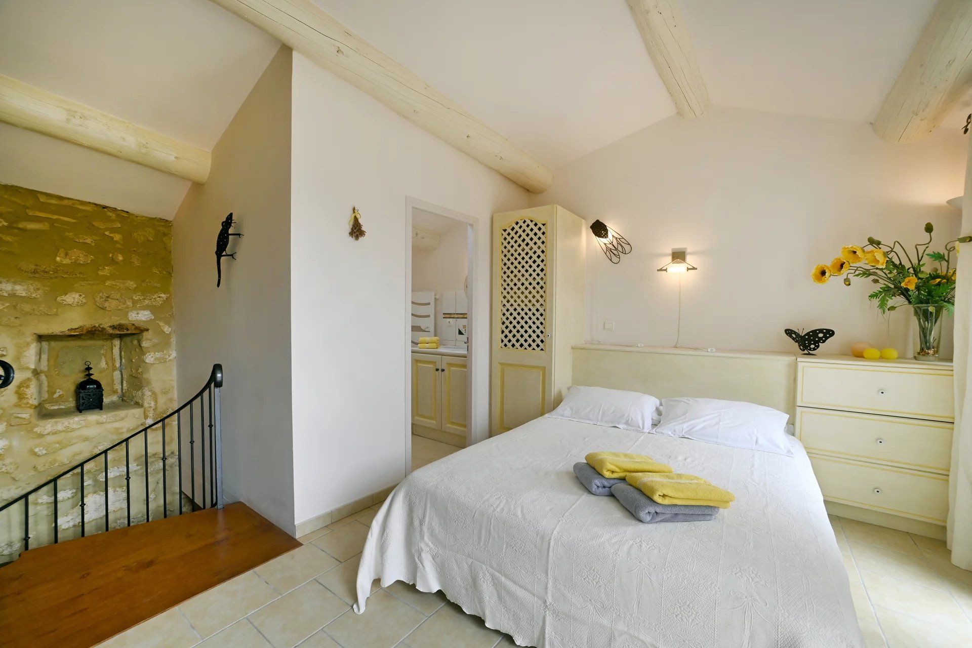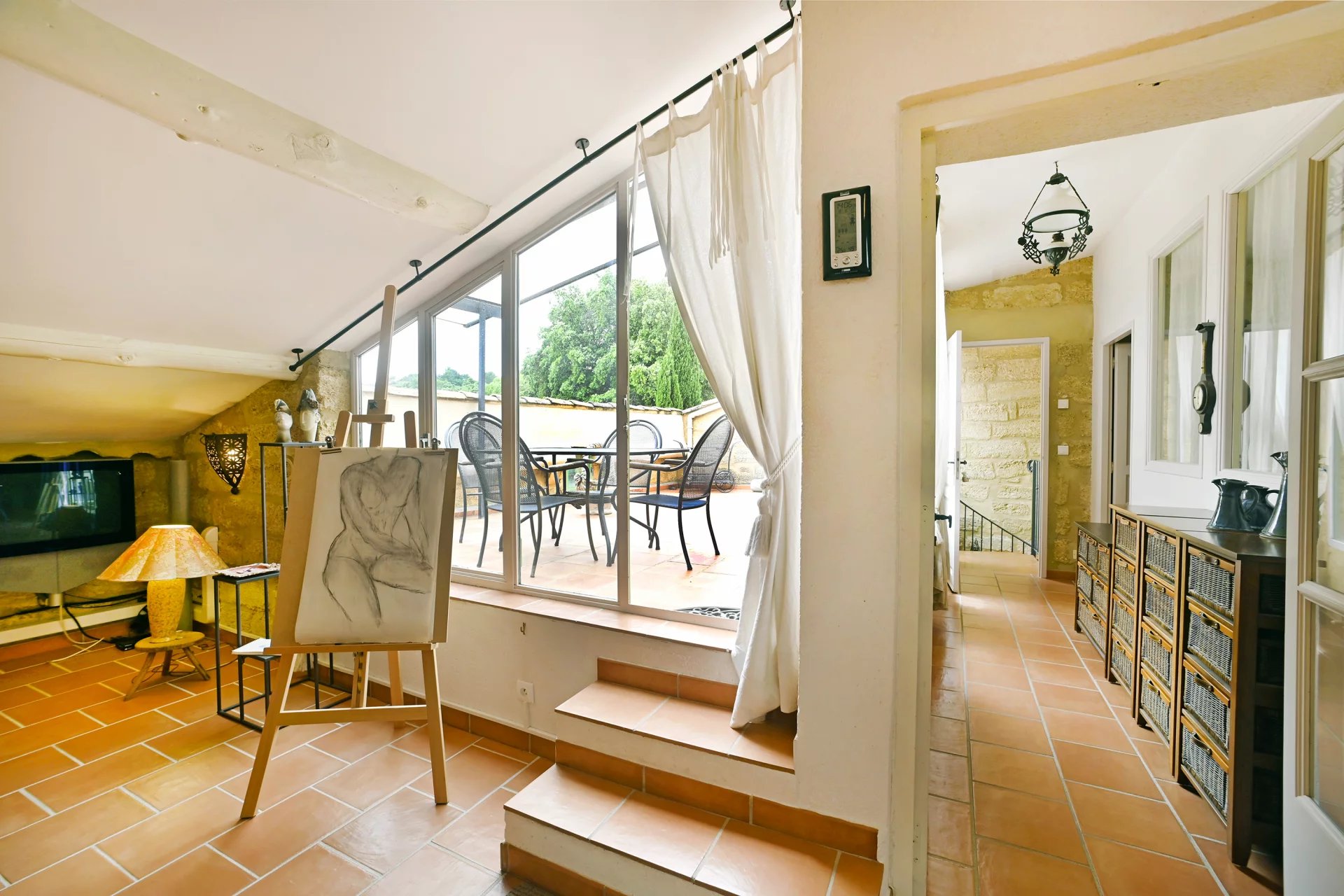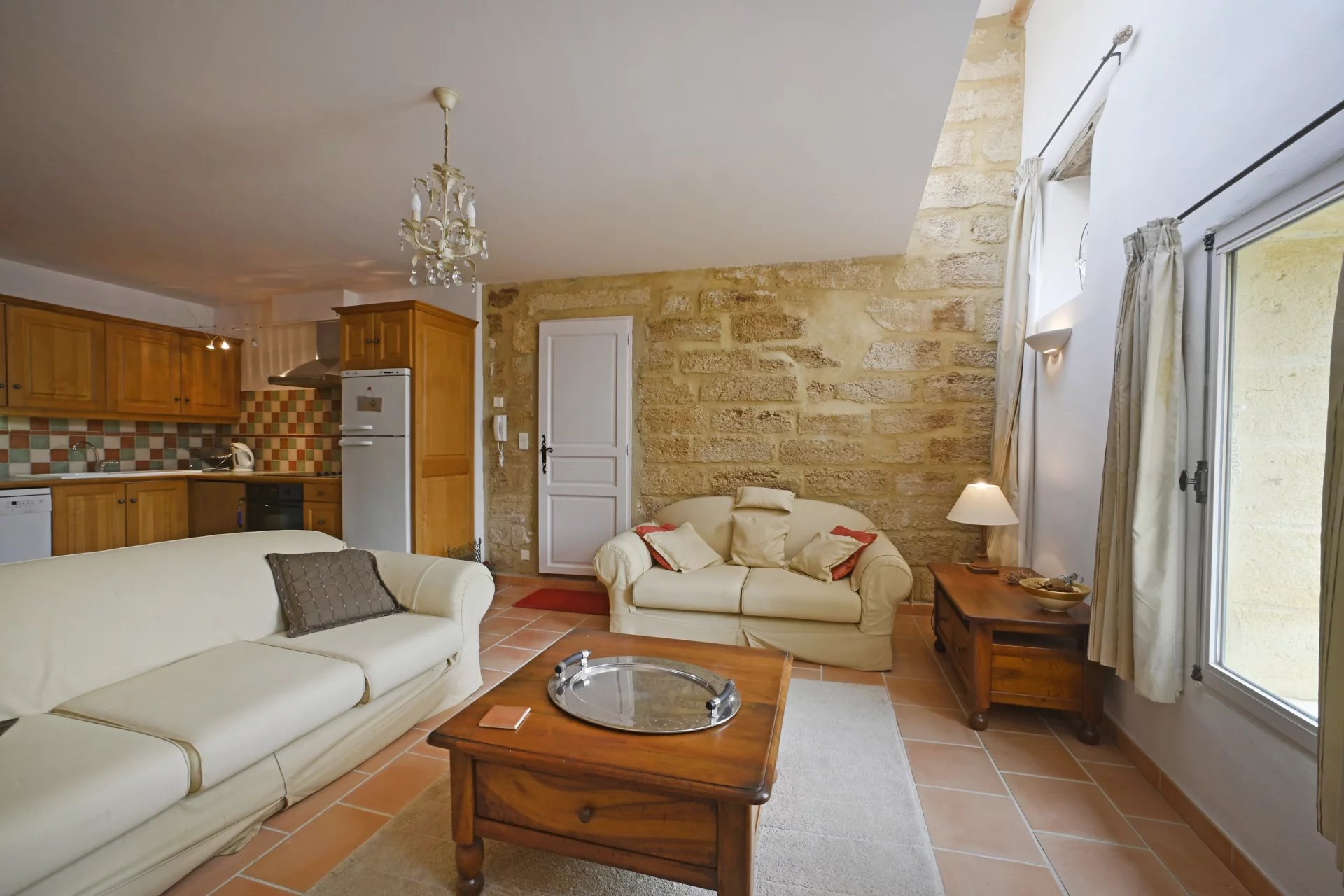 A studio on the ground floor, comprising a lovely living area with kitchenette, a bedroom and a shower room.