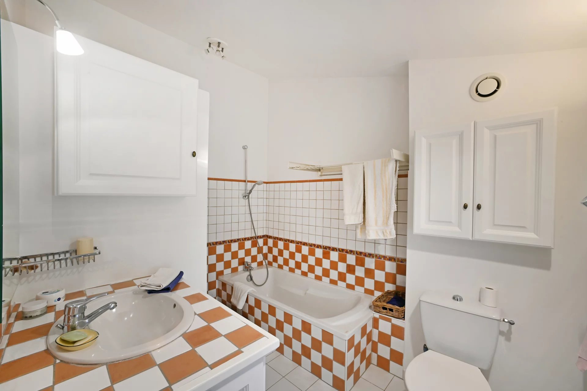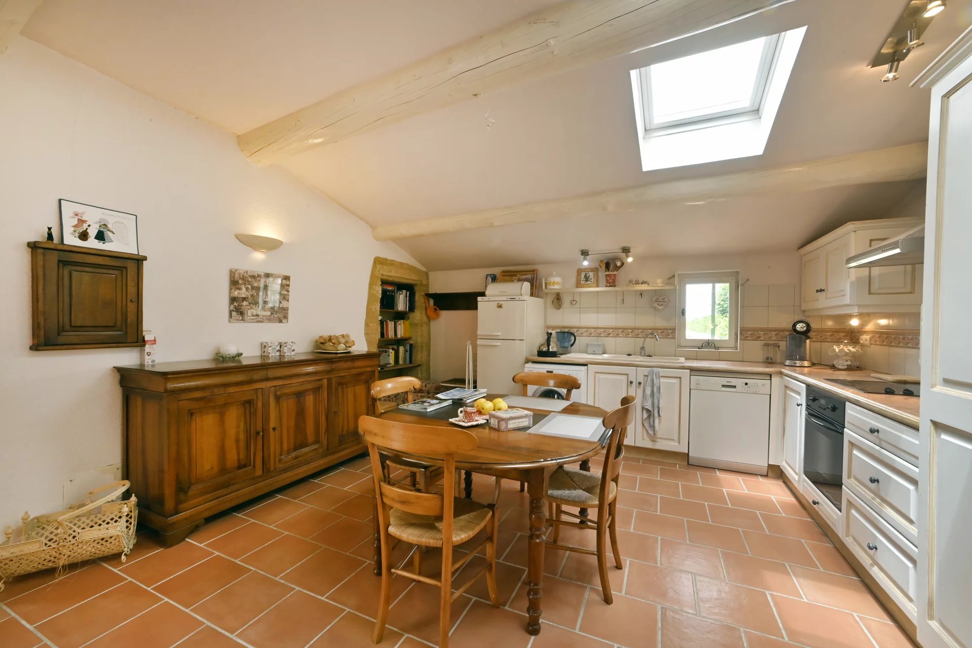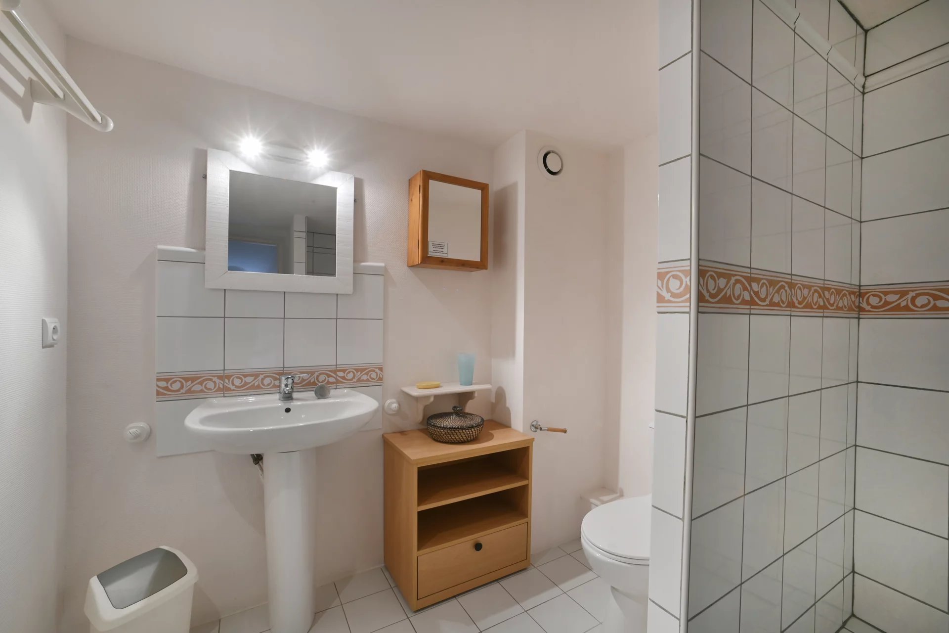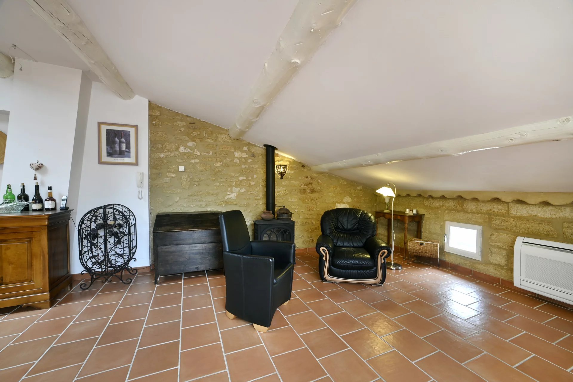 A studio on the ground floor, comprising a lovely living area with kitchenette, a bedroom and a shower room.
