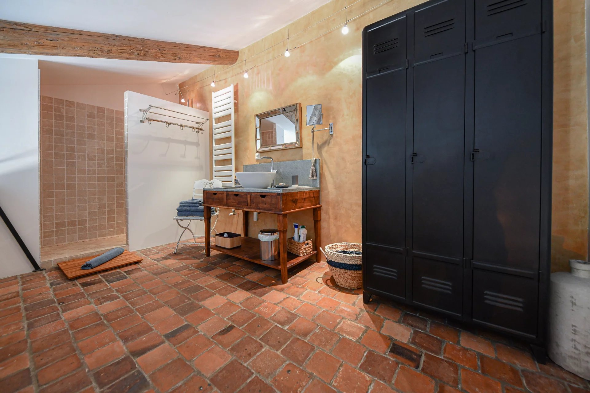 The single-story living space consists of a beautiful reception room where the living room and dining room form an open-plan area opening onto a charming interior courtyard. Spacious and modern, the kitchen is equipped with an authentic Gaudin stove and a dining area ideal for informal meals. It opens onto a sunny, sheltered courtyard perfect for outdoor dining.