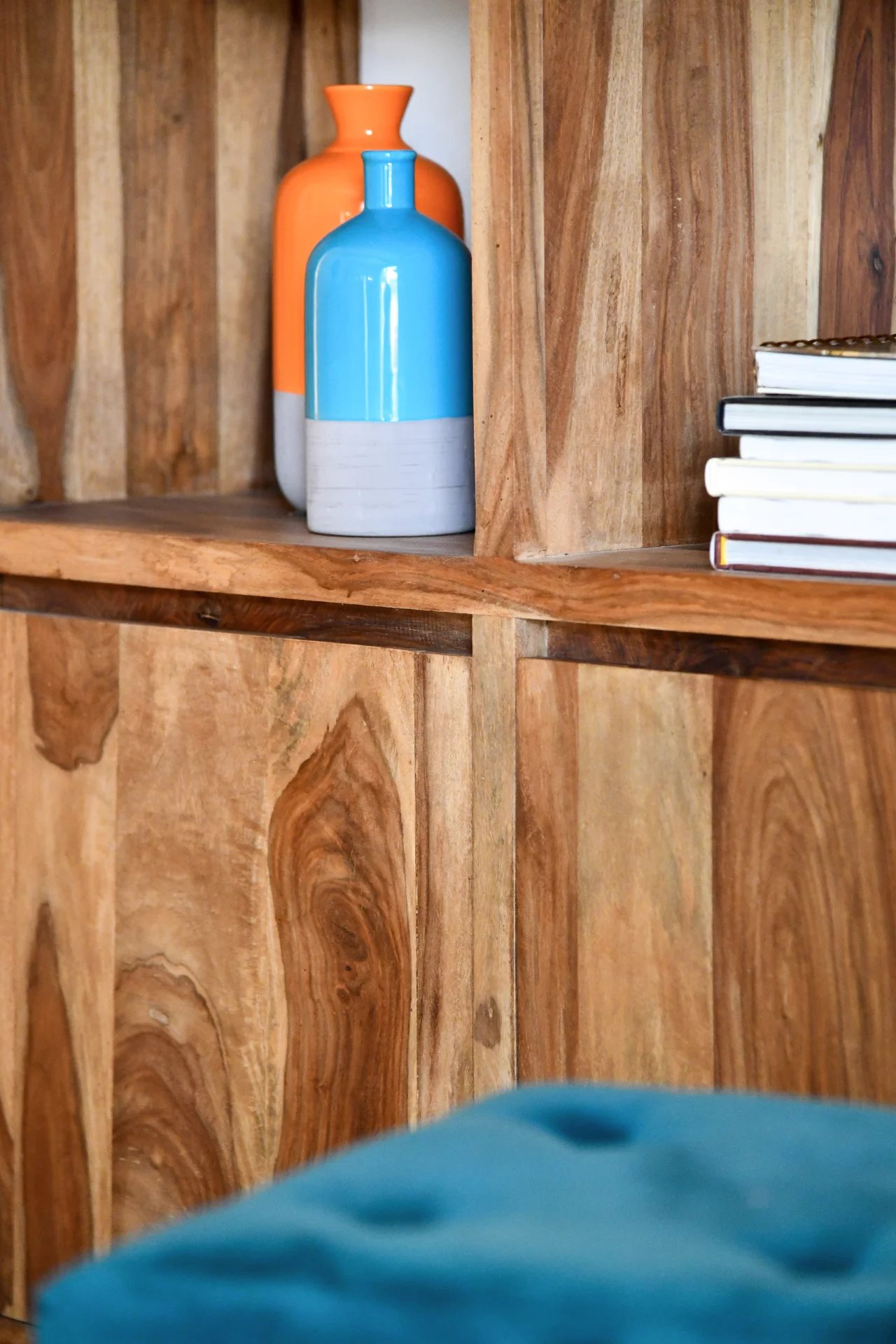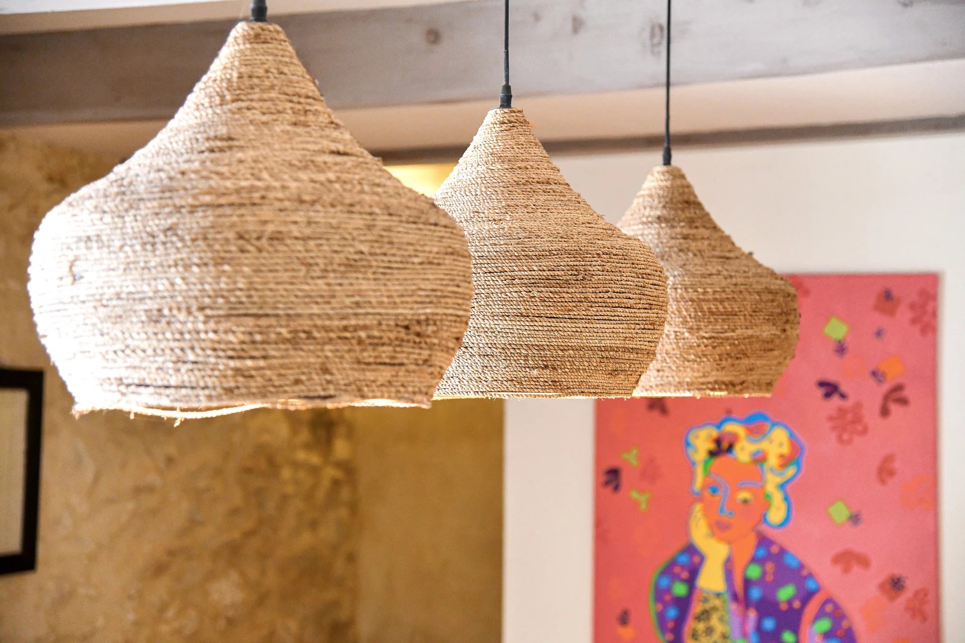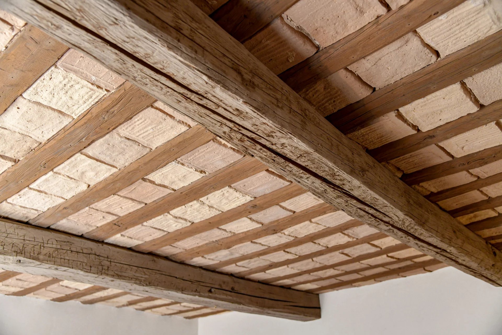 The single-story layout continues with a guest bathroom, a convenient laundry room, an office, and a second living room, designed as a more intimate space. The latter is particularly cosy, having retained its terracotta floors, old beams, and an open fireplace.