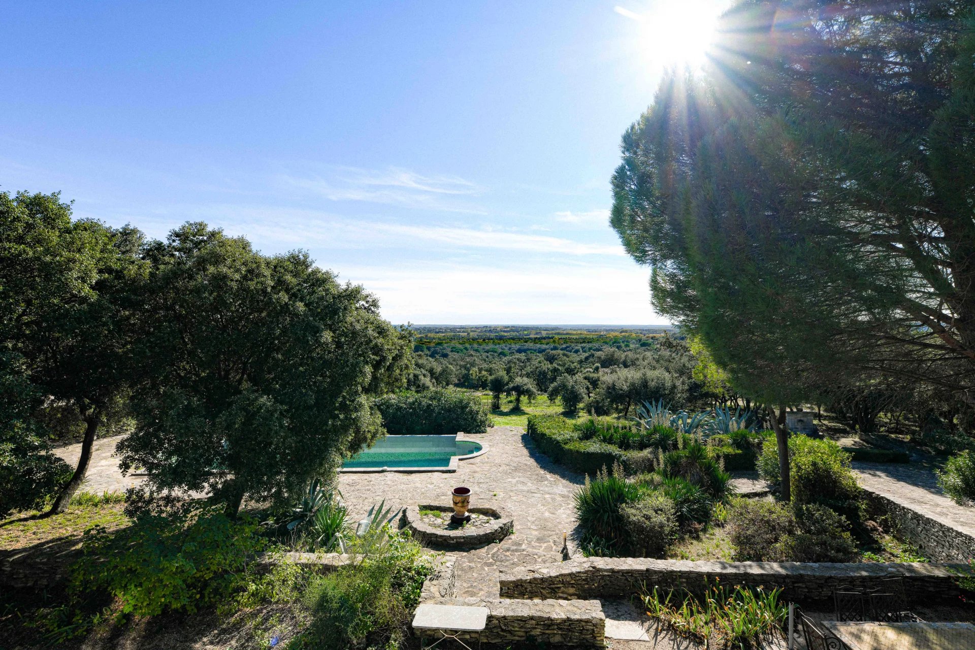 In detail, An exceptional property nestling on the heights of Uzes with uninterrupted views of the duchy and its towers, this sumptuous property with a total living area of around 414 m2 offers an exceptional living experience.