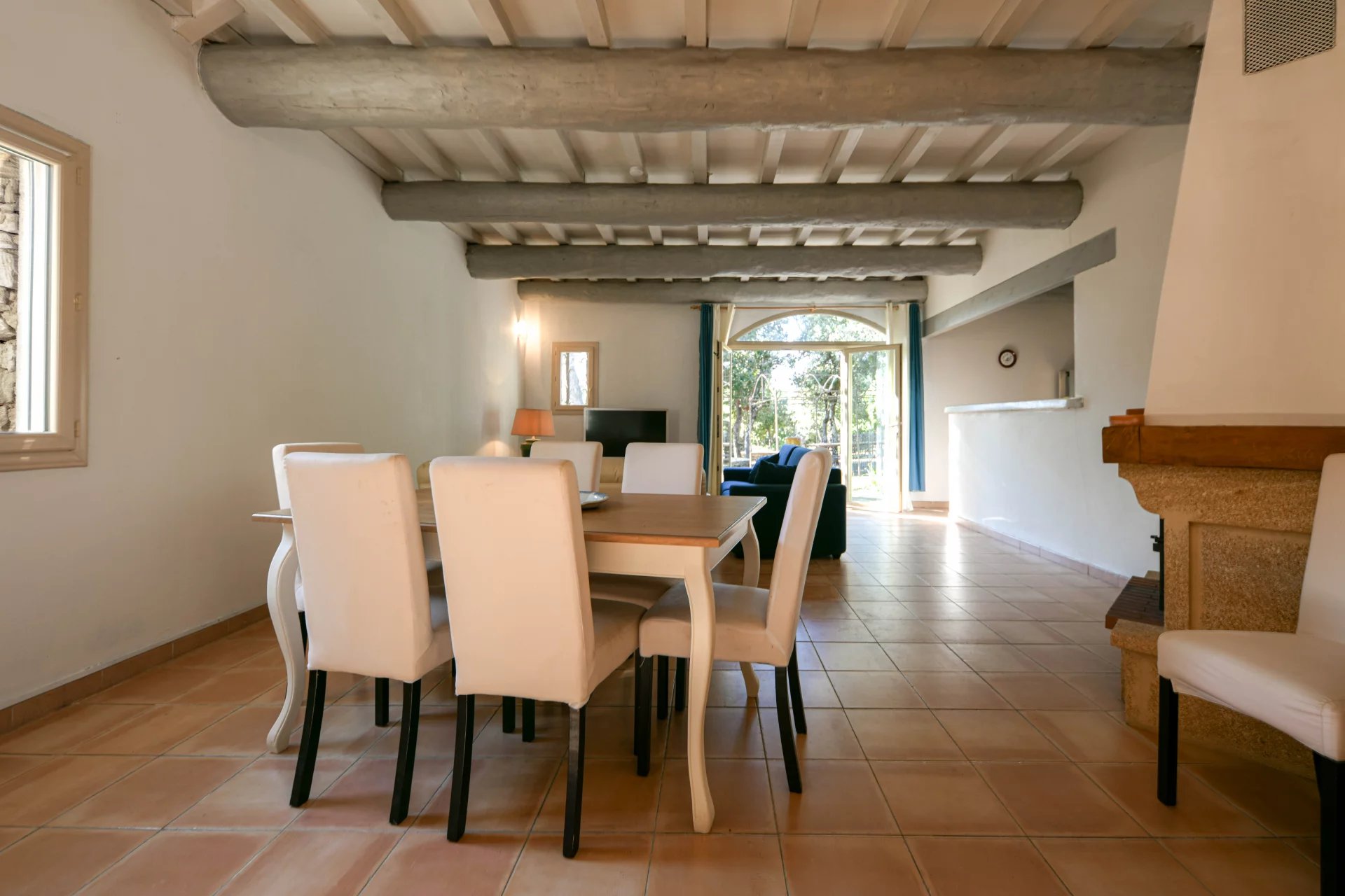 The second 130 m2 house comprises a kitchen opening onto a spacious living room with fireplace, three bedrooms and three bathrooms.