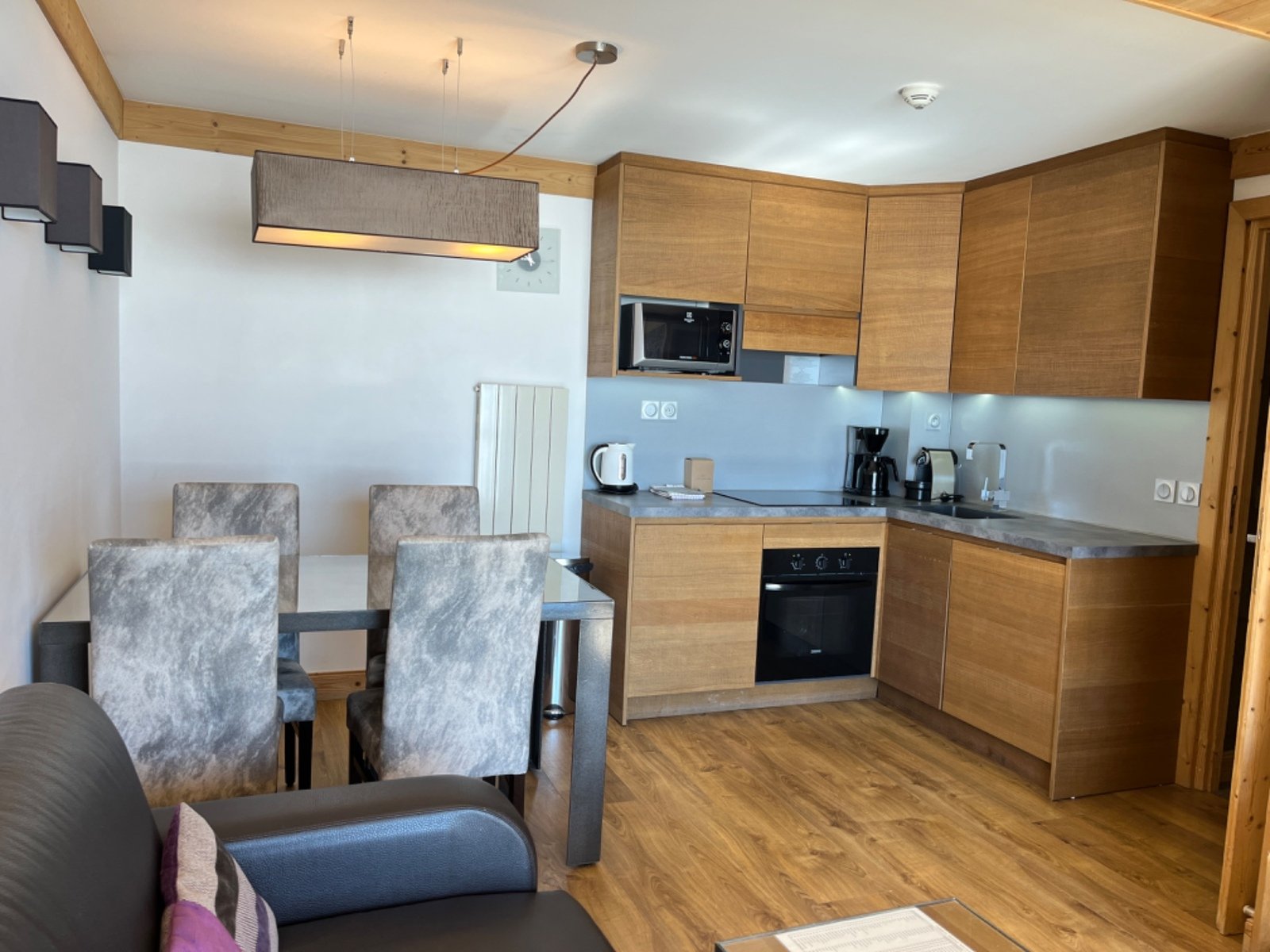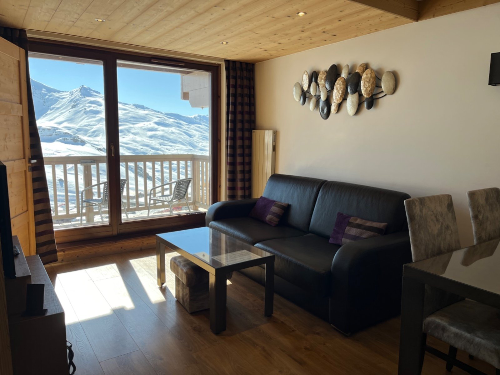 Ideally located at the foot of the slopes, the apartment is also sold with a ski locker, a cellar and an indoor parking space, a valuable advantage in Val Thorens.