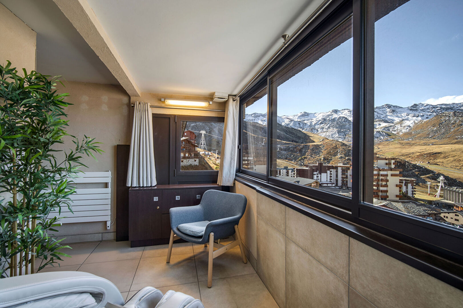 Rare, large apartment with a surface area of approximately 87m2 (69.24m2 according to the Carrez law), offering beautiful amenities, facing Southwest with a magnificent view. Composed of an entrance hall with plenty of storage, a cabin bedroom with 4 bunk beds, a large living room with open kitchen, a master bedroom with a large bathroom and dressing room, a cabin bedroom with a double bed, a shower room, a separate toilet, as well as a relaxation area with massage chair and hammam. It is sold furnished and equipped with 3 ski lockers. Possibility of acquiring in addition a large adjoining studio, with a surface area of 29.90m2 (24.70m2 according to the Carrez law).