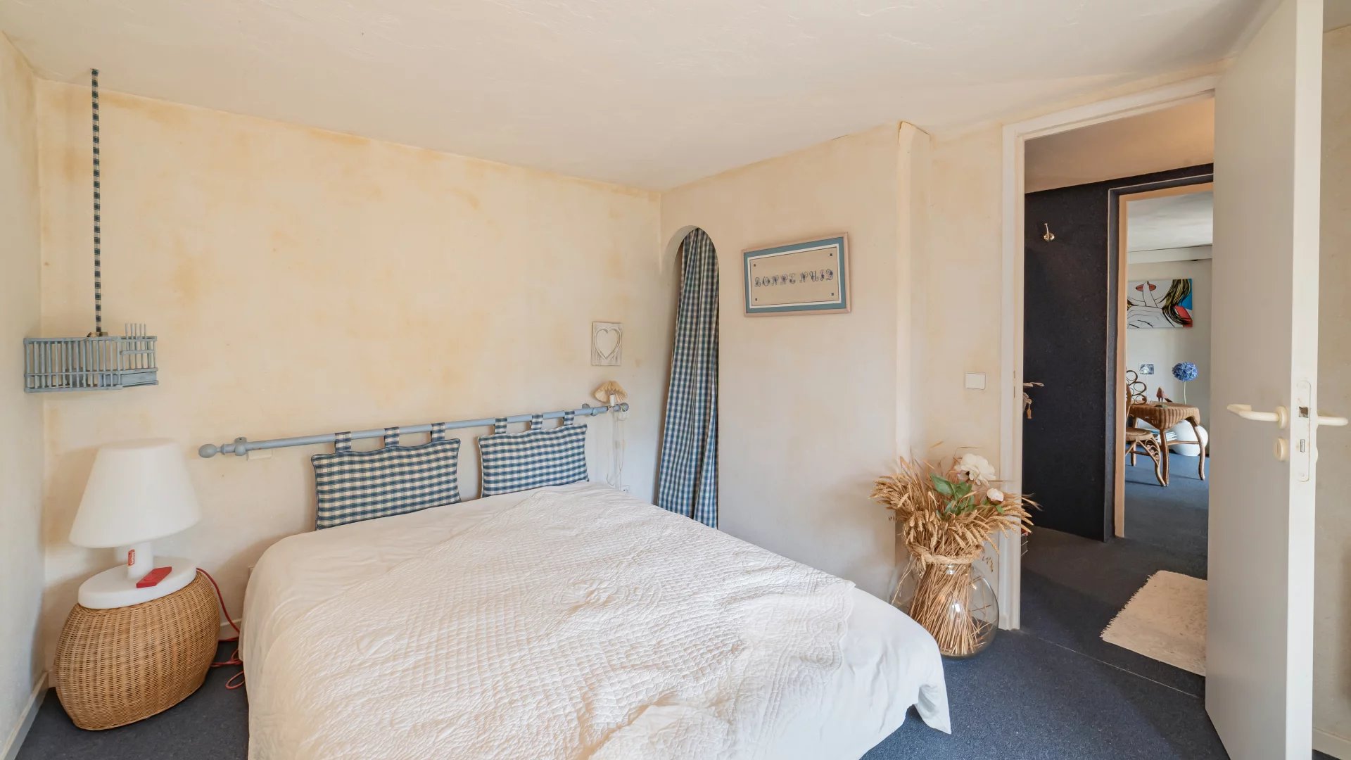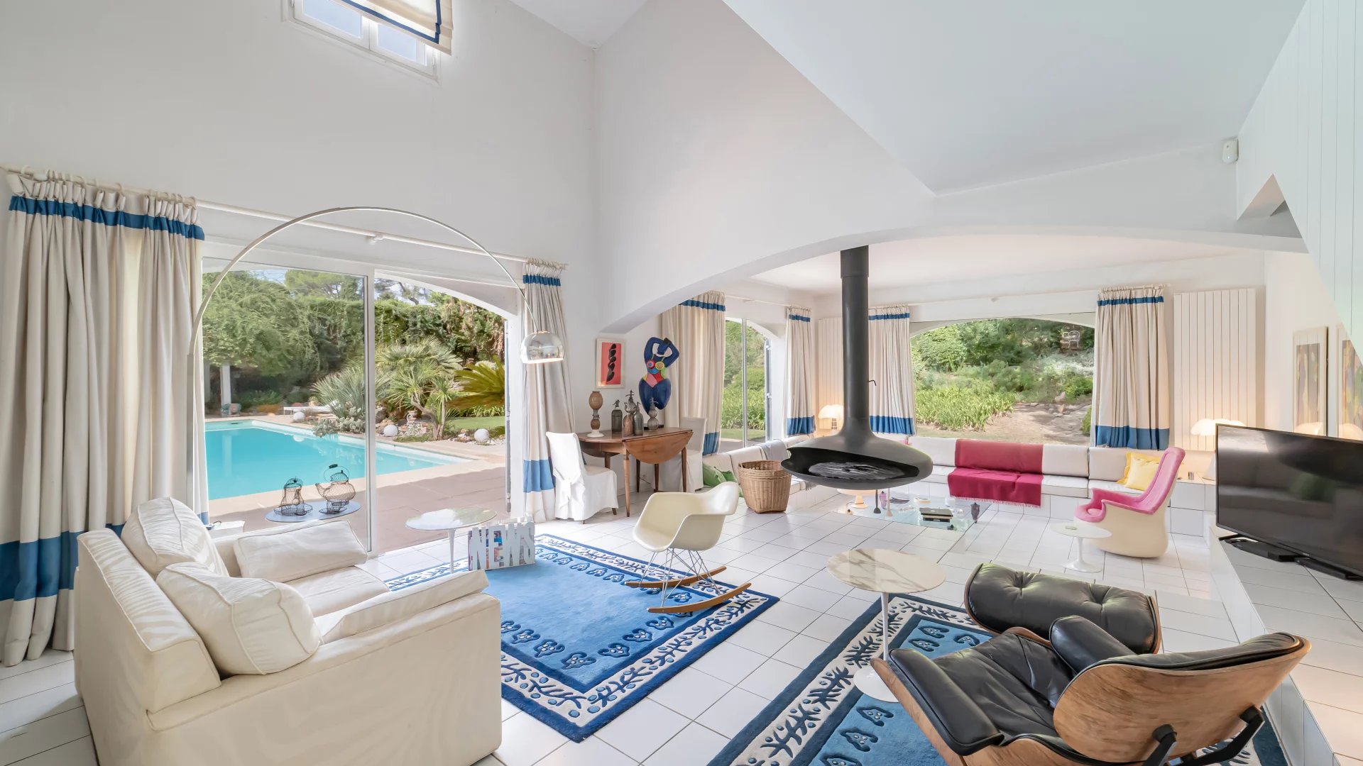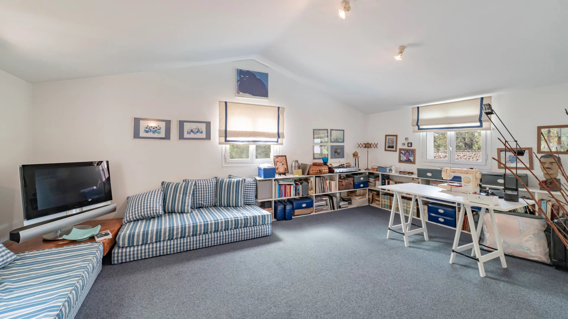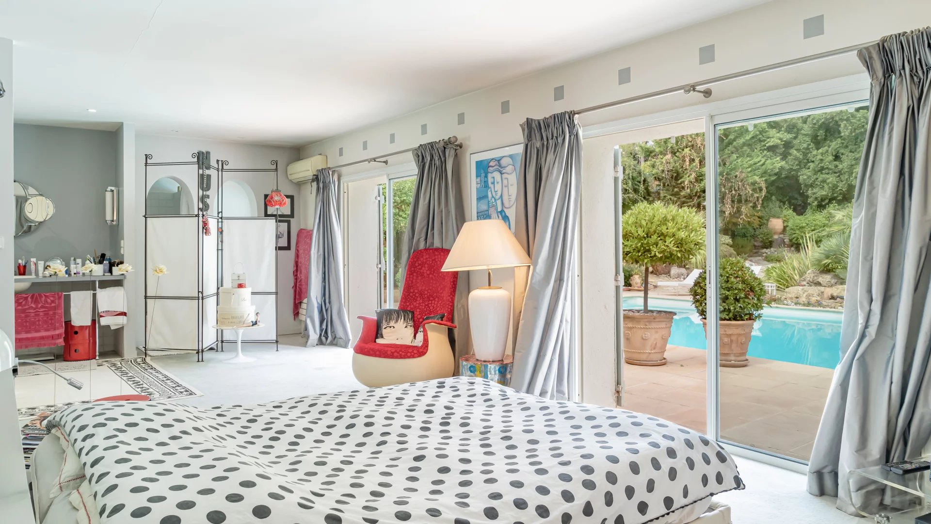 The main house offers a spacious and bright living room with fireplace and a large mezzanine, as well as a generous master suite. From the master suite, the kitchen, and the living area, one can enjoy lovely views over the pool and garden. Two additional guest bedrooms are independently accessible, making them ideal for occasional use.