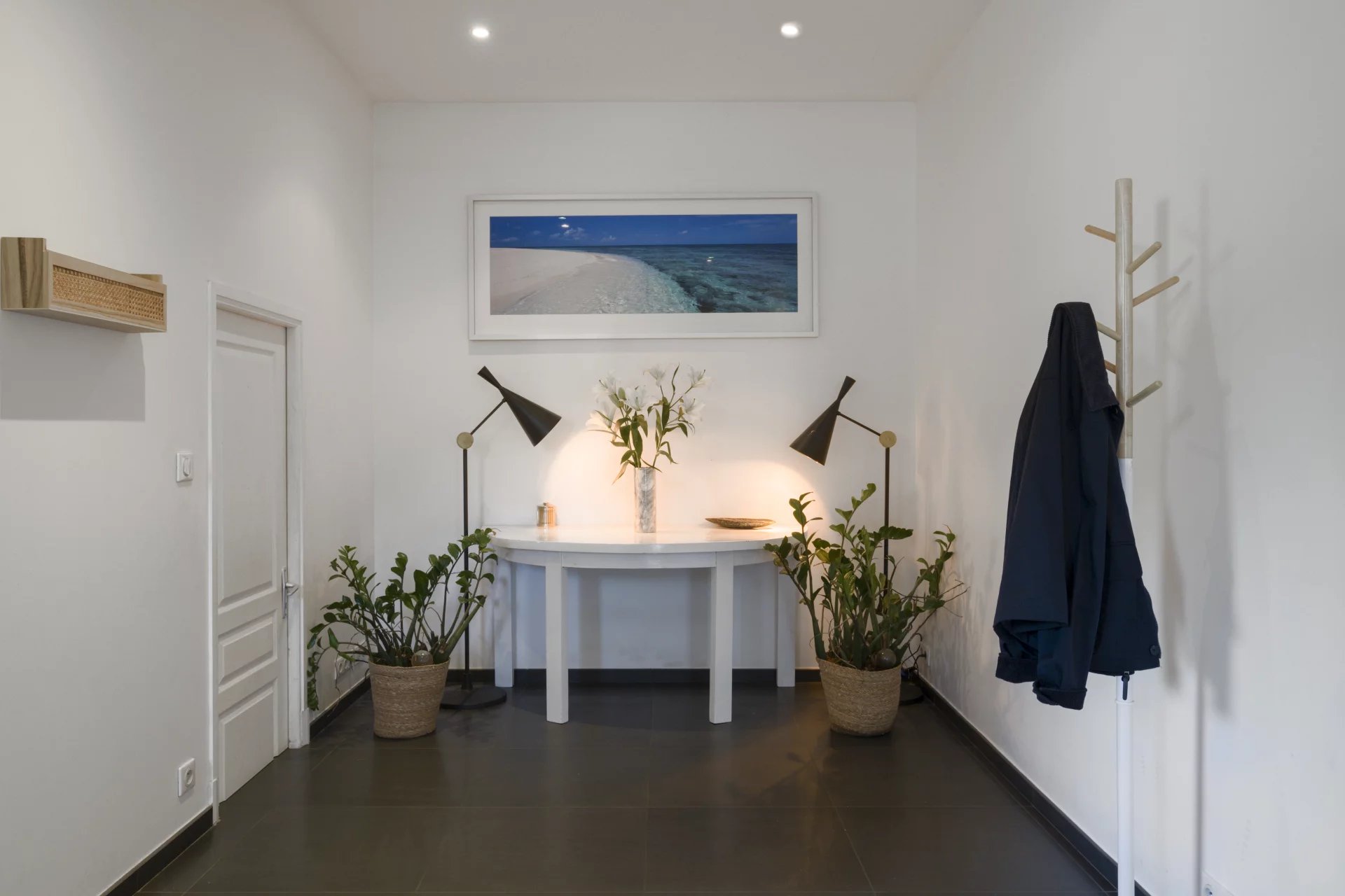 The garden level features a spacious open-plan living and dining area, which seamlessly flows into the newly renovated kitchen with garden views and access to a covered outdoor dining terrace. Also on this floor is the master bedroom with its own en-suite bathroom, along with a convenient laundry room.