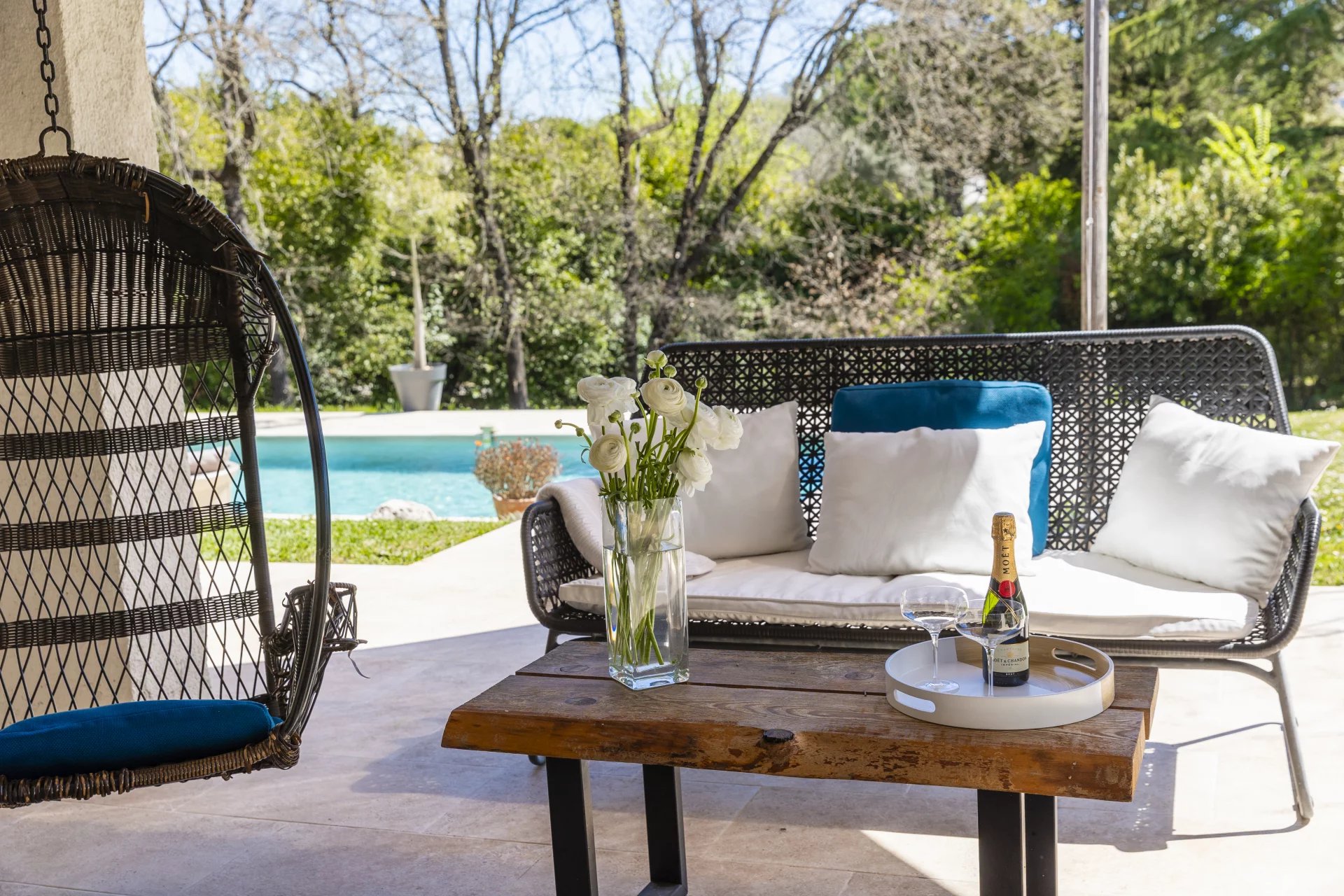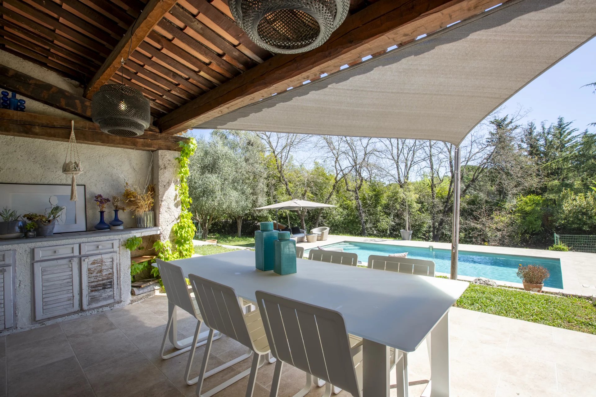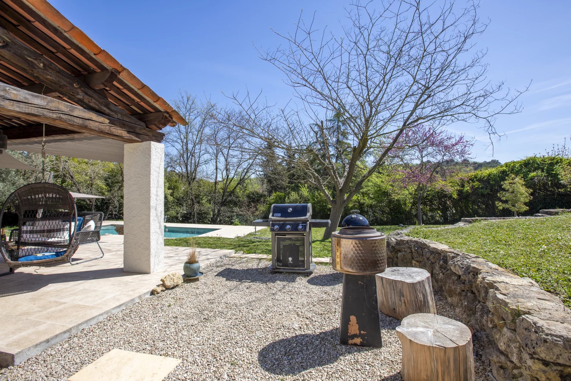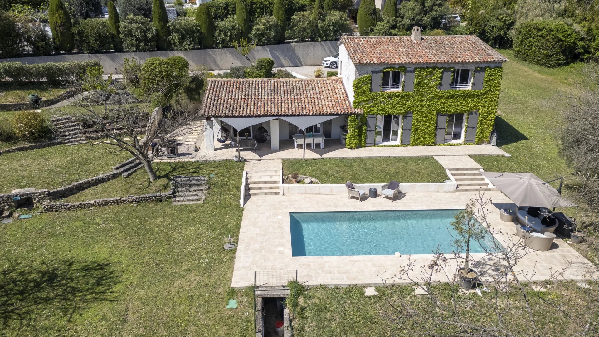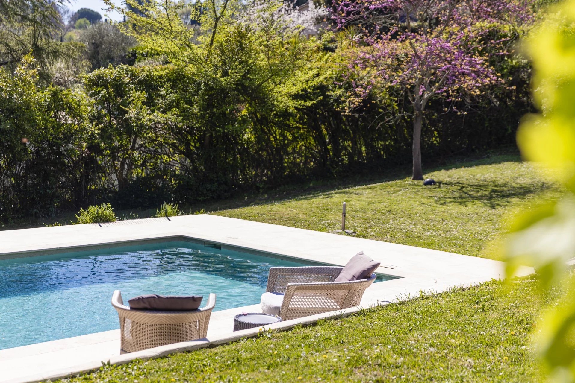 Lovely family home only a short walk from Valbonne village. The villa sits on a large, quiet garden in a gated domaine.