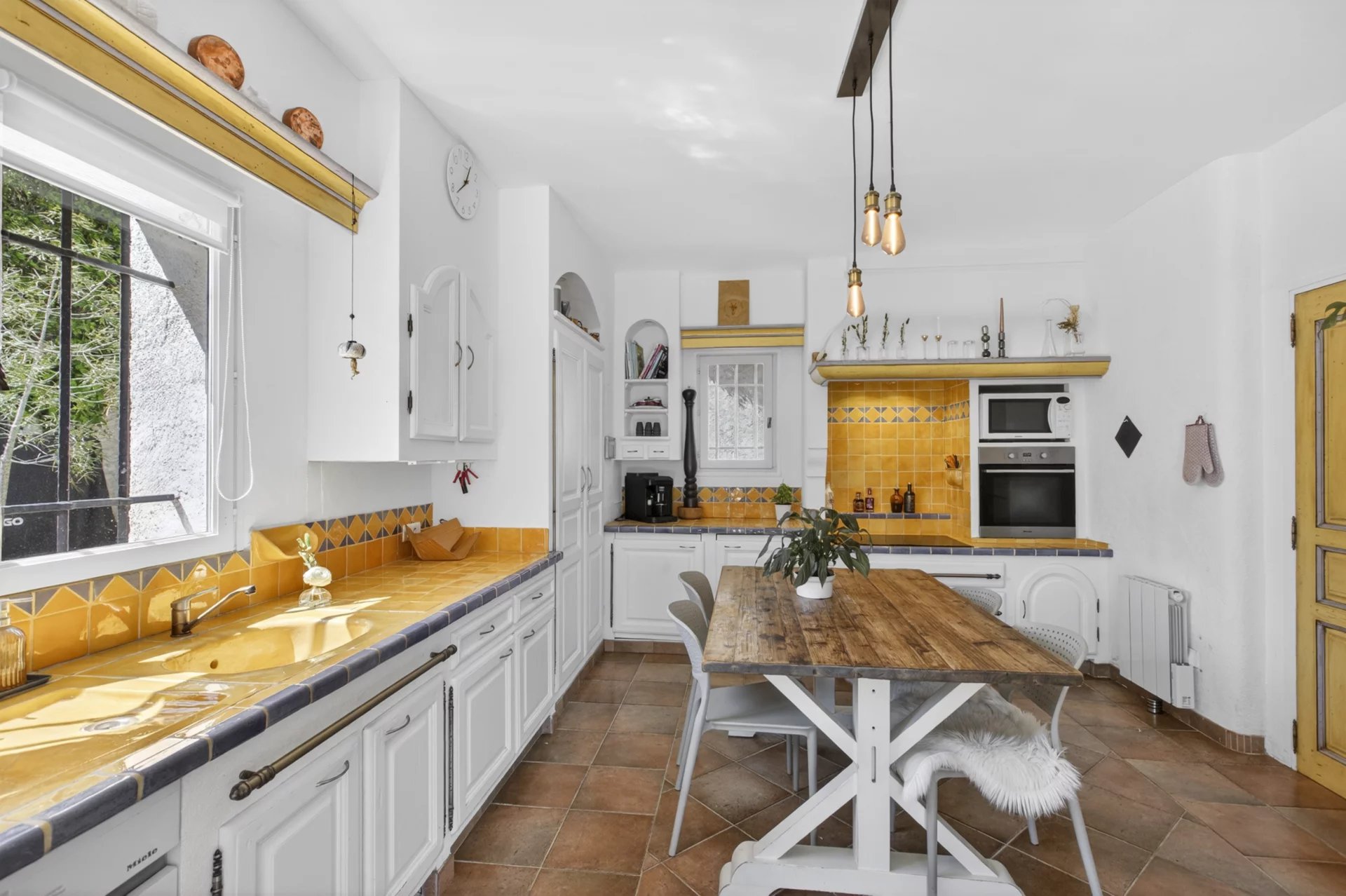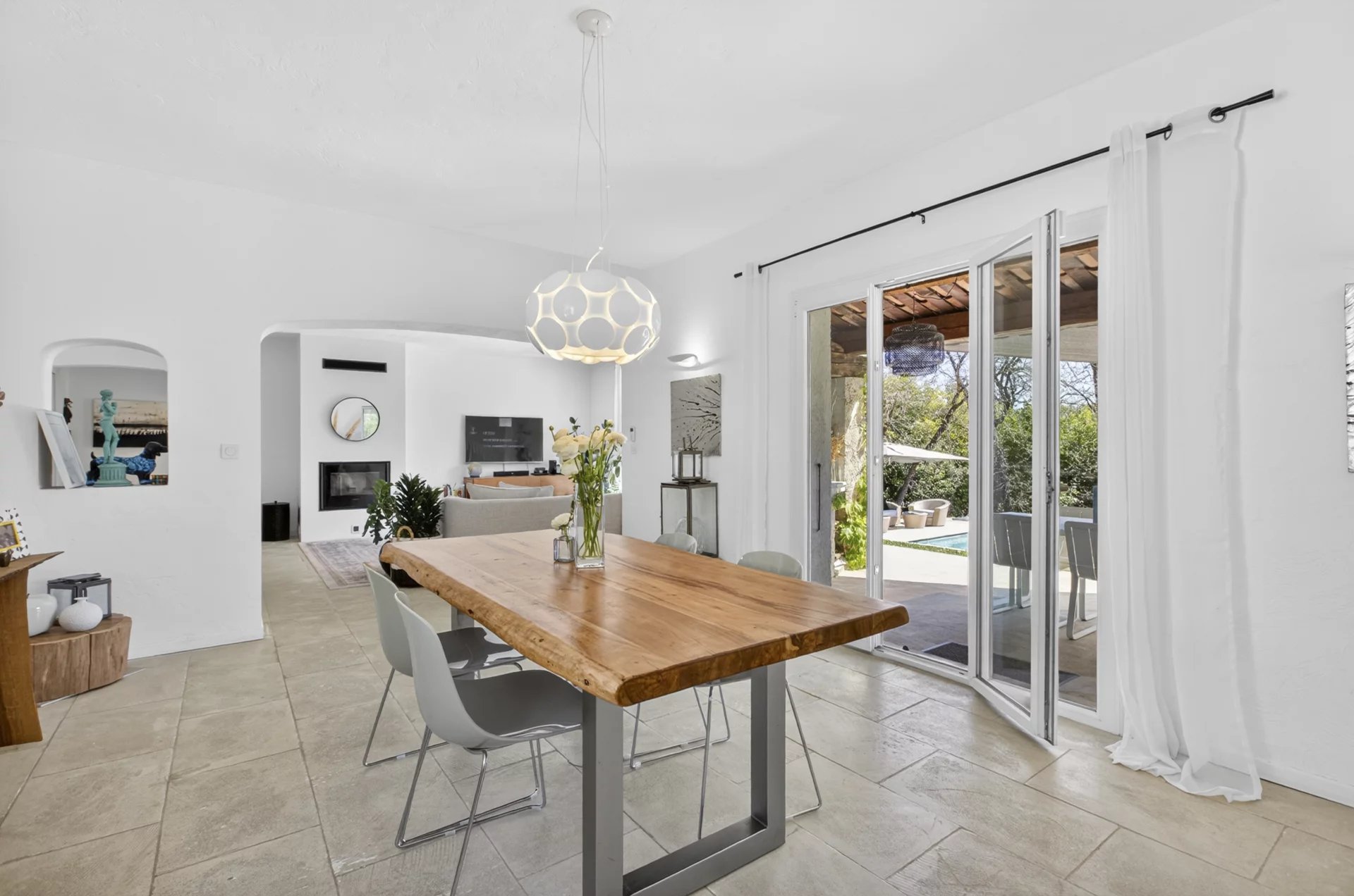 The living room, dining room and kitchen all open out to a covered terrace overlooking the newly renovated swimming pool. The property currently has 3 bedrooms but can very easily be converted into having 4 bedrooms including a large master suite or even 5 bedrooms.