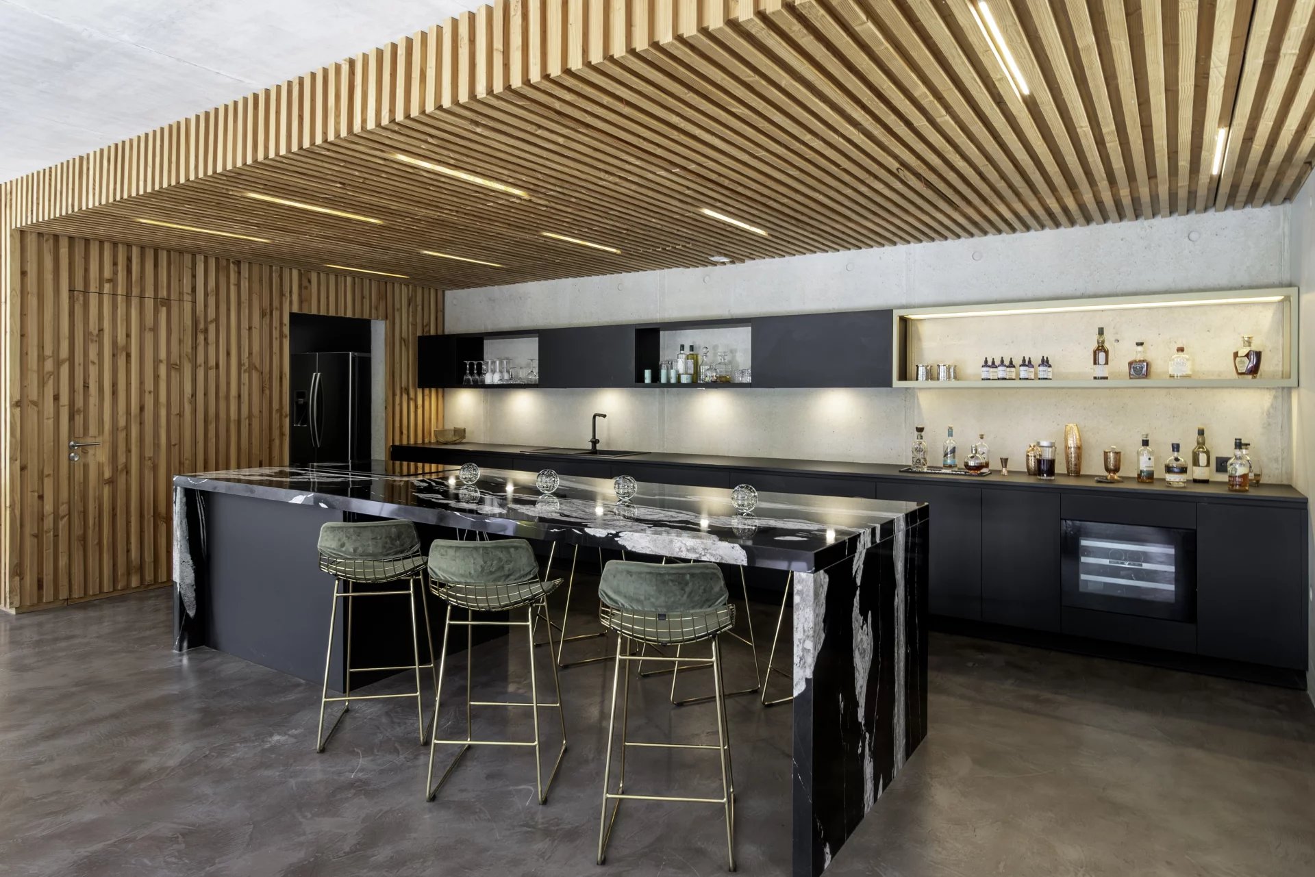 The remarkable interiors, particularly the vast living area, open generously onto the outdoors, dissolving the boundary between inside and out. This ensures exceptional natural light from morning to evening and offers breathtaking views of the garden and the magnificent swimming pool.