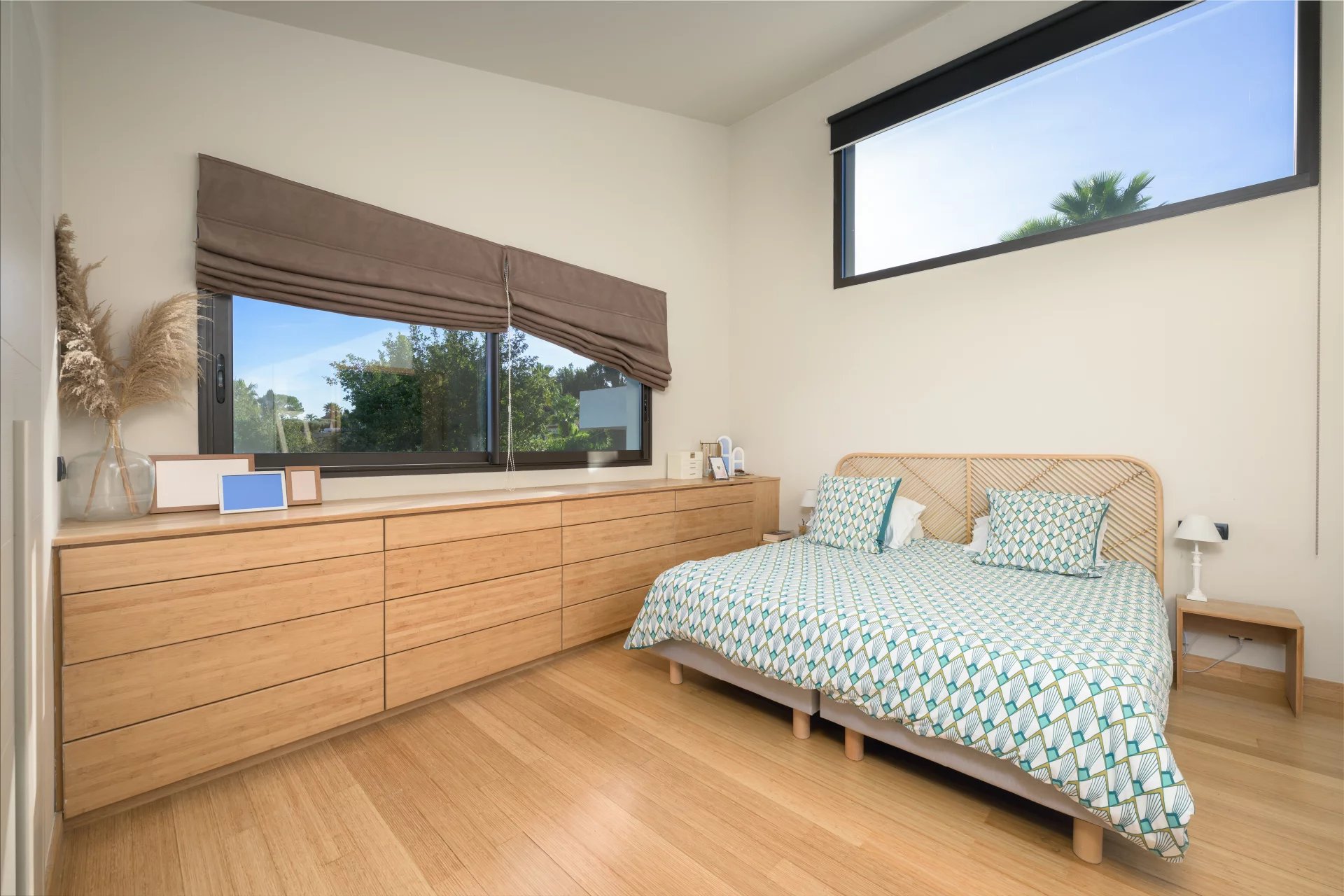 Excellent overall condition, with top-quality materials and fittings. 4 bedrooms, three of which are on the ground floor, master bedroom and large mezzanine on the first floor with beautiful office space and TV lounge area. Garage and parking spaces.