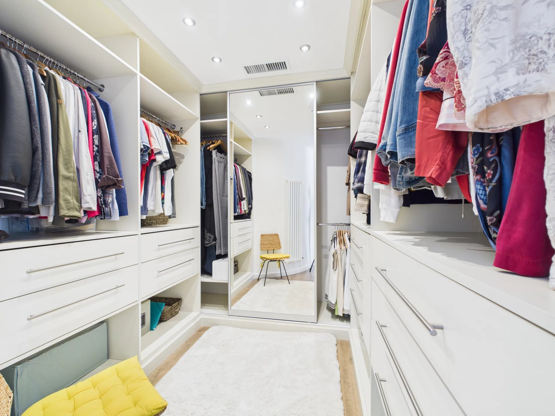 Upstairs, three further bedrooms await, including a master suite with a private dressing room and an elegant bathroom featuring a shower, bathtub, and double vanity. The remaining two bedrooms share a well-appointed bathroom with both a bathtub and shower.