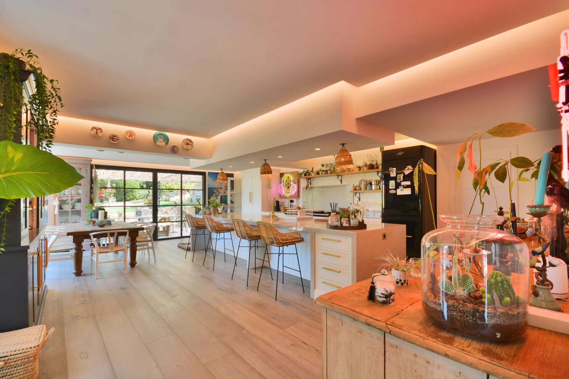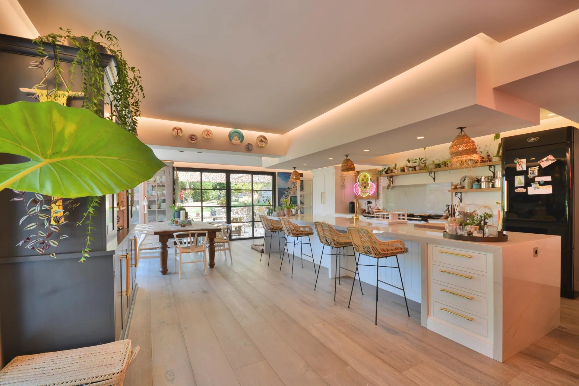 Beautifully presented modern decor and design, starting with a lovely entrance hall, vast living room, dining room, luxuriously equipped open-plan kitchen, 4 bedrooms including an en-suite bedroom on the ground floor and a master-room with a walk-in closet and bathroom on the upstairs and 3 bathrooms.