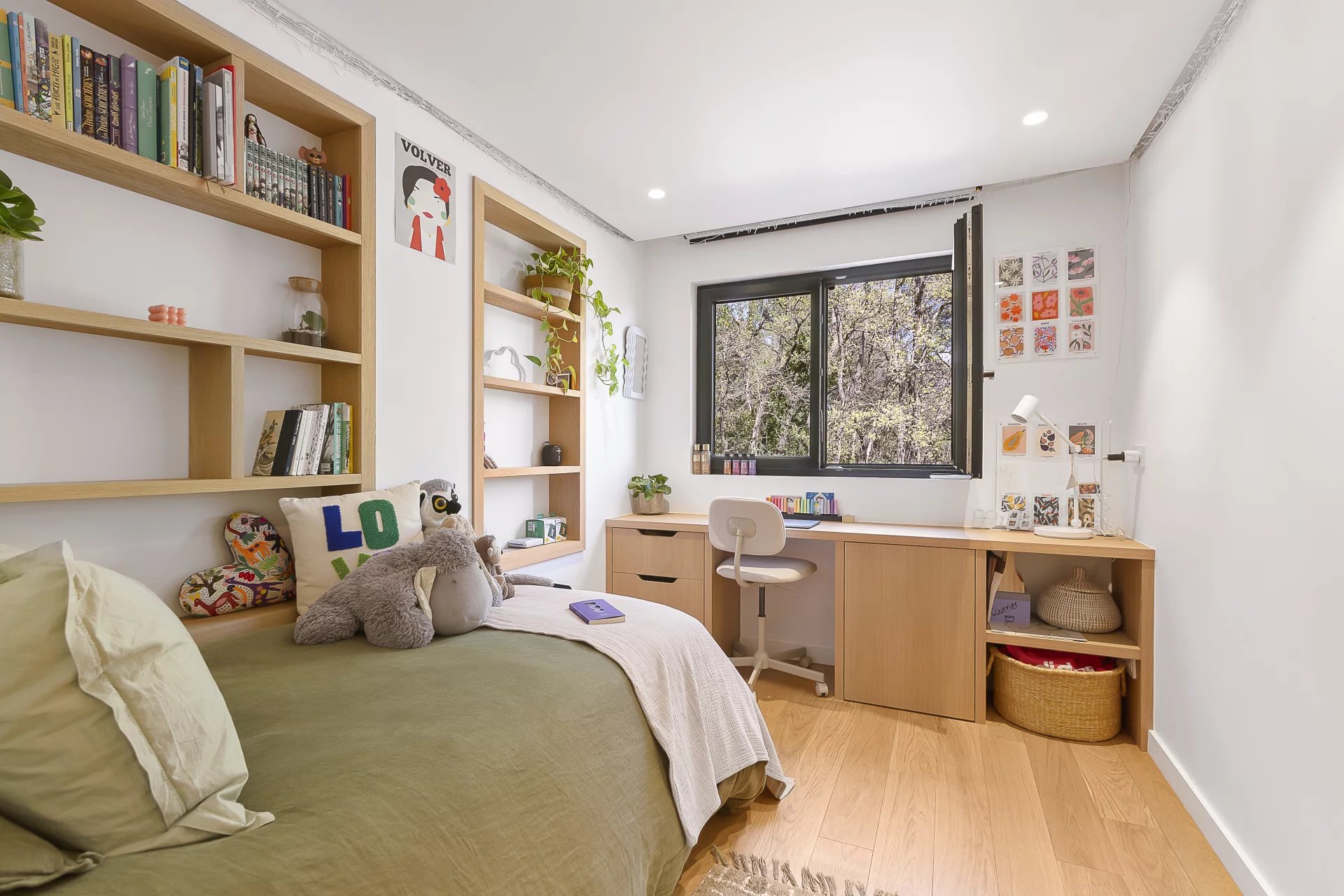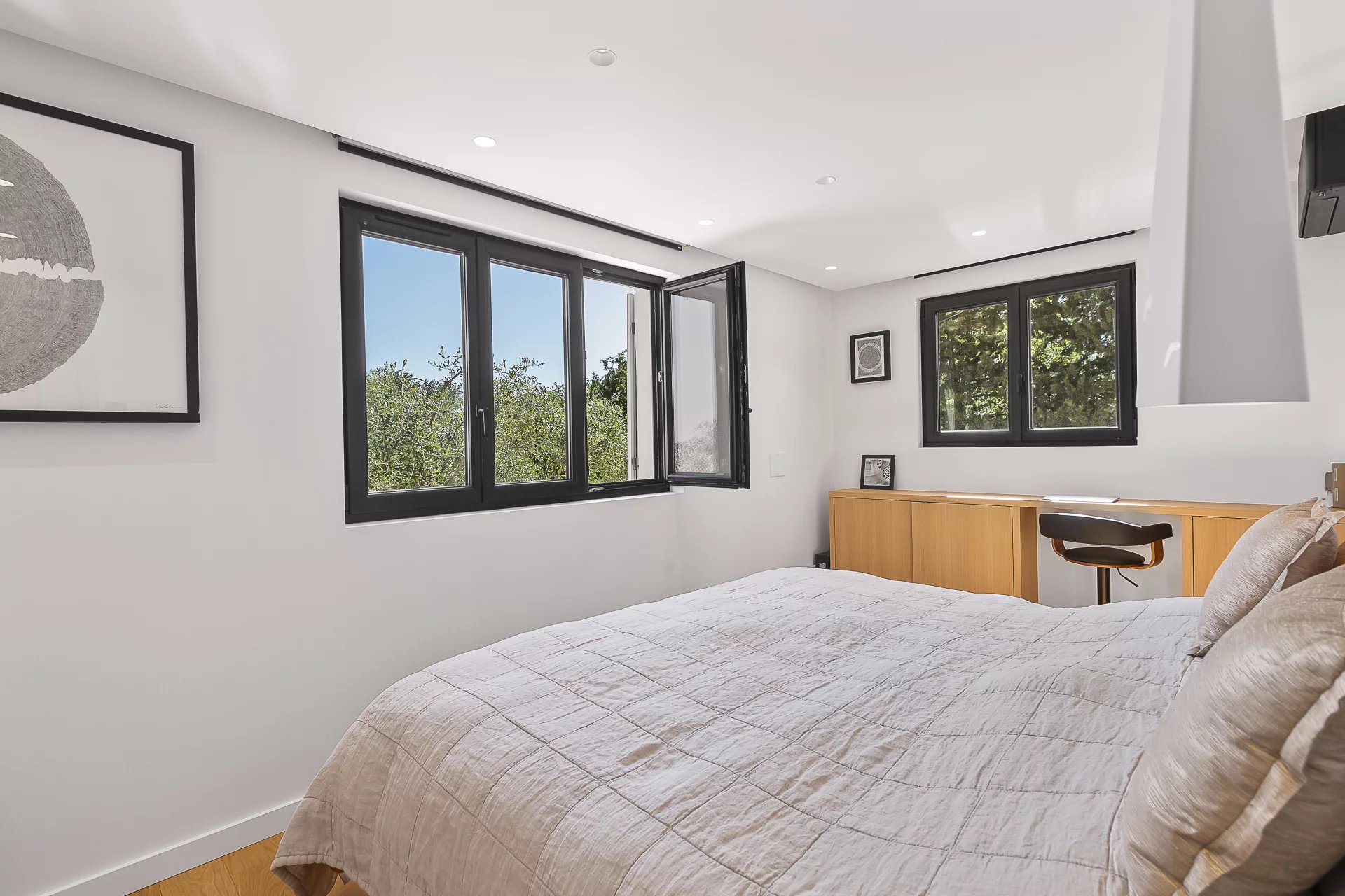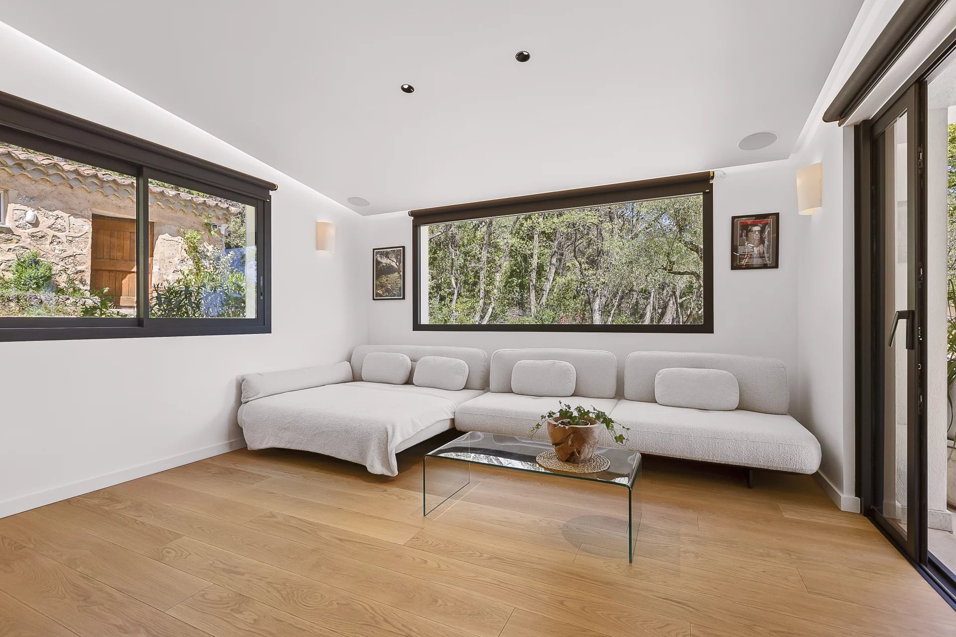 190 m2 south facing renovated villa in a dominated position of its 4800 m2 garden filled with fruit trees, olive trees and historical oaks with a view over the endless forest. Air conditioning and heated floors in all rooms.