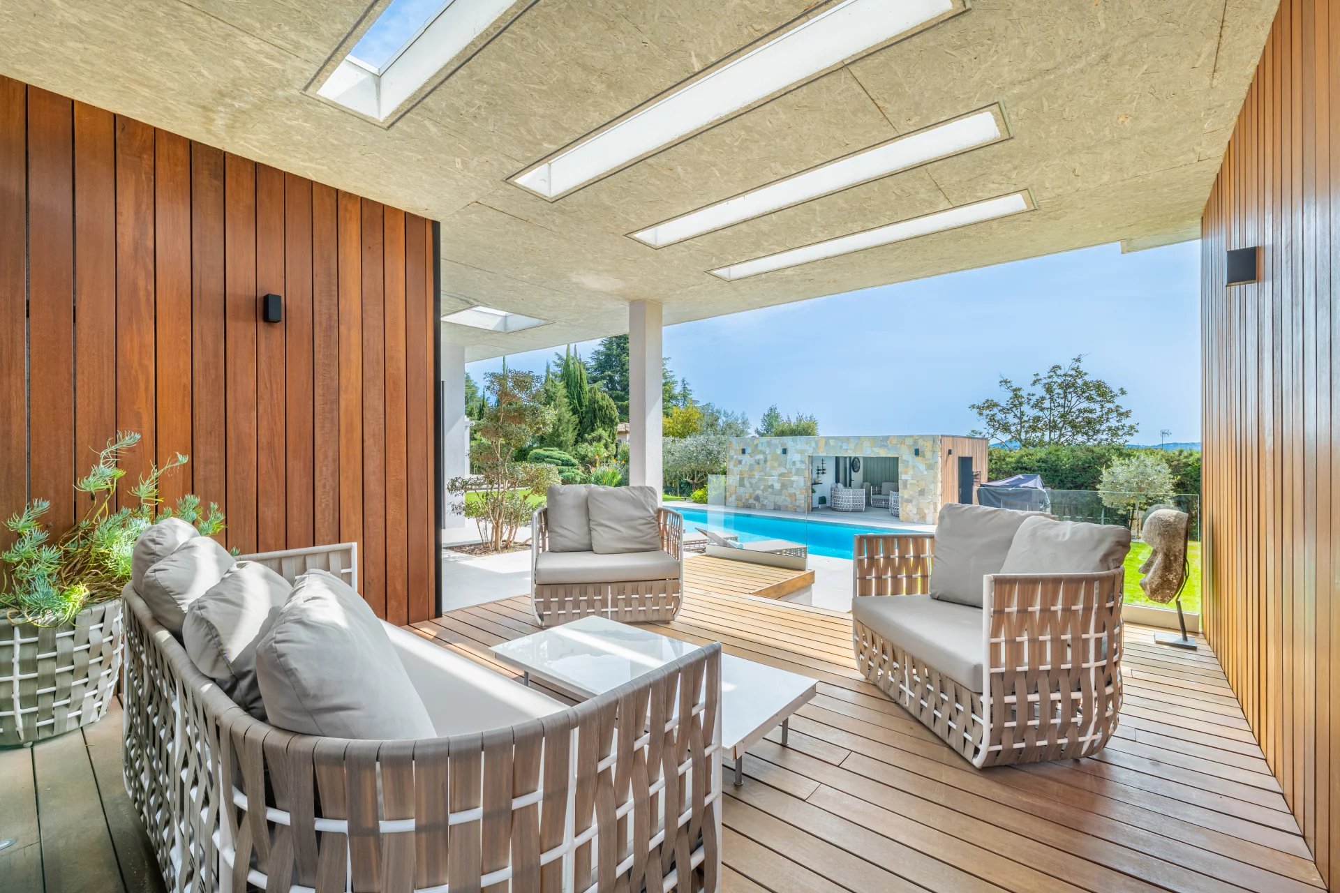 Situated in a peaceful and secure residential enclave, just moments from the medieval villages of Biot and Valbonne, this contemporary 4-bedroom villa offers the perfect fusion of privacy, comfort, and refined living in the heart of the French Riviera.