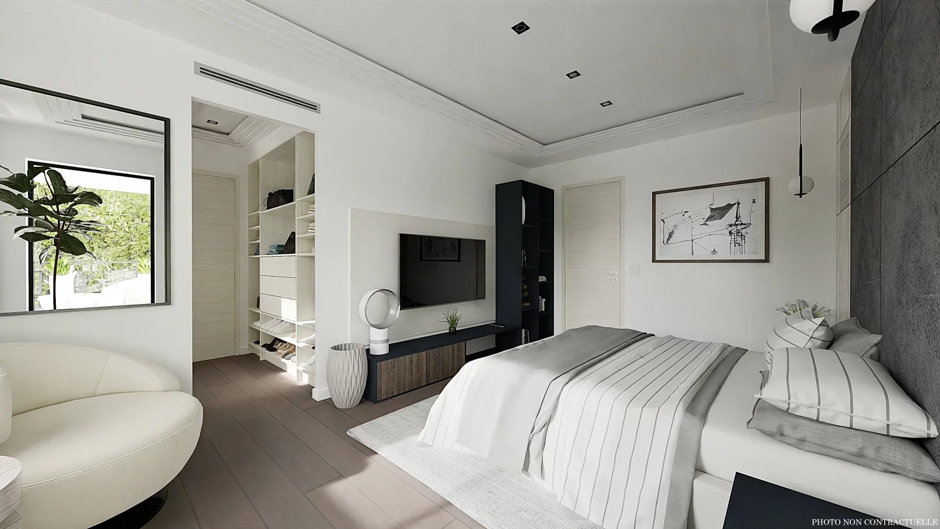 On the 1st floor: 4 bedrooms with ensuite bathrooms and toilets ; 4 dressing rooms. Equipped bathrooms. Dressing rooms. Roller shutters. 2 safes.