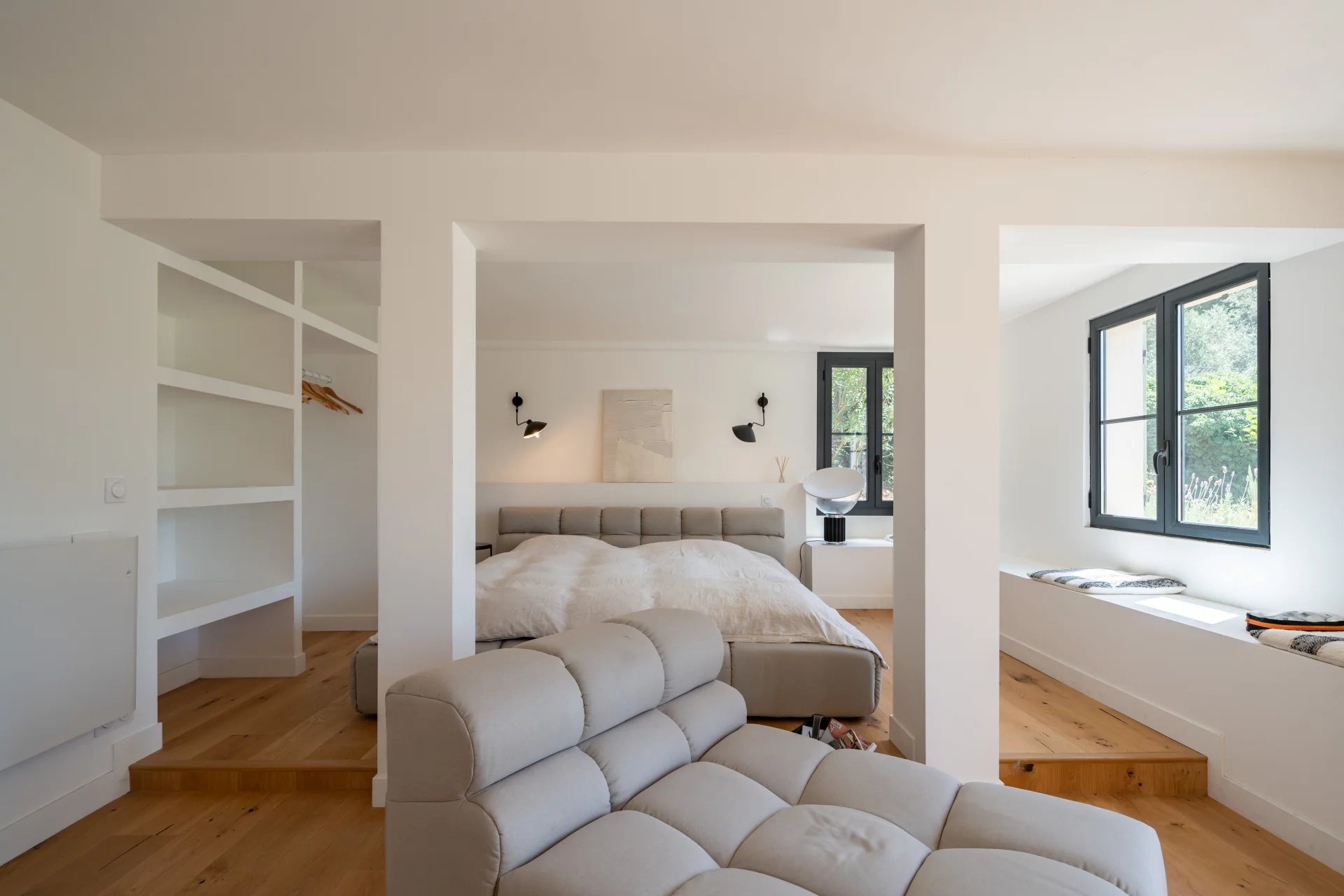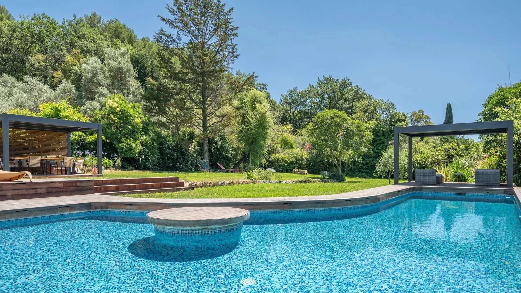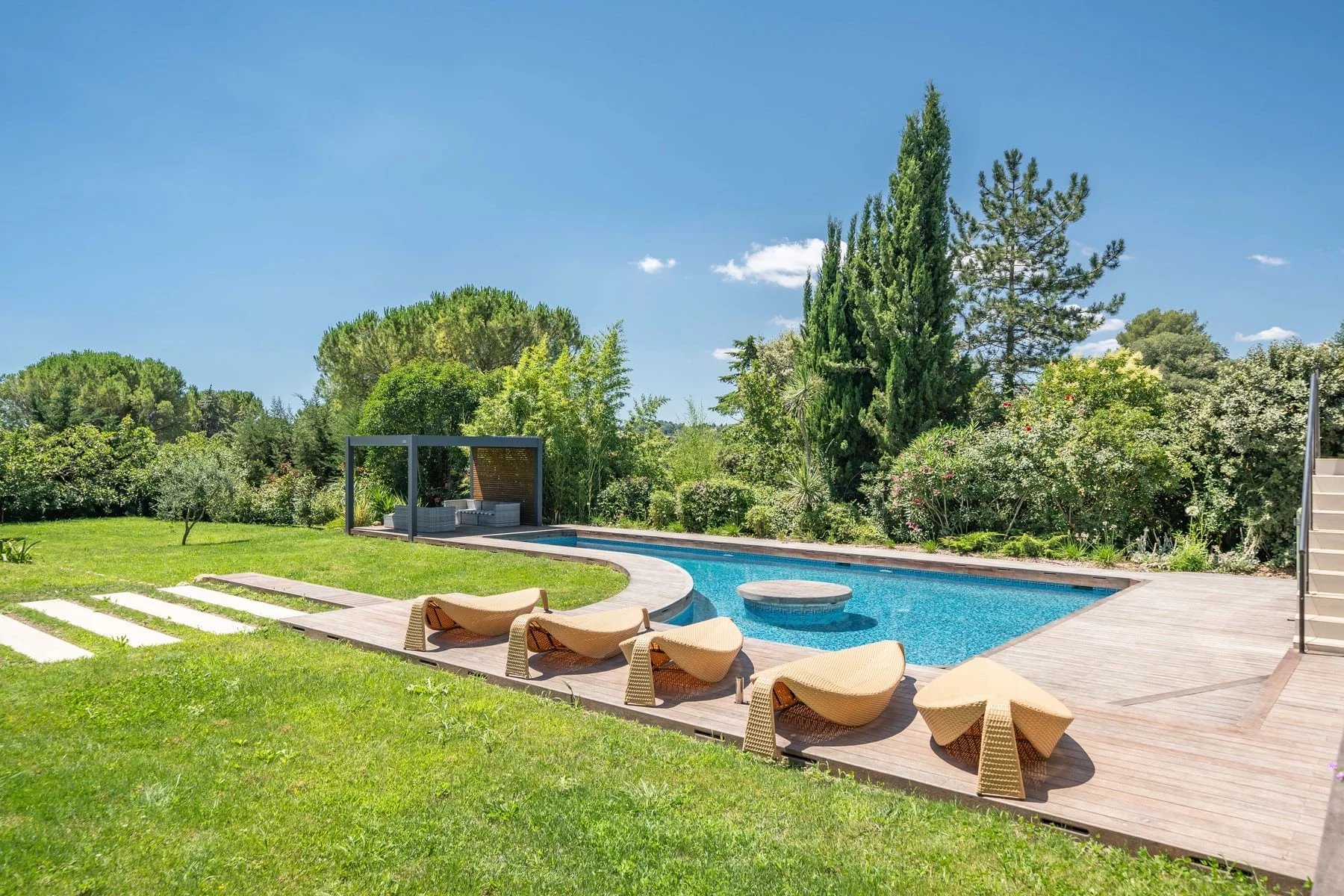 Nestled in a serene setting, the villa enjoys absolute peace and quiet and optimal sunshine. The superb flat garden is a real paradise for children, who can play in complete safety, while adults can relax by the pool or under the pergola, in a soothing Zen atmosphere.