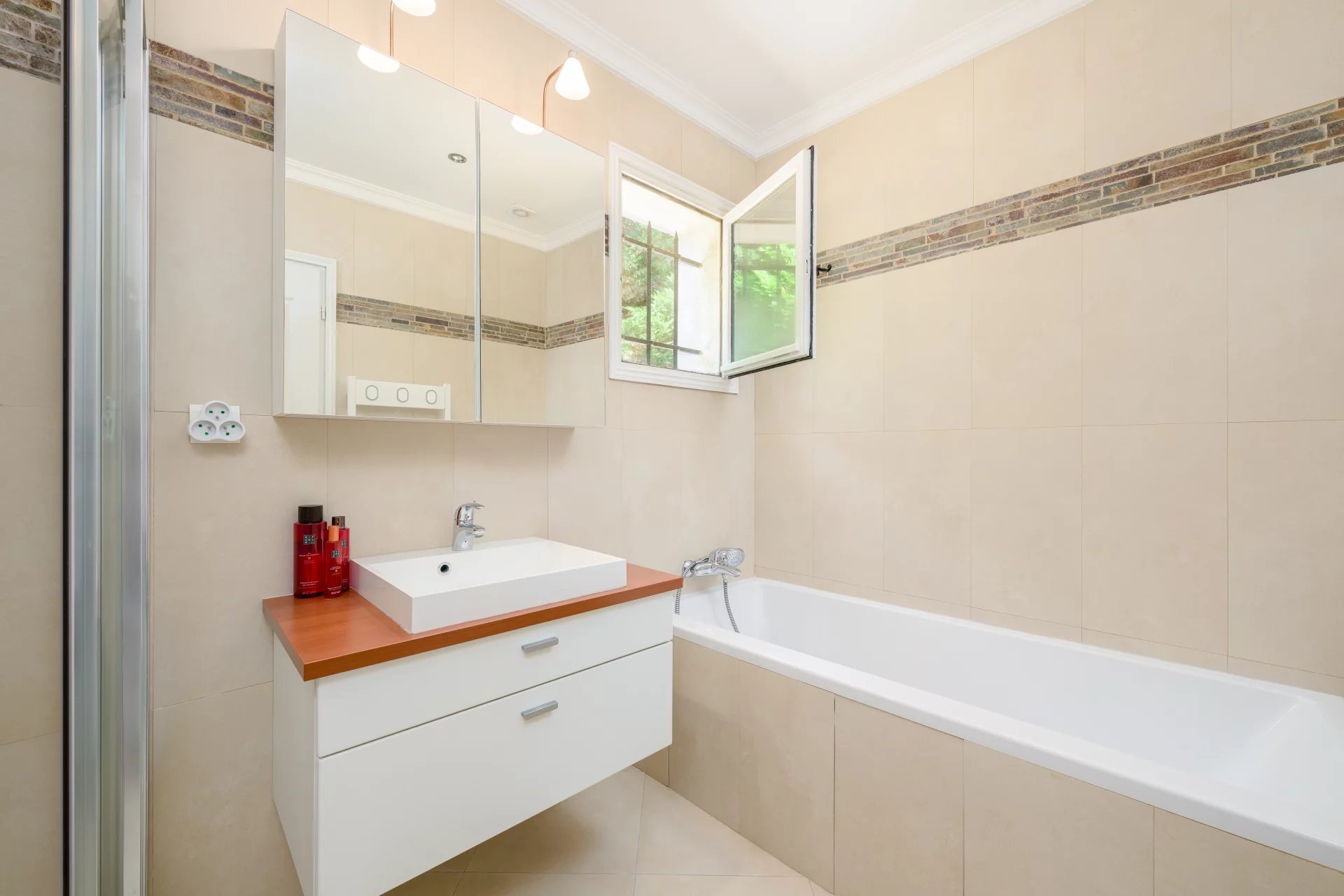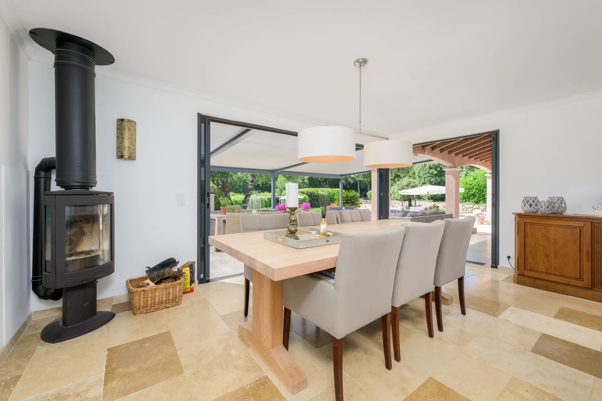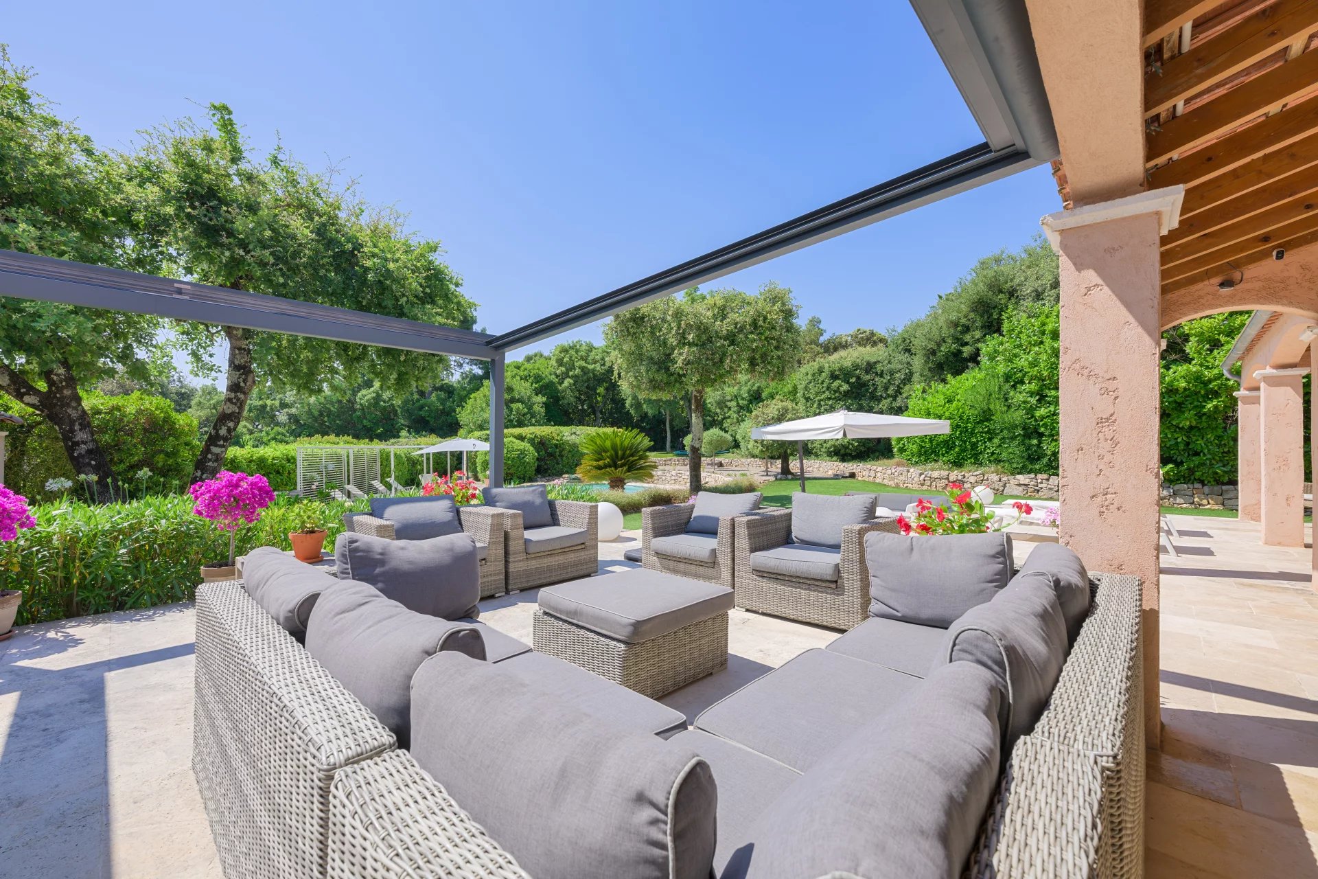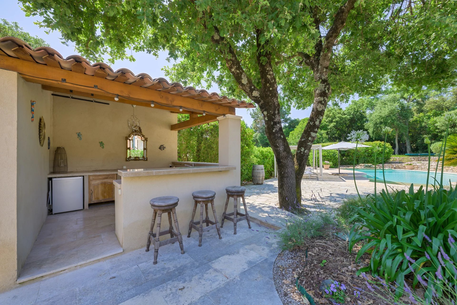 Several sun-drenched terraces are perfect for enjoying warm days. A pool house complements the large heated swimming pool, perfectly integrated into the landscape.