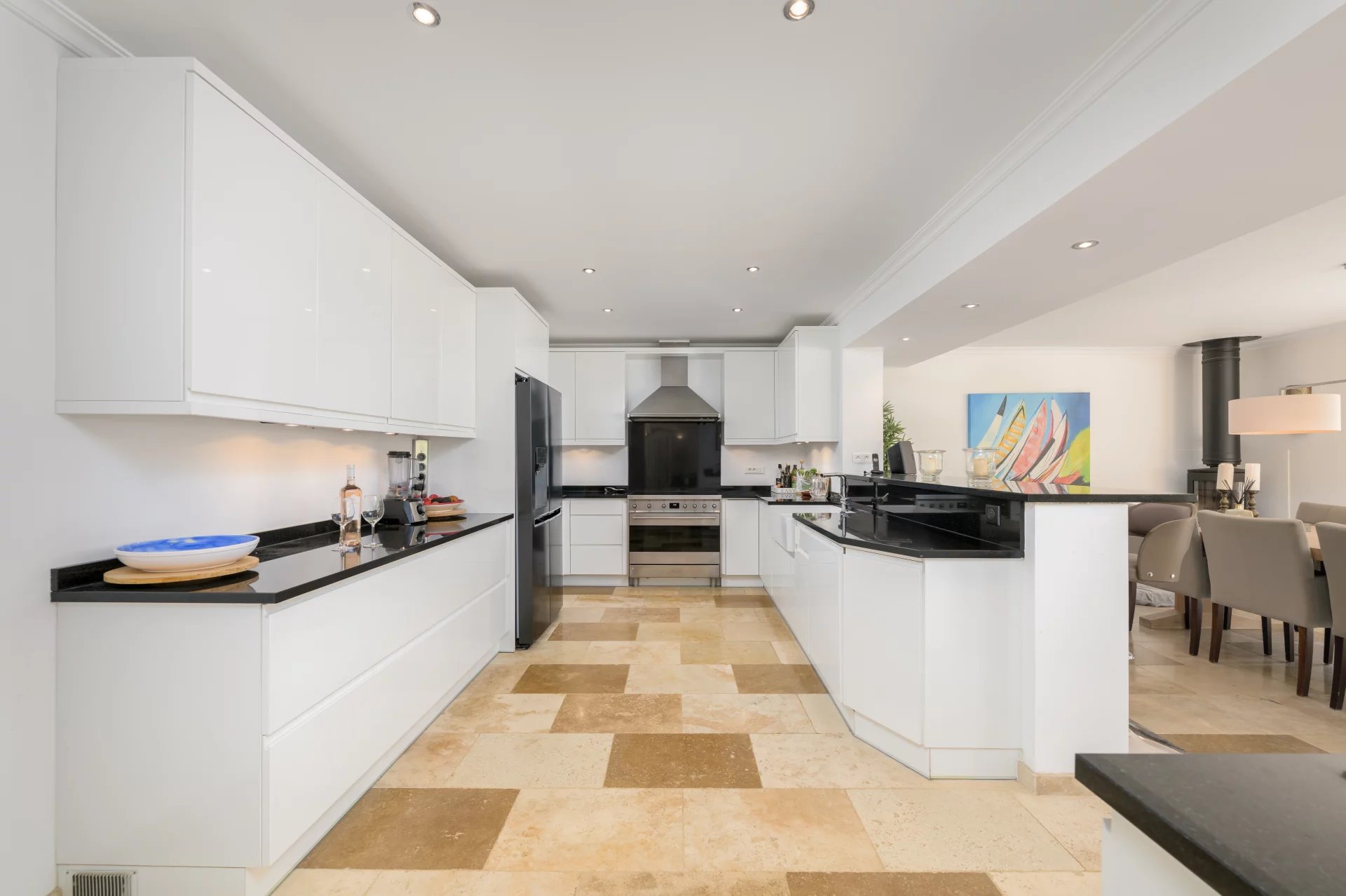 The generous living spaces are thoughtfully designed, featuring a fully equipped open-plan kitchen that flows seamlessly into the dining area and garden.