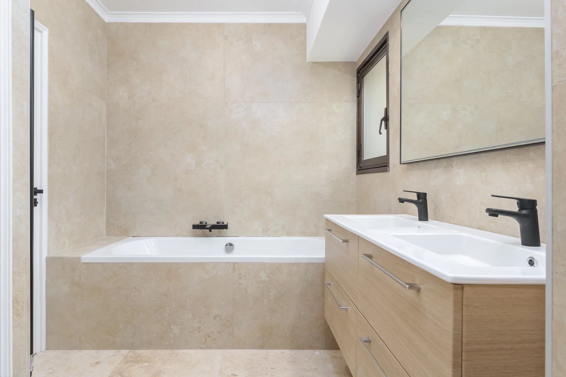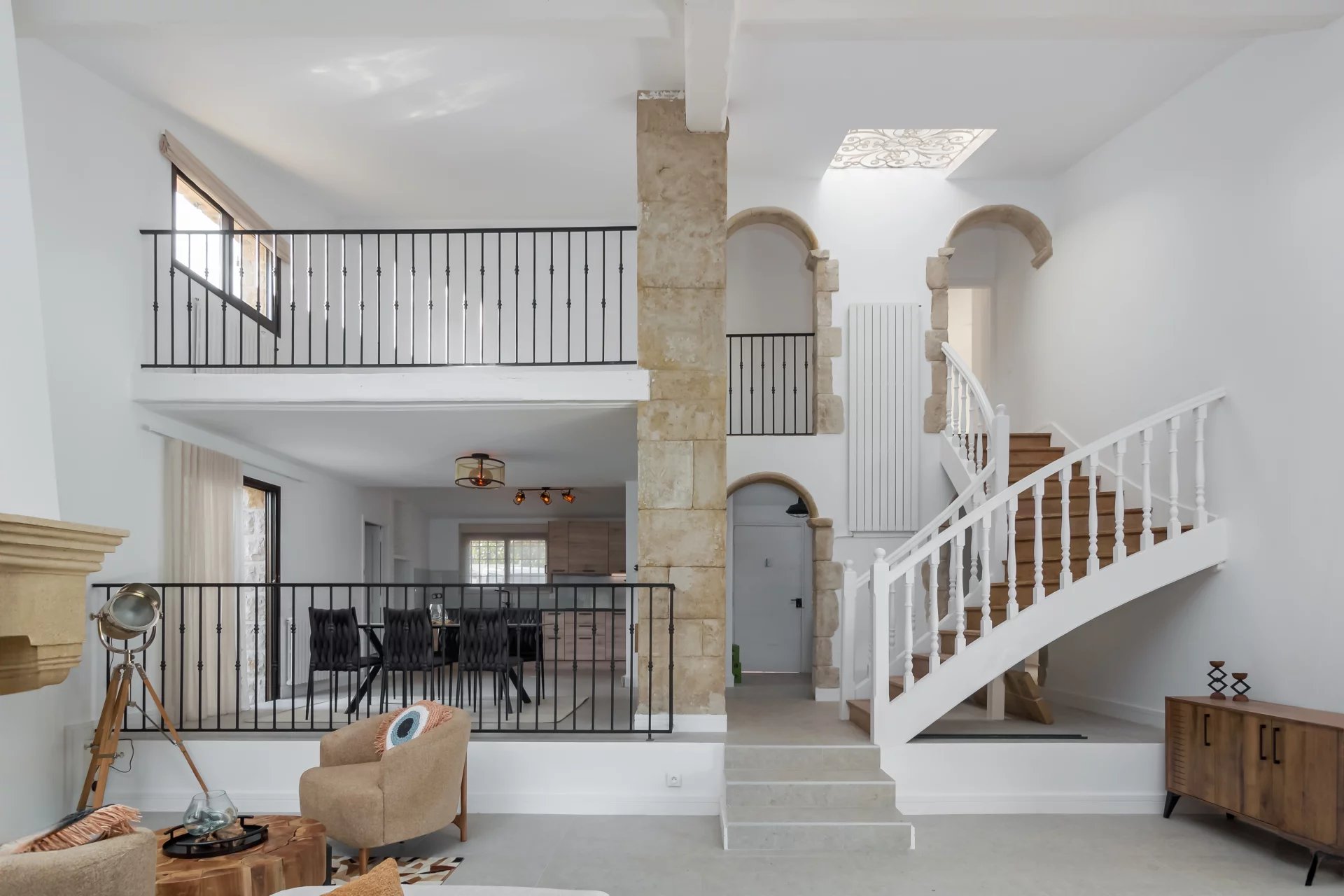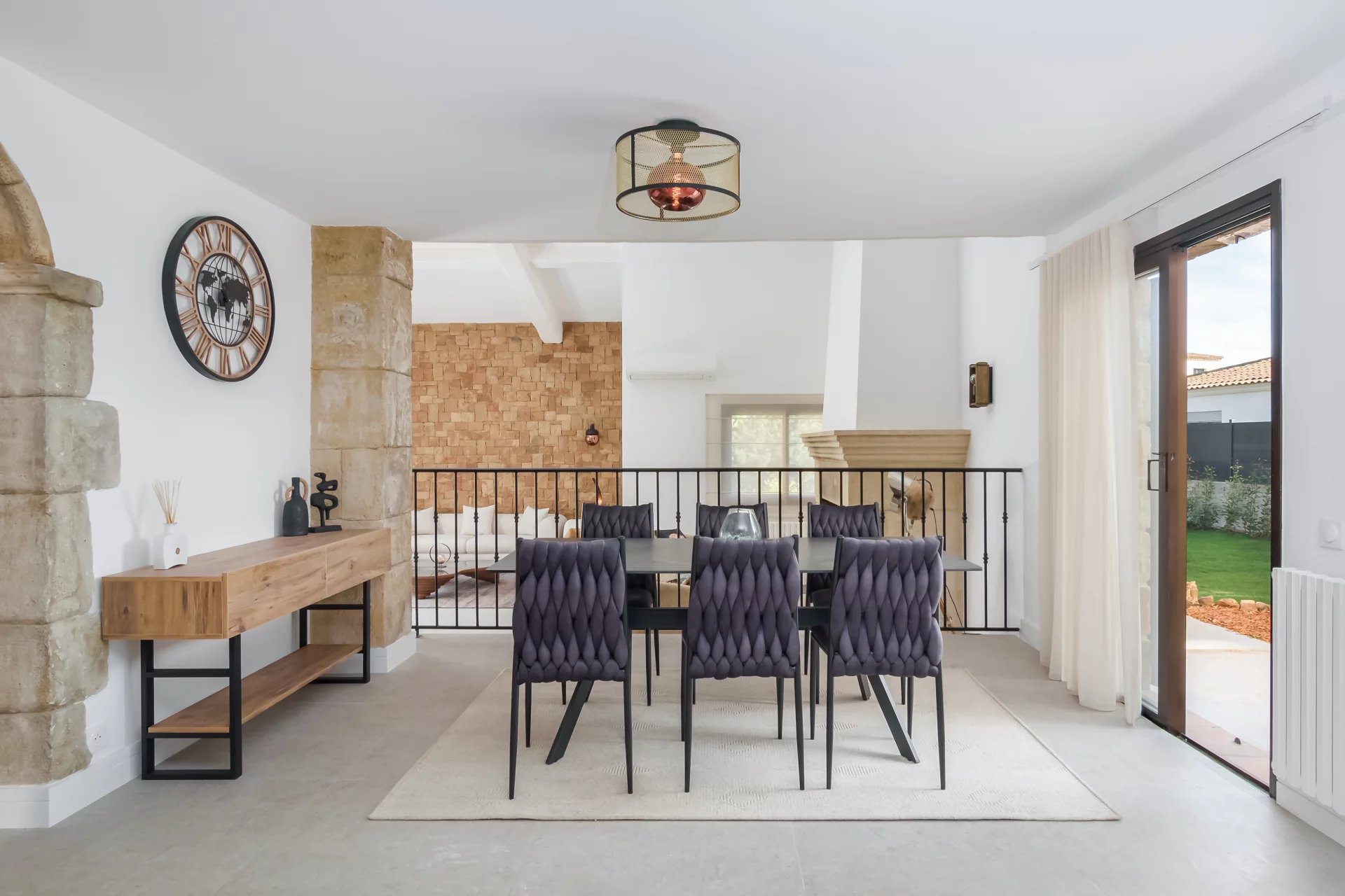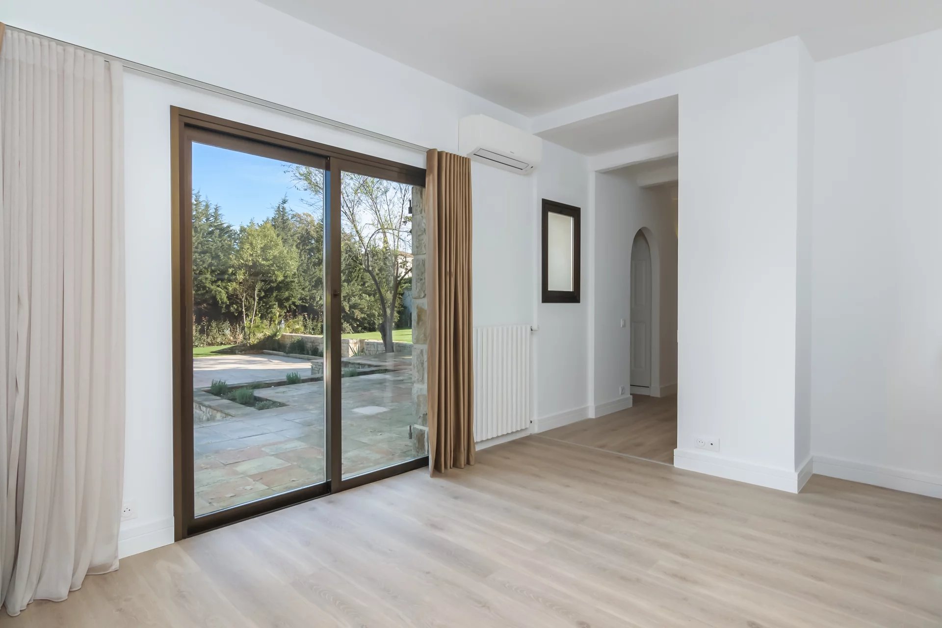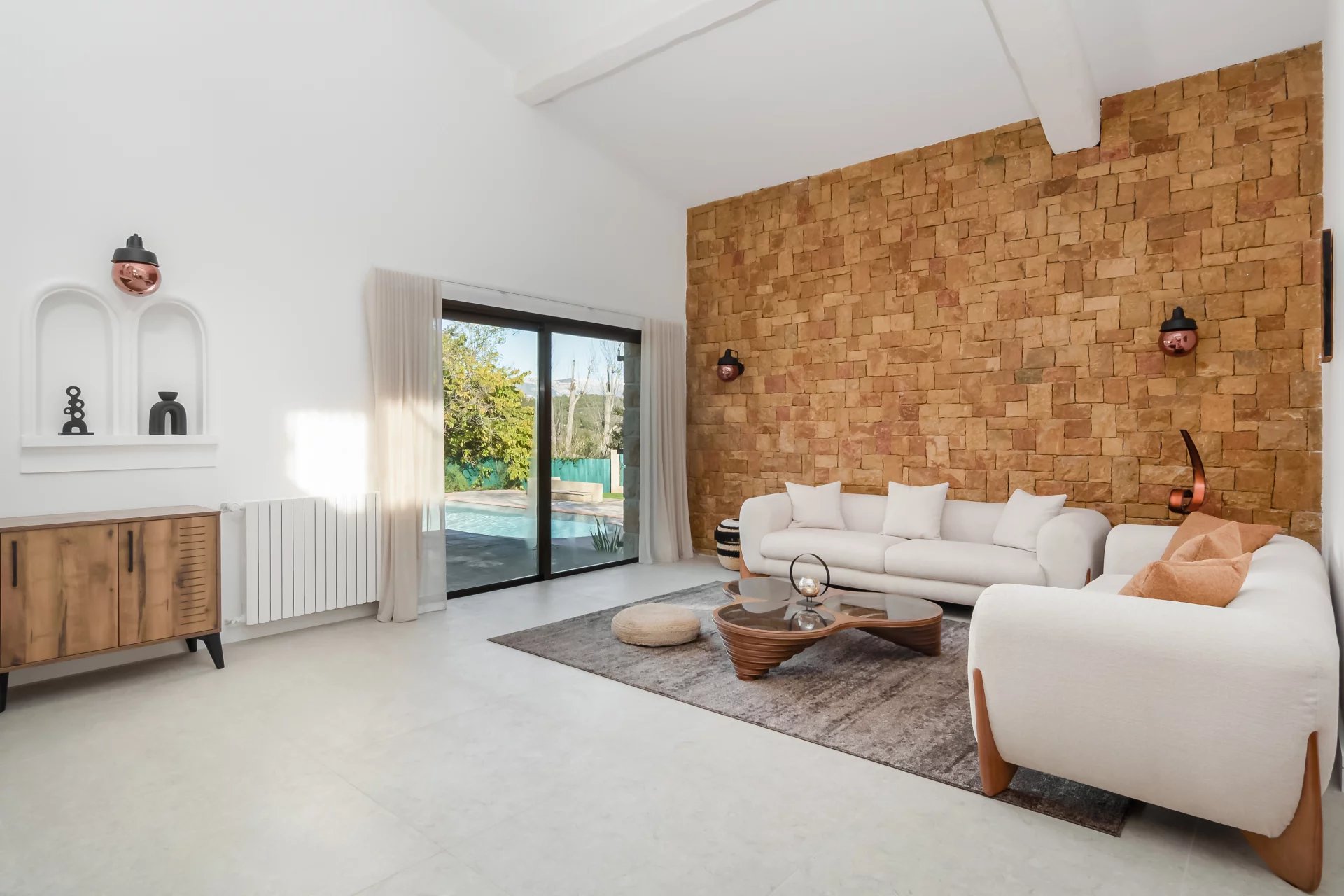 Completely renovated, the villa has 5 bedrooms, 4 of which are en-suites, so plenty of space for the family and visiting guests, each offering a private and functional space. A vast, bright living room, with cathedral ceilings and a feature stone wall followed by a fabulous kitchen-dining area, opens harmoniously onto the outside, providing a warm, friendly space.