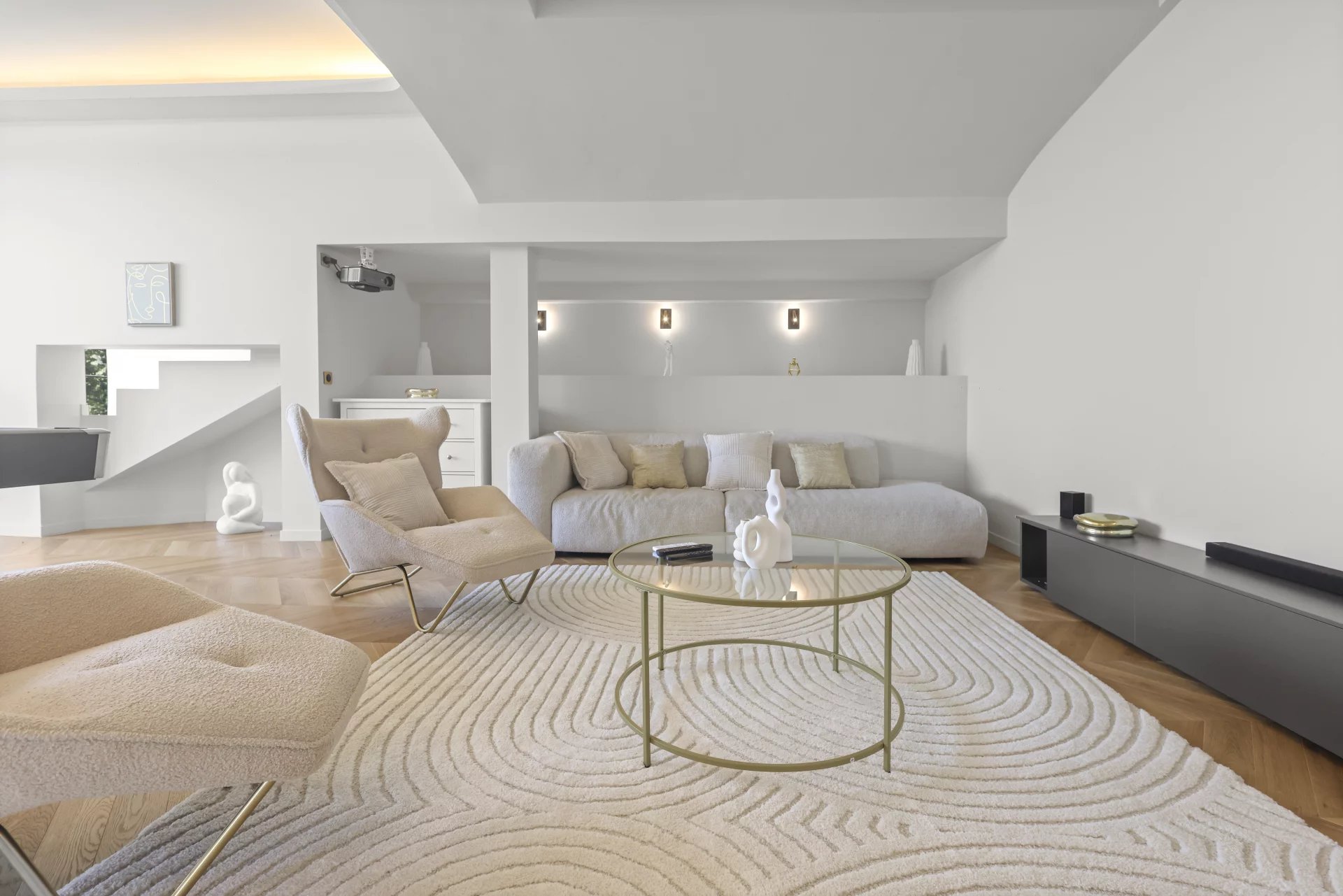 The garden level offers a beautiful additional lounge, designed as a home cinema and billiard room, a fifth en-suite bedroom, as well as a sauna and hammam.