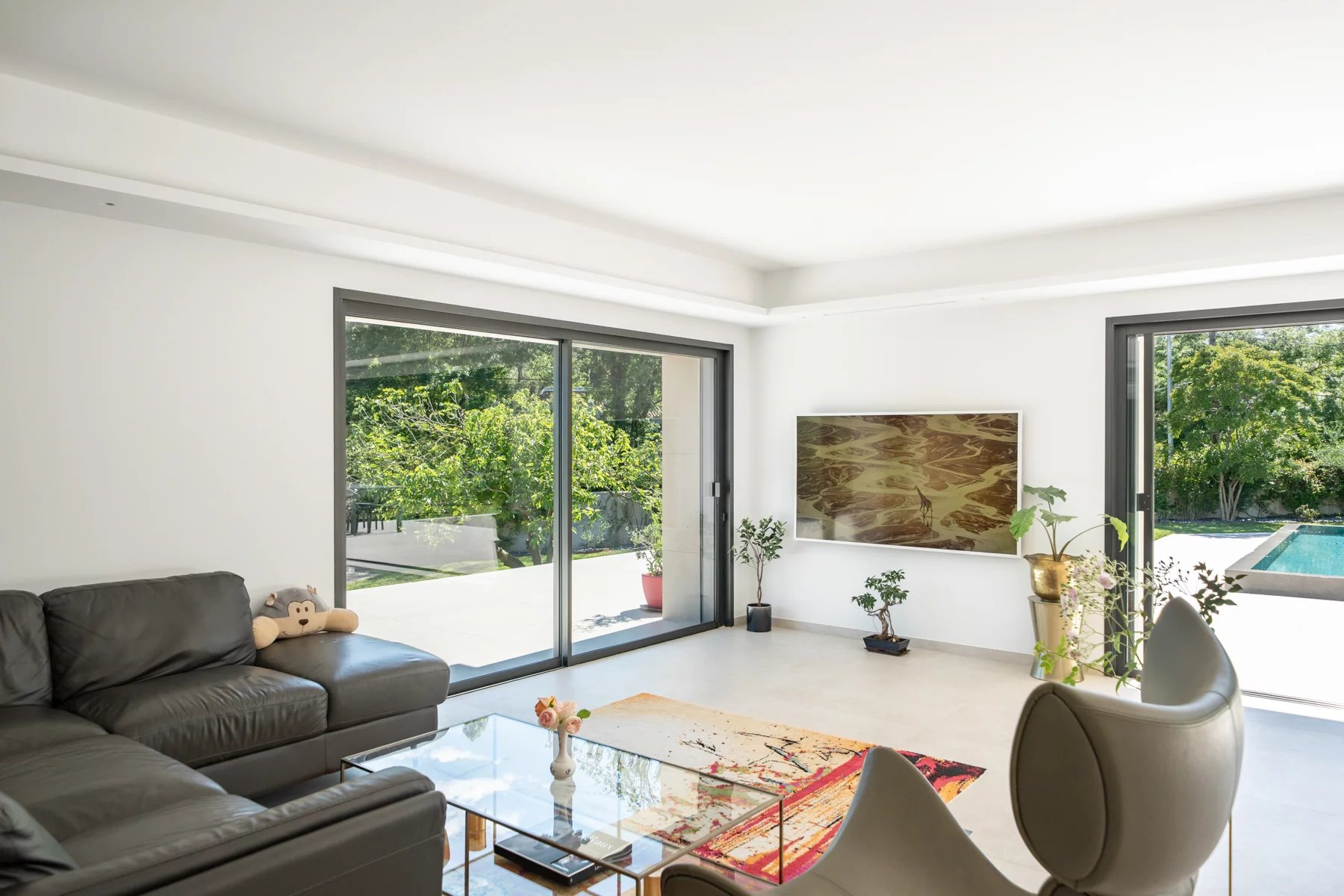 Superb contemporary villa with clean lines, offering approximately 330 m2 of living space plus annexes, located in a quiet neighbourhood, close to the village of Valbonne, international schools, and within walking distance of restaurants.