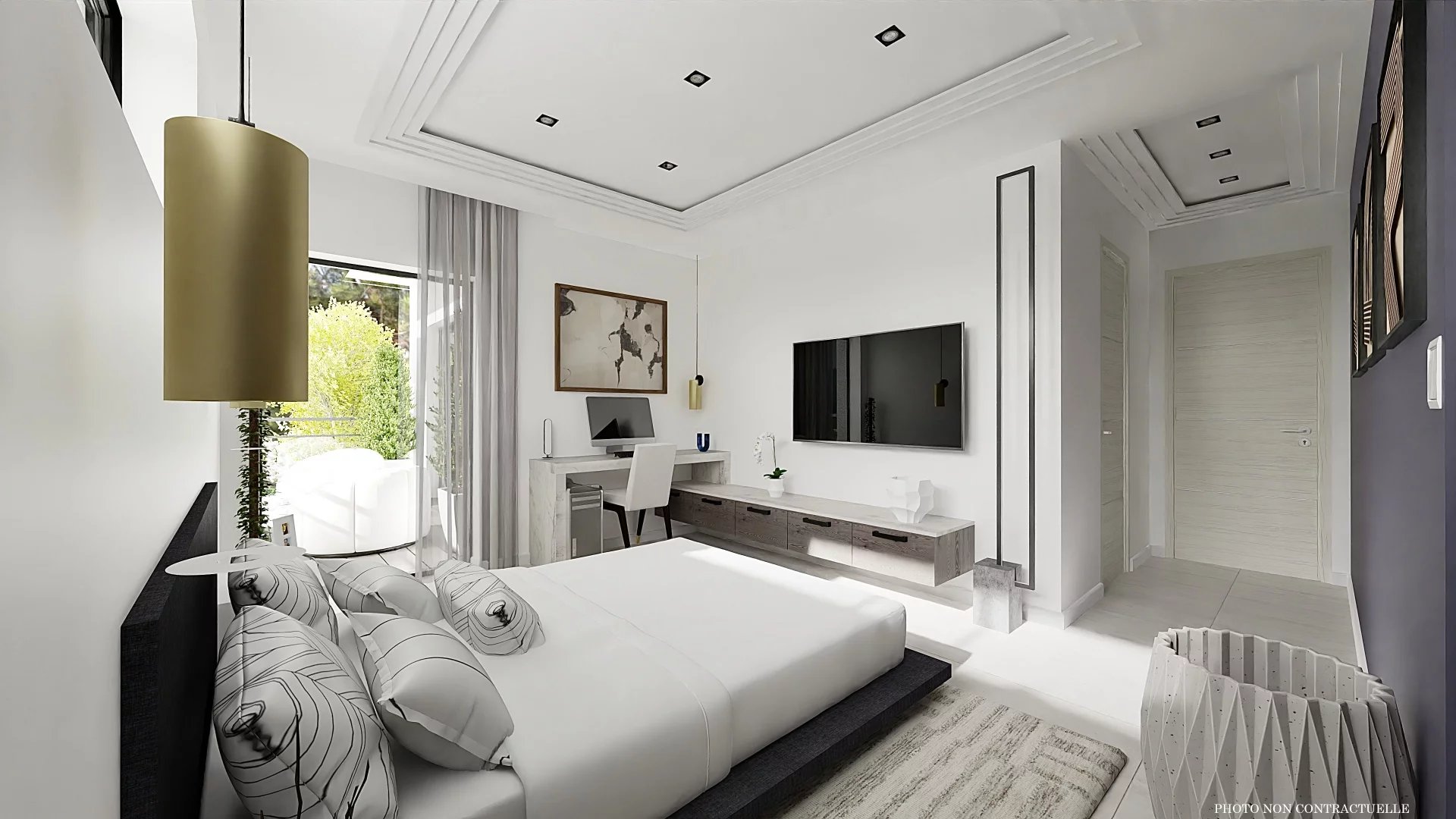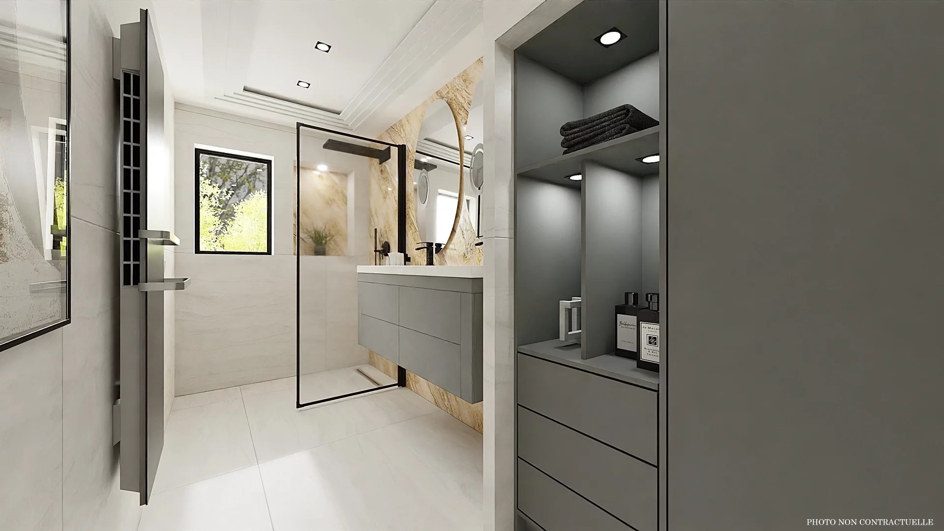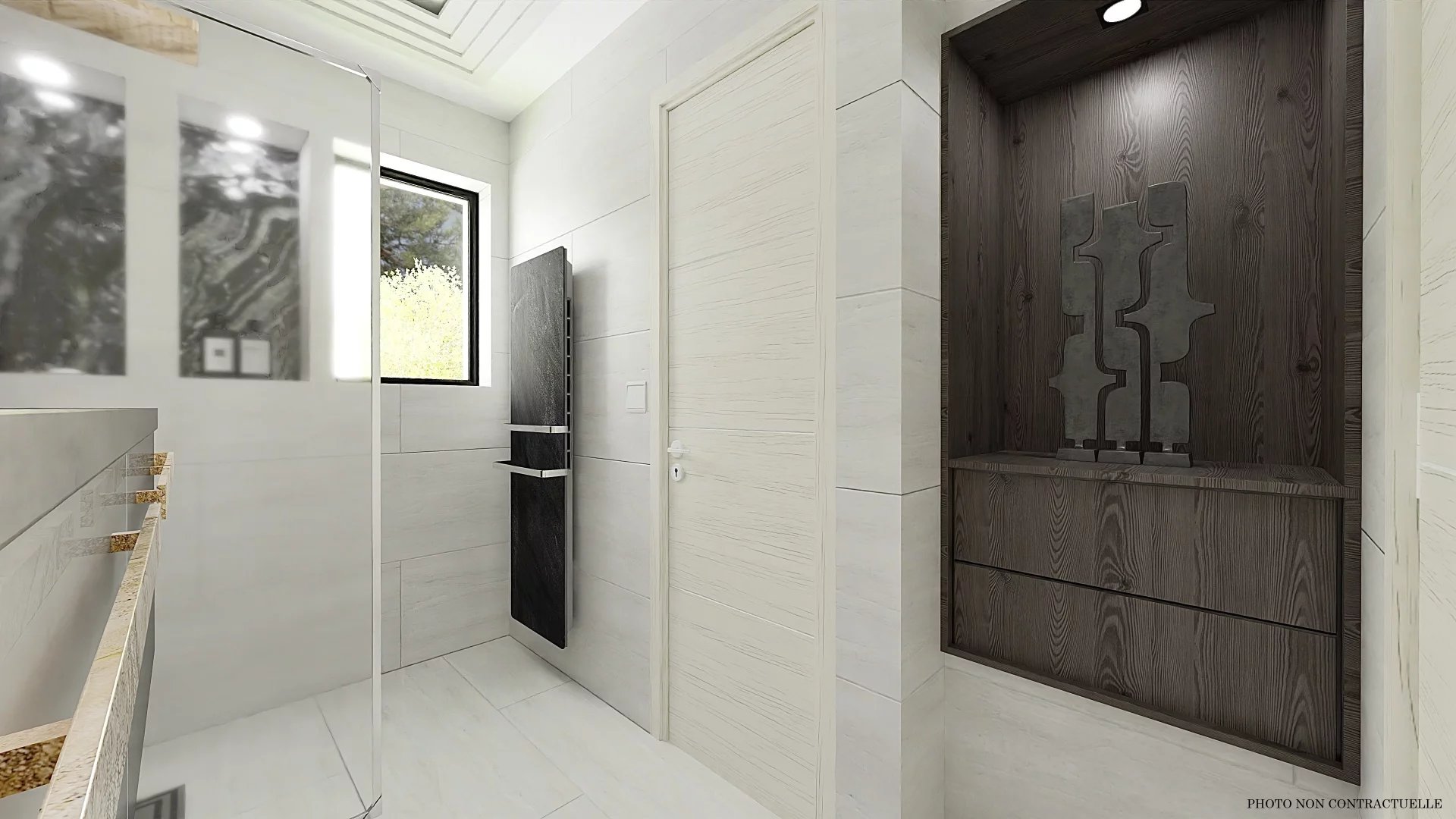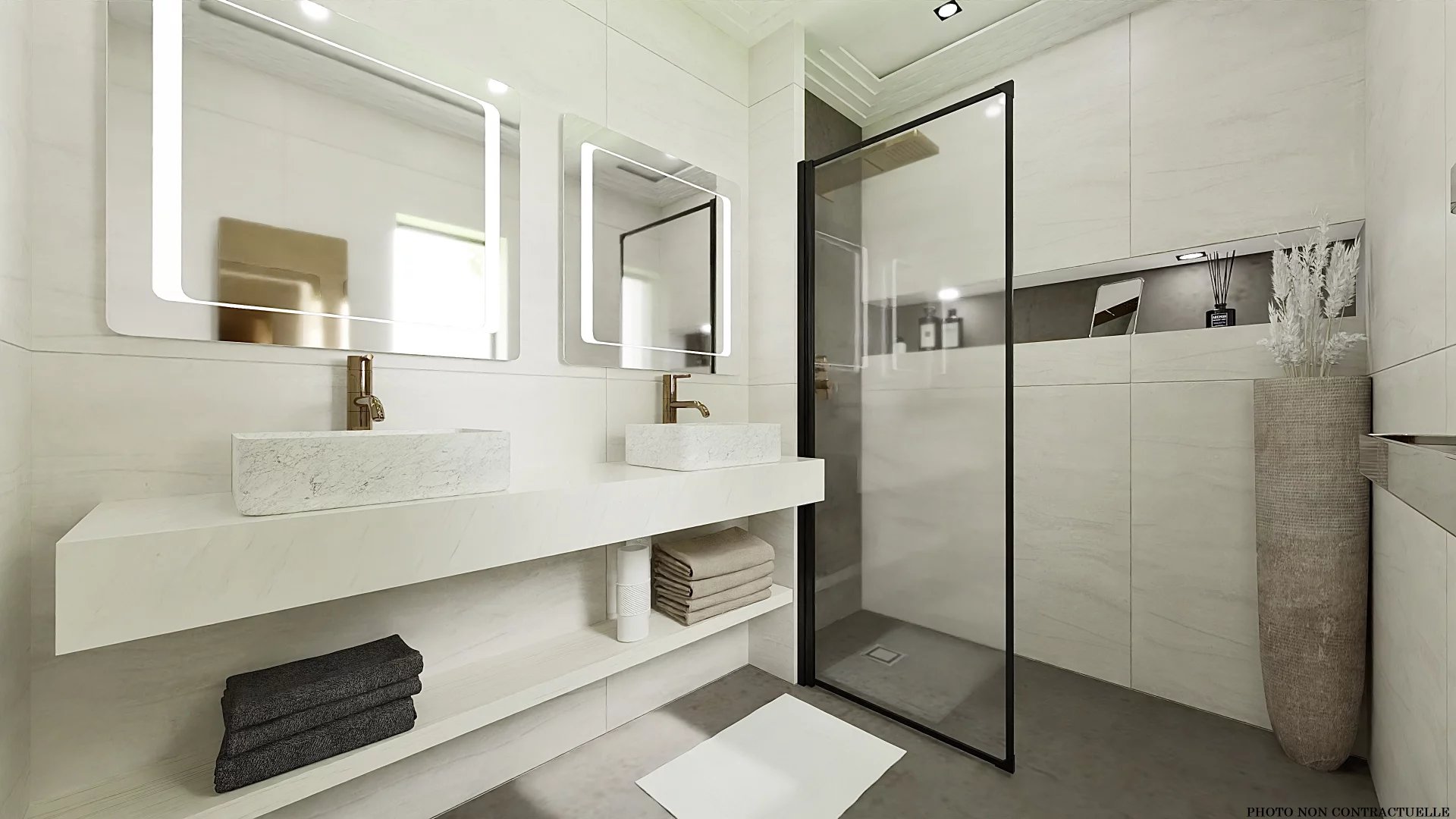 On the 1st floor: 4 bedrooms with shower rooms and toilets; 4 dressing rooms. Equipped bathrooms. Roller shutters. 2 safes