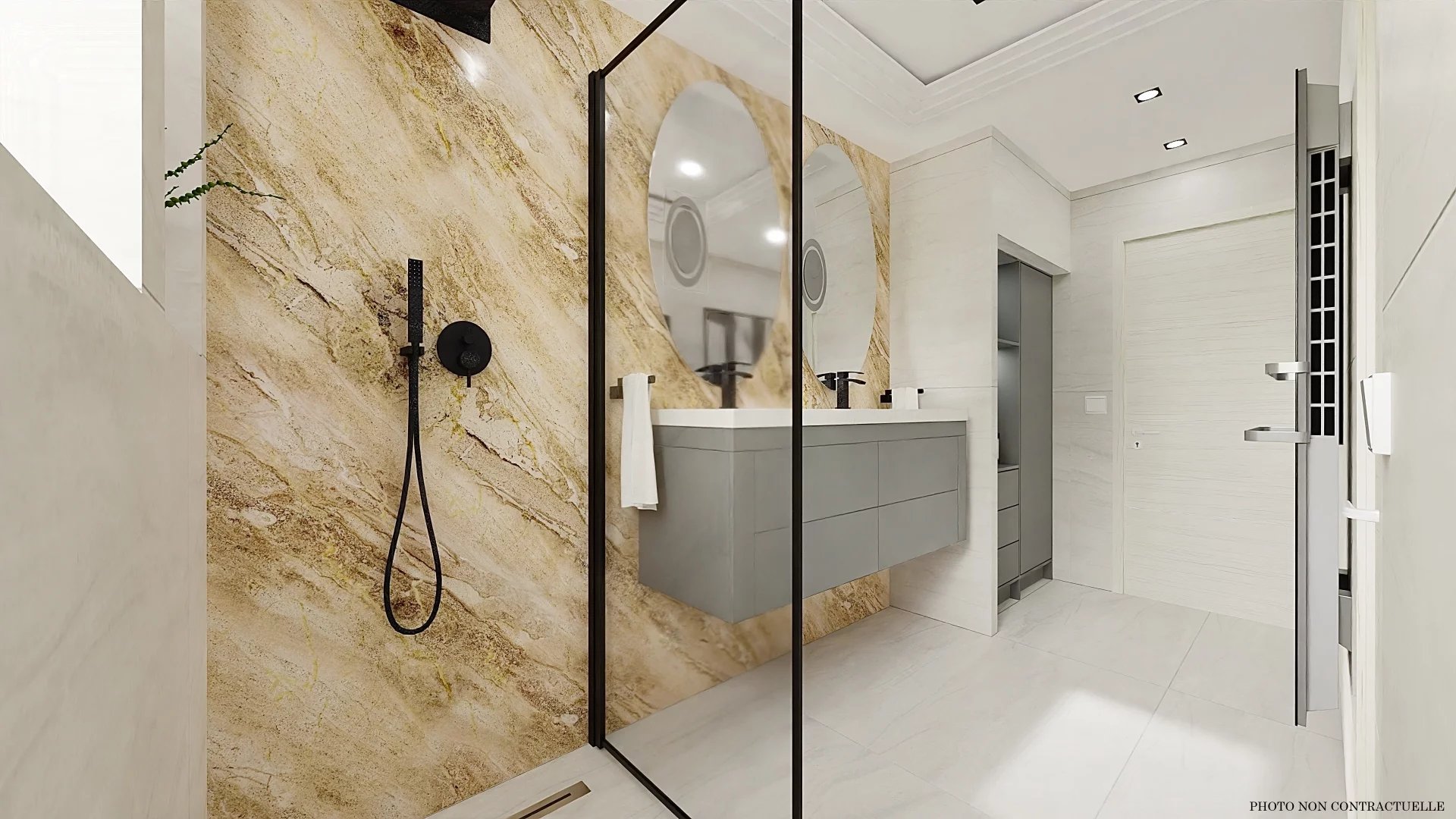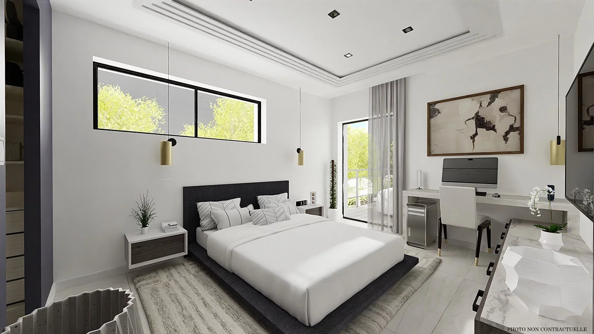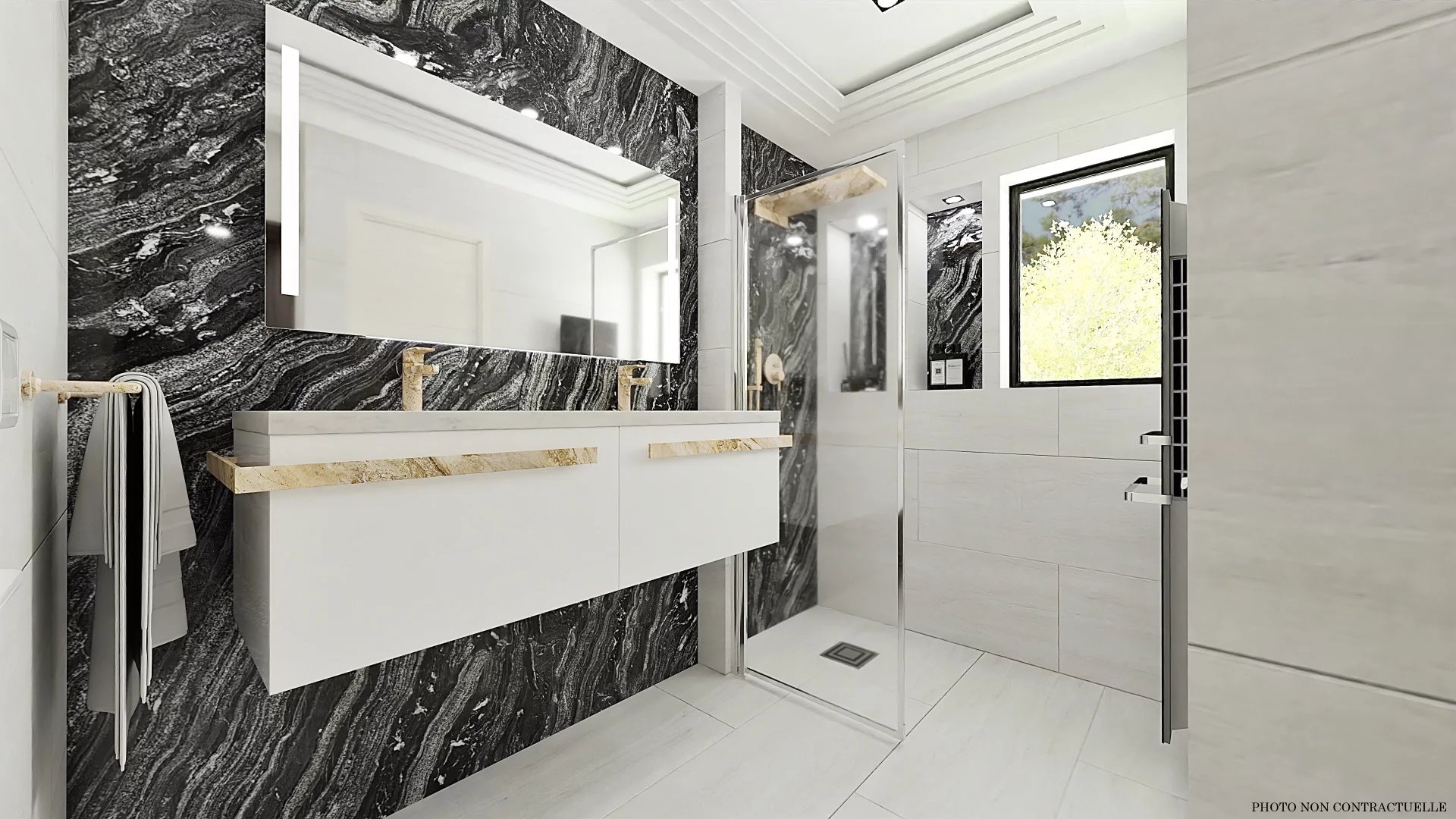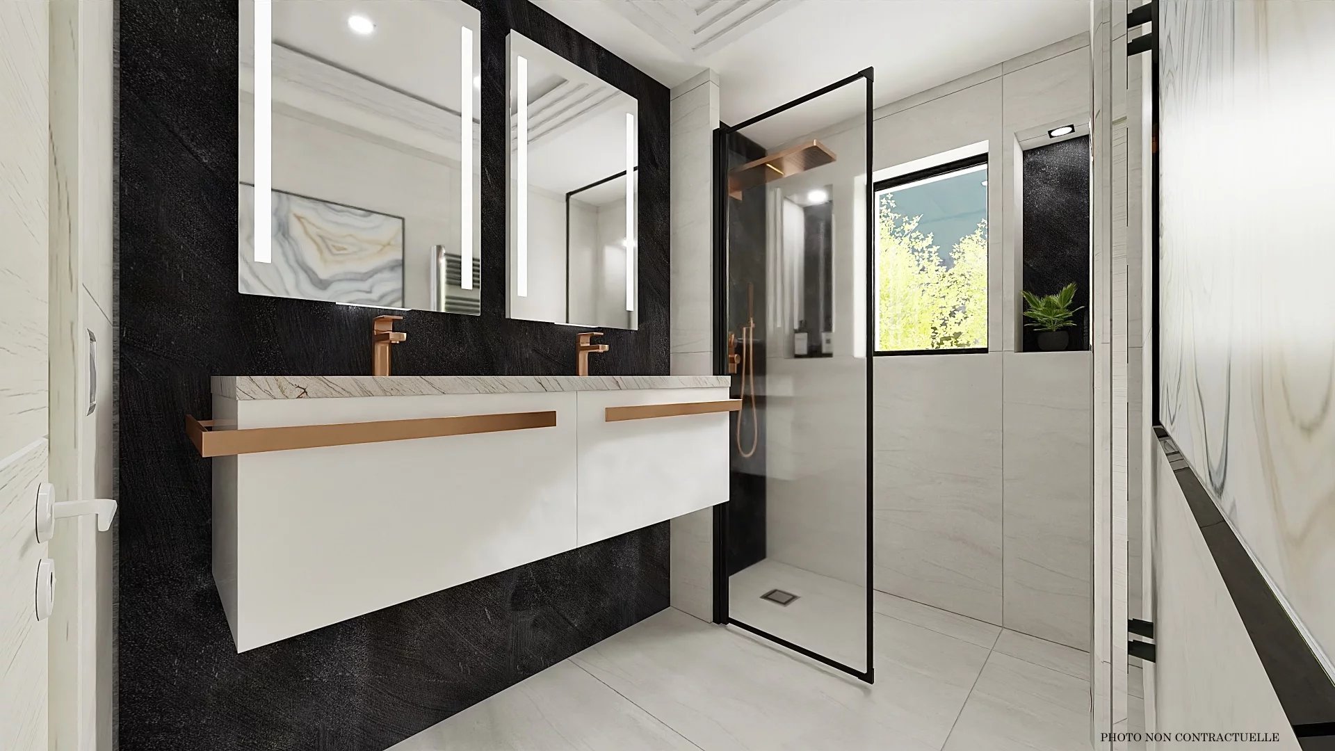On the 1st floor: 4 bedrooms with shower rooms and toilets; 4 dressing rooms. Equipped bathrooms. Roller shutters. 2 safes