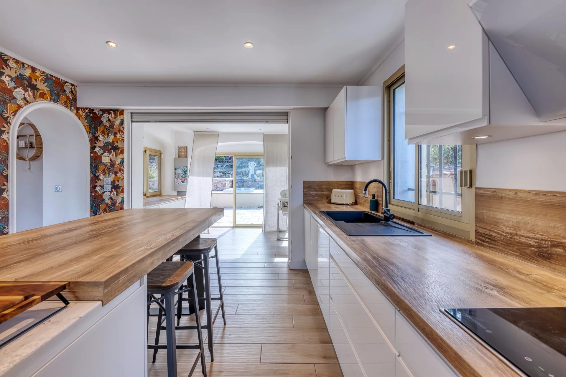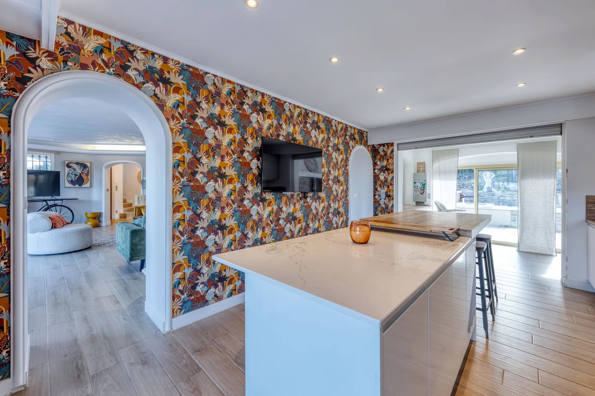 On a plot of over 3000m2, it benefits from a dominant south-facing position, an outdoor swimming pool and jacuzzi, and a summer kitchen planted with olive trees.