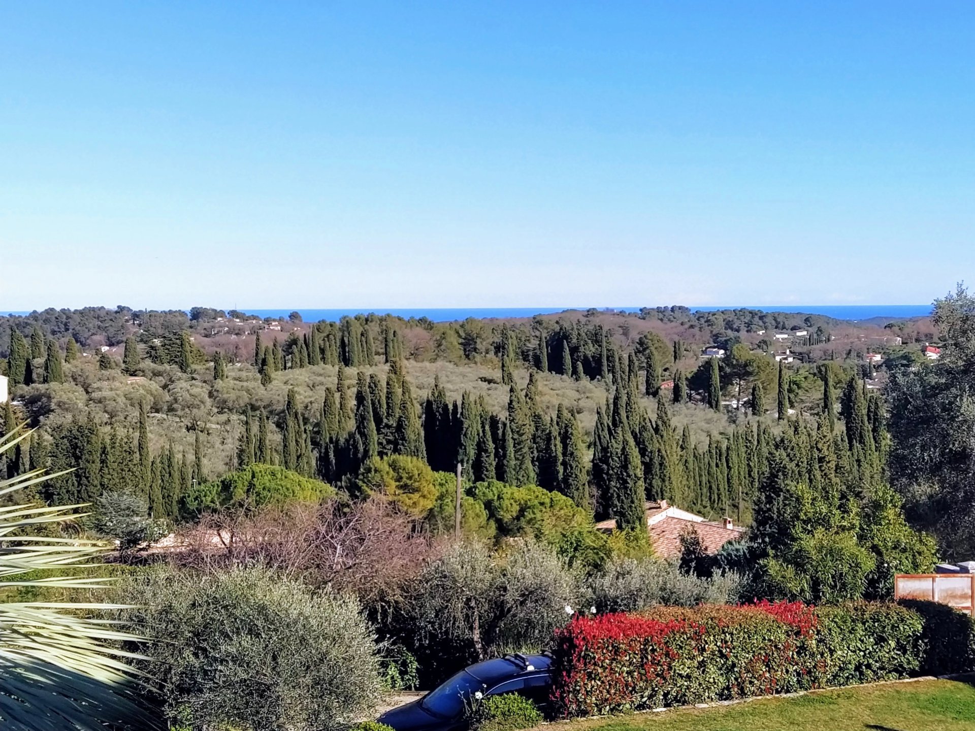Ideally located in a peaceful residential setting close to the village of Valbonne, this elegant architect-designed villa, built in 2008, is set within approximately 2,000 m2 of beautifully landscaped Mediterranean gardens and enjoys stunning panoramic views over the surrounding hills stretching down to the sea.