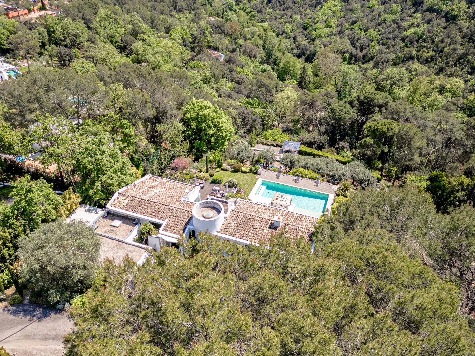 Set in a sought-after gated domain just a short distance from the picturesque village of Valbonne, this 520 m2 property offers an exceptional living environment surrounded by nature, with no overlooking neighbors, full southern exposure (160 degree), and panoramic views over the Brague forest.