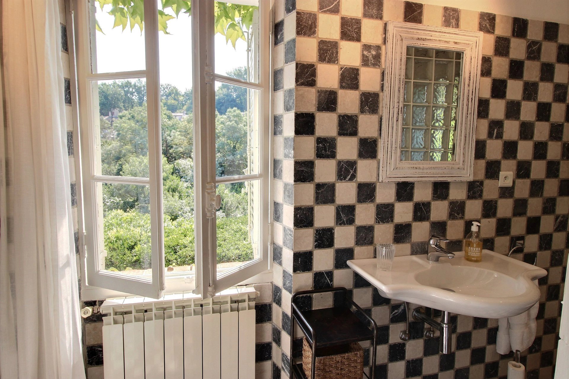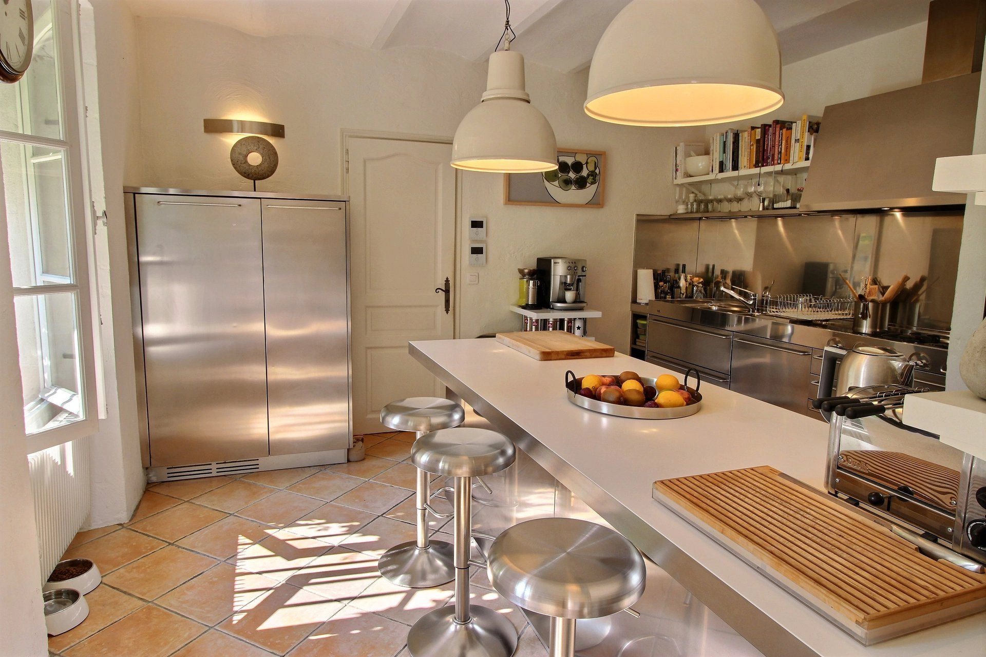 This authentic property has allot of charm, volumes and light. Its situated on a piece of flat land (6,000 m2) with swimming pool, olive trees, cypresses and other century-old species, large car parks allowing to receive many guests at the same time. South east exposure and view of greenery and hills.
