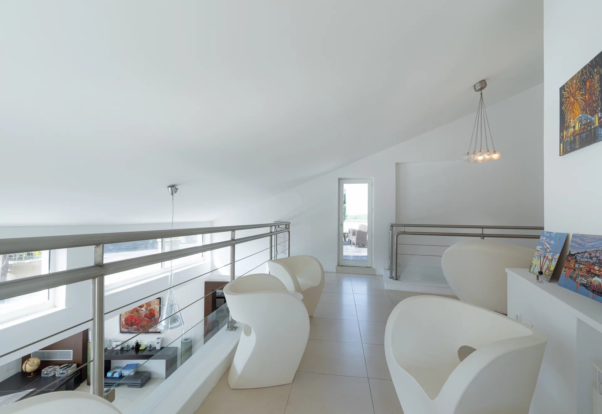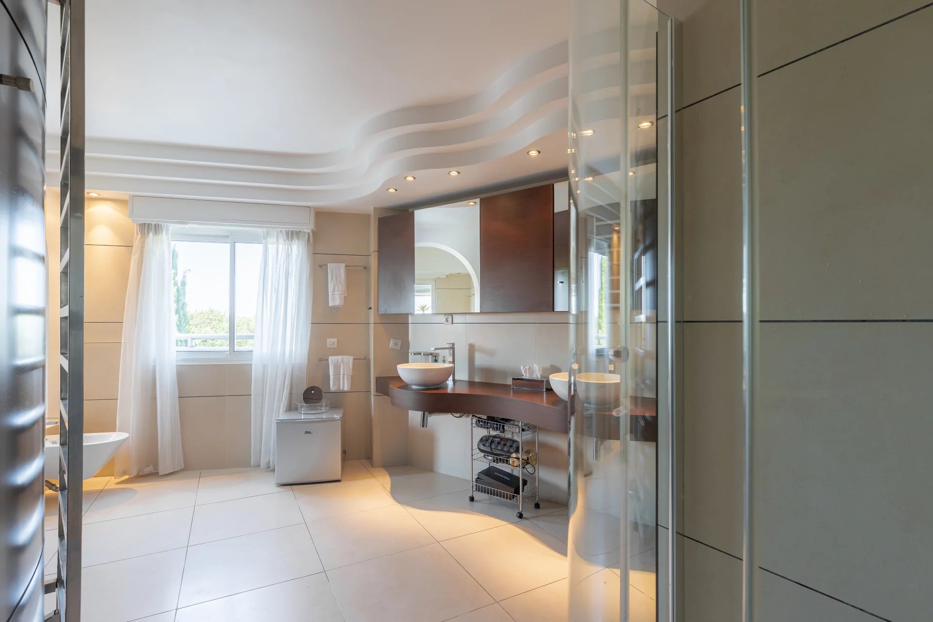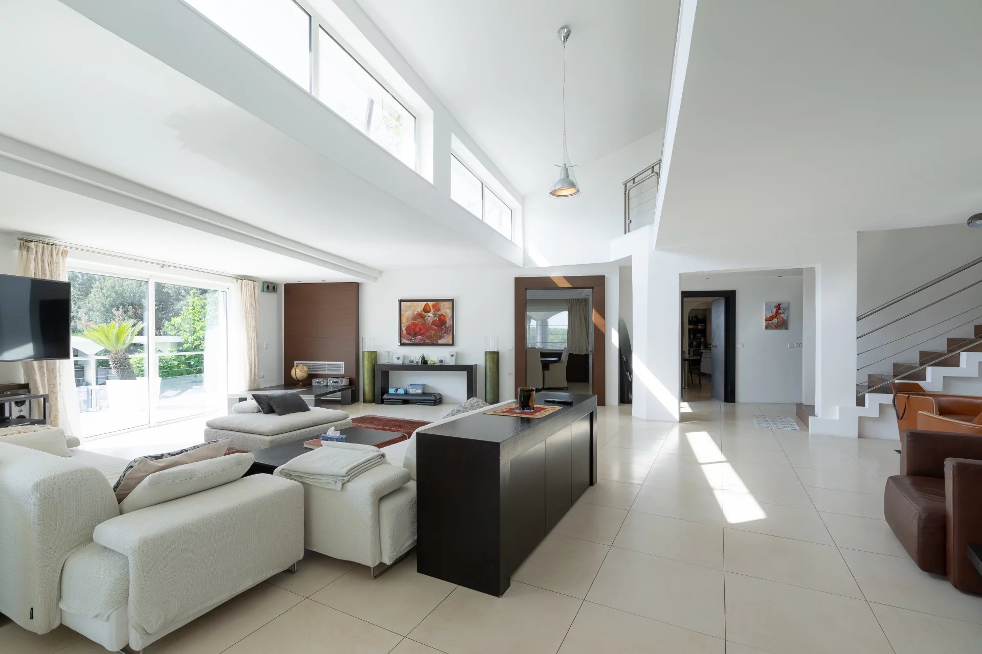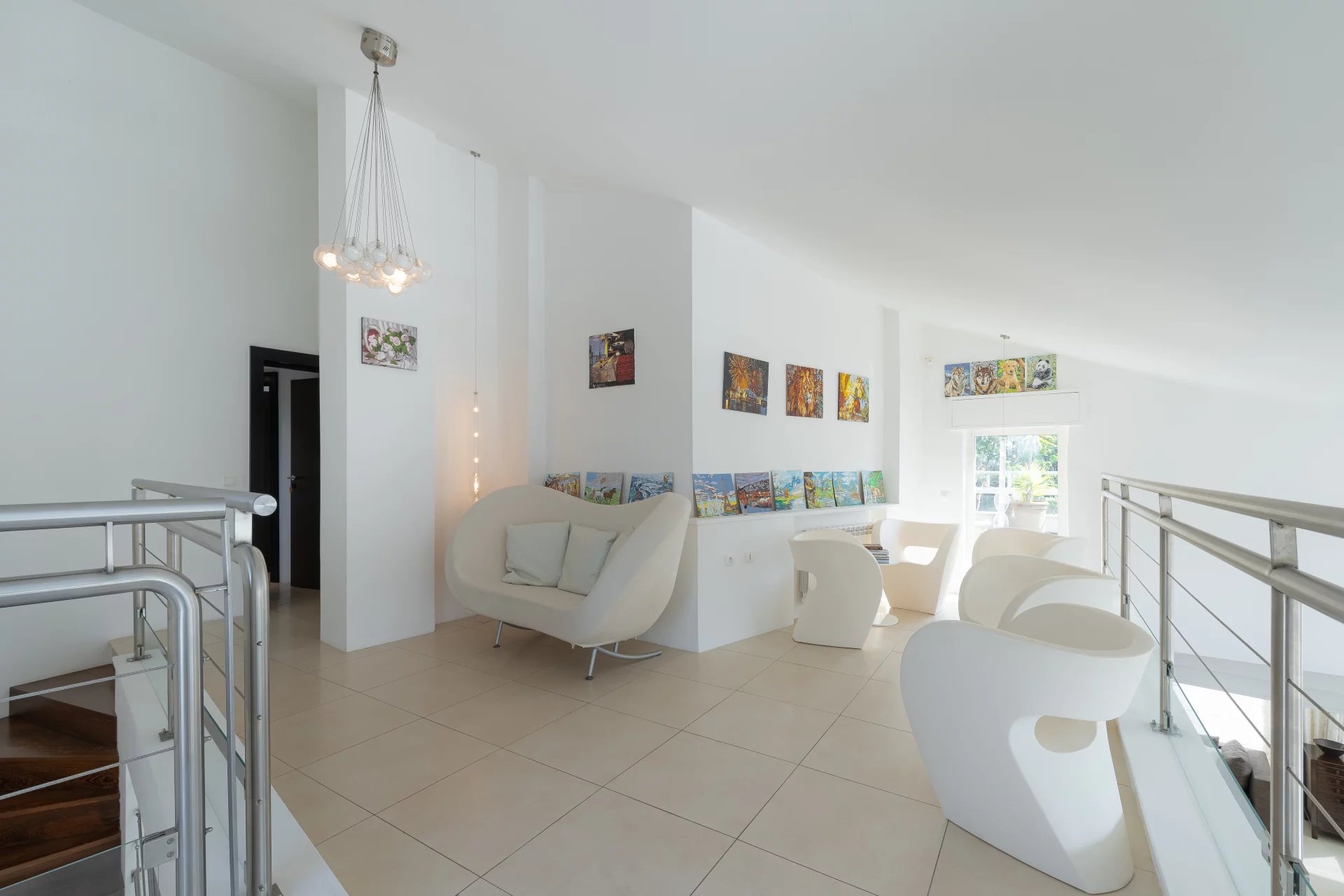 The main house has 630 m2 of living space distributed as following, main level a big open reception room, kitchen, 4 bedrooms, 3 bathrooms, 1 shower and boudoirs. At mezzanine level, owner’s suite and study.