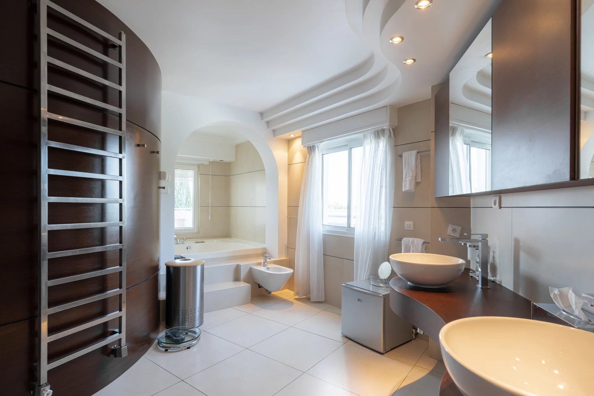 In the basement there is a home cinema, bar, 2 further bedrooms and 2 bathrooms plus some utility rooms and storage ( wine cellars, laundry…).