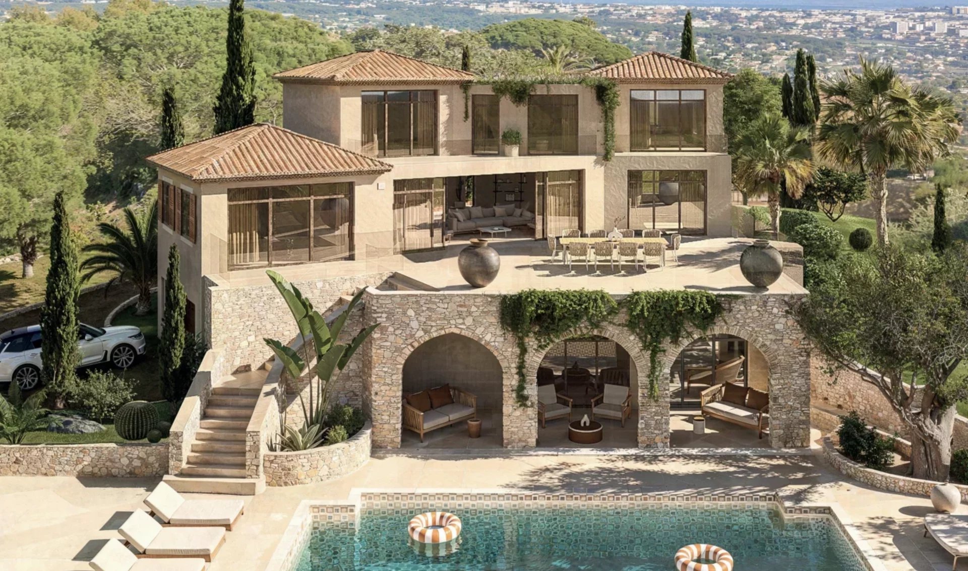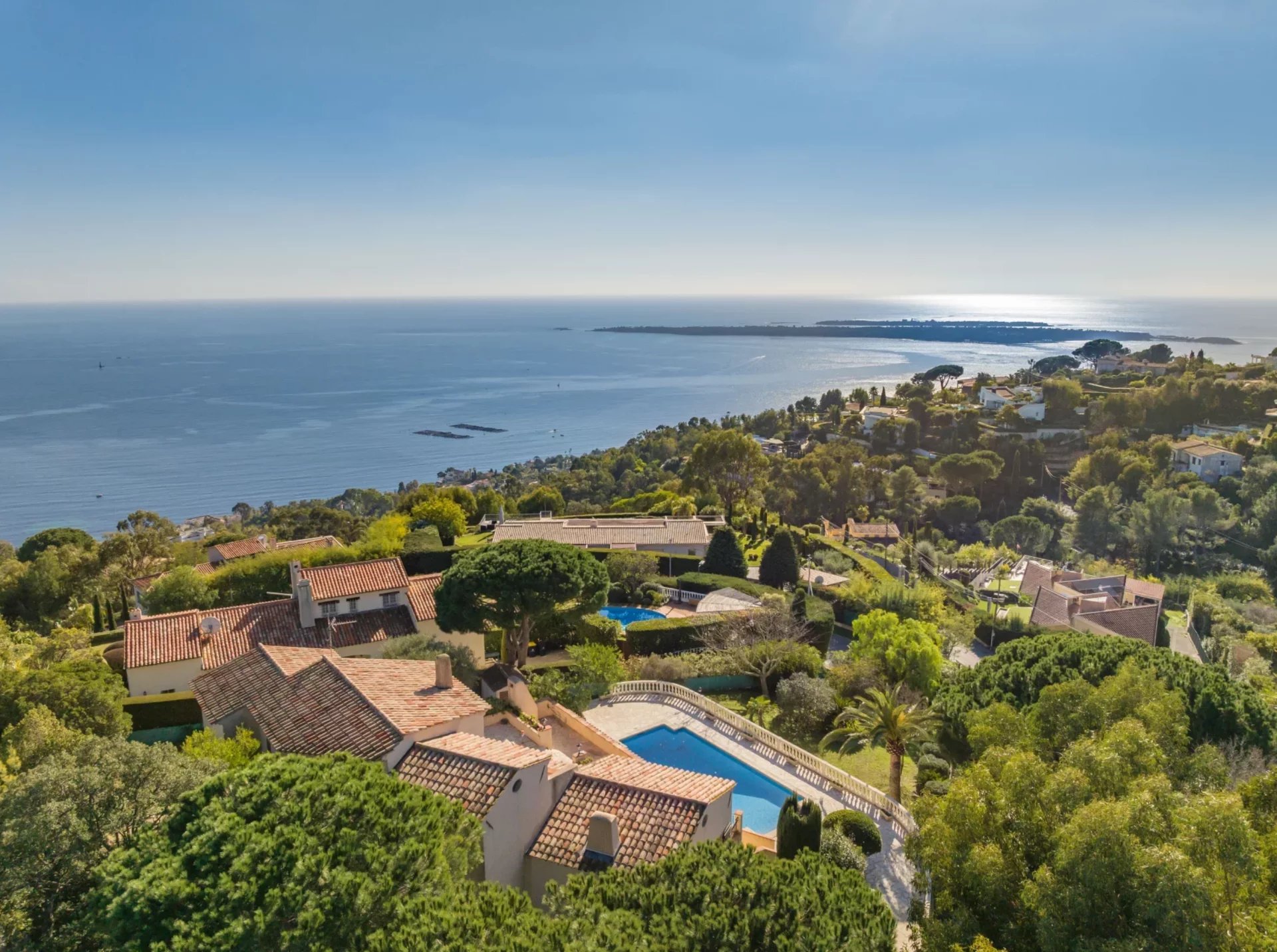 Set in the prestigious Super Cannes estate, this Provençal-style villa offers breathtaking panoramic views of the Mediterranean and the Lerins Islands.