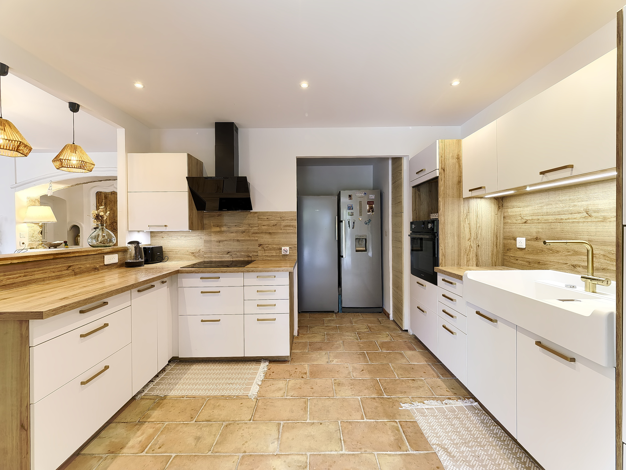 – Two terraces including a fully equipped summer kitchen with built-in barbecue and wrought iron features