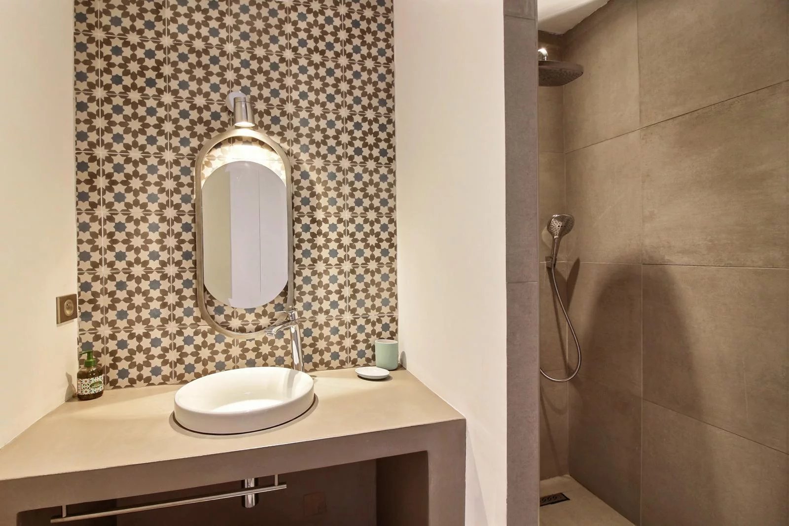 The 1350 m2 garden is flat and you have a 16×4 meter salt water pool that offers views down to the sea and the Esterel mountains. The outdoor dining area is located underneath two mulberry trees that offers shade and a cosy atmosphere while enjoying your al fresco dining.