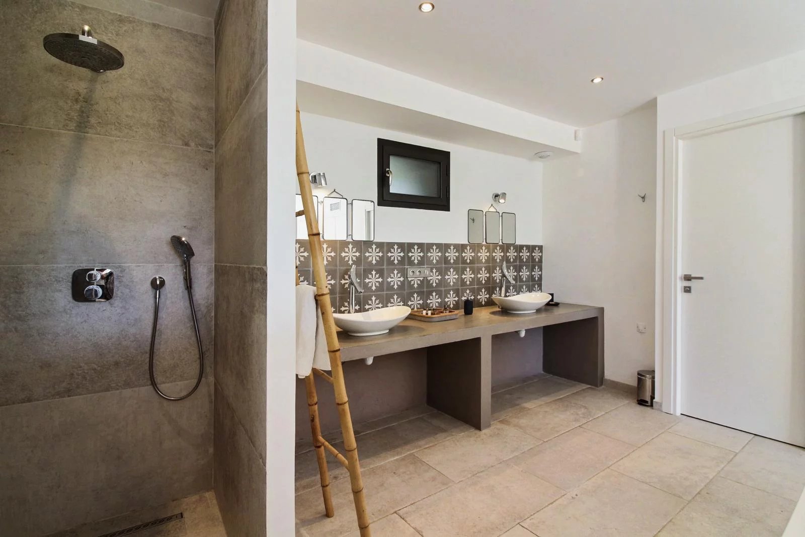 Going up to the first floor, you have the master bedroom with a double bed, bathtub, WC and his and hers sinks. The two other bedrooms both have twin beds and each one has their en-suite shower room and sink. These two share a WC.