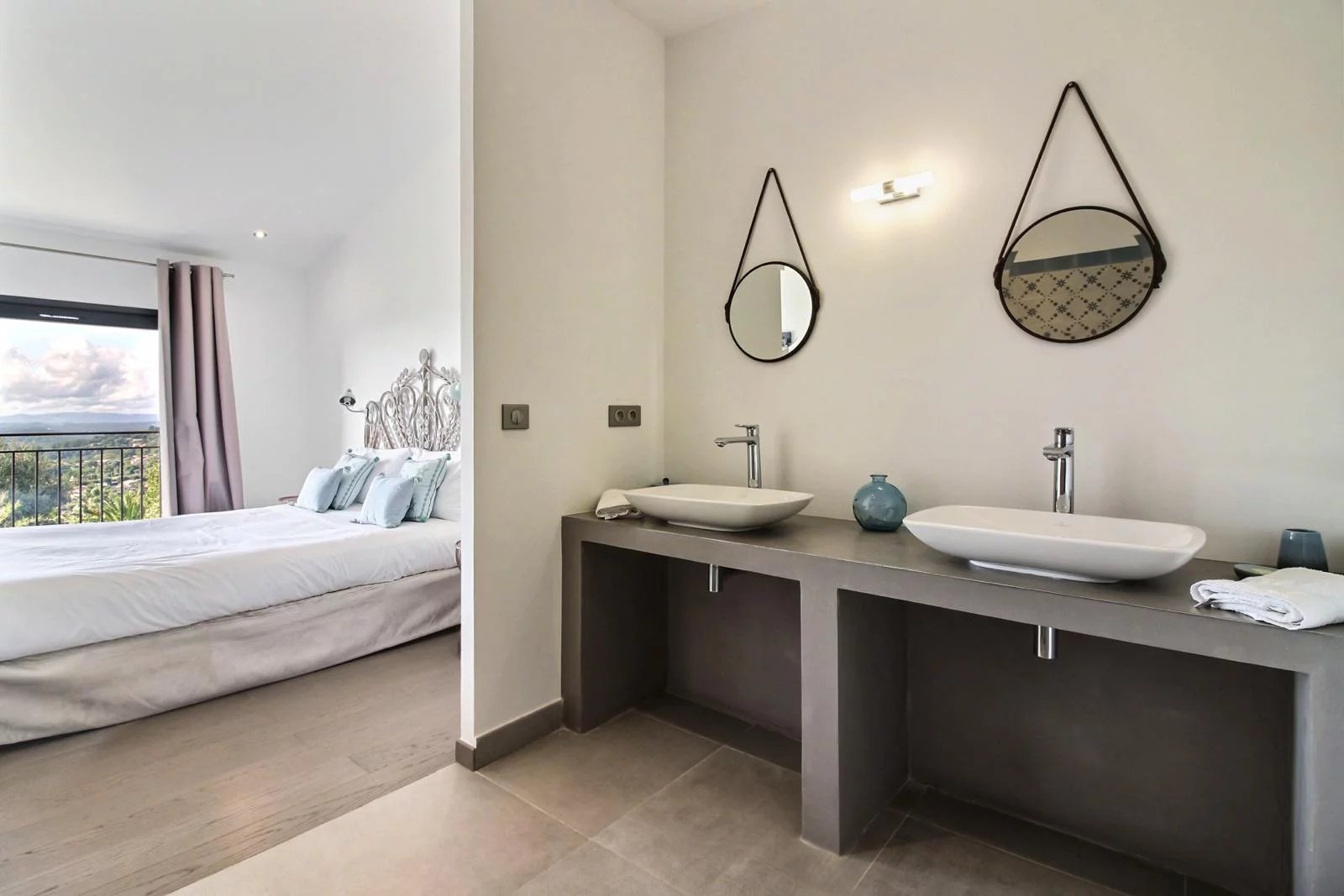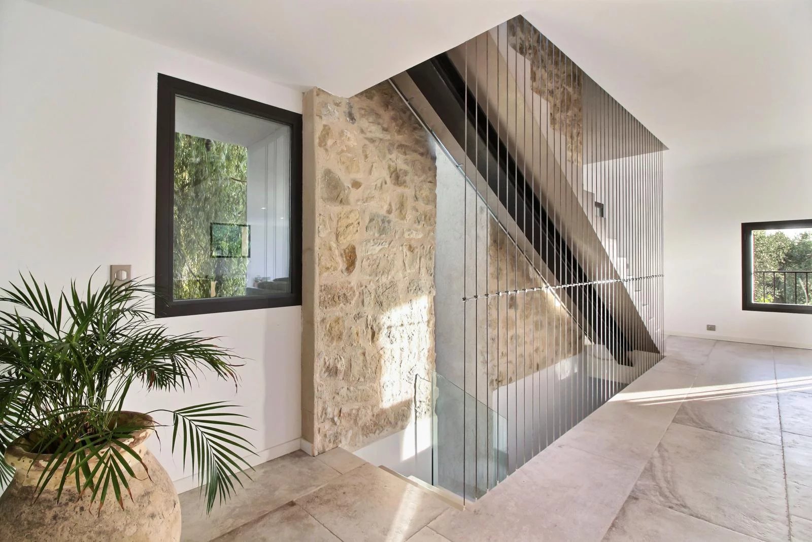 This converted farmhouse is located on the hills above the picturesque village of Vence. It’s a modern villa with a total of four bedrooms and three bathrooms.