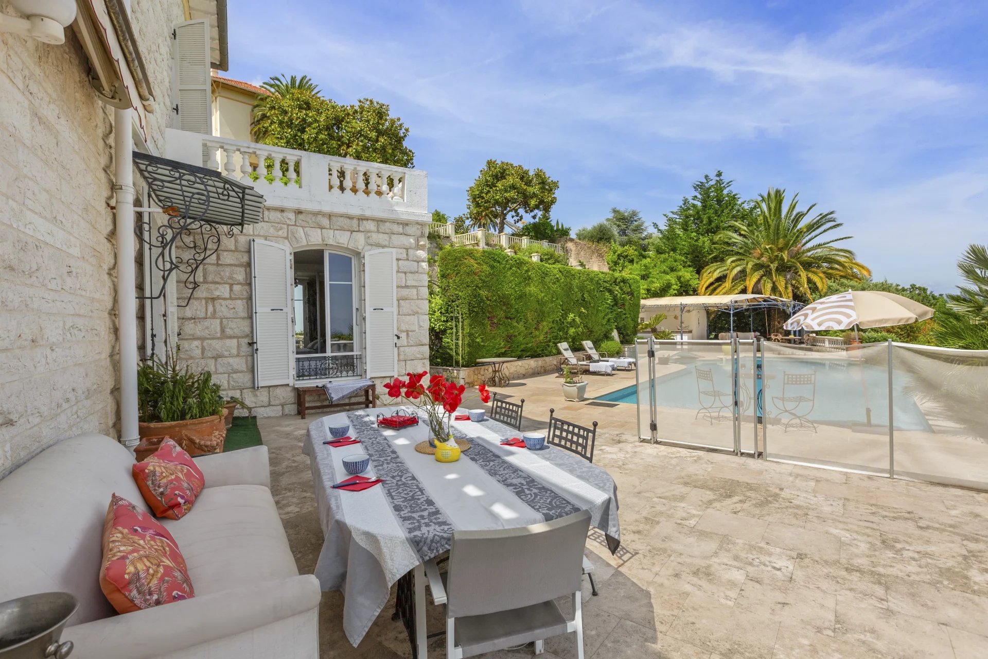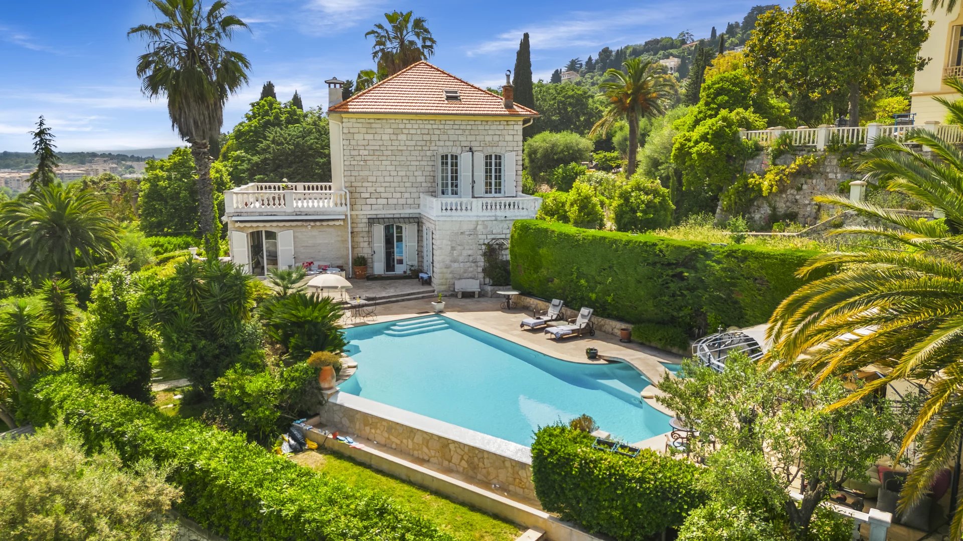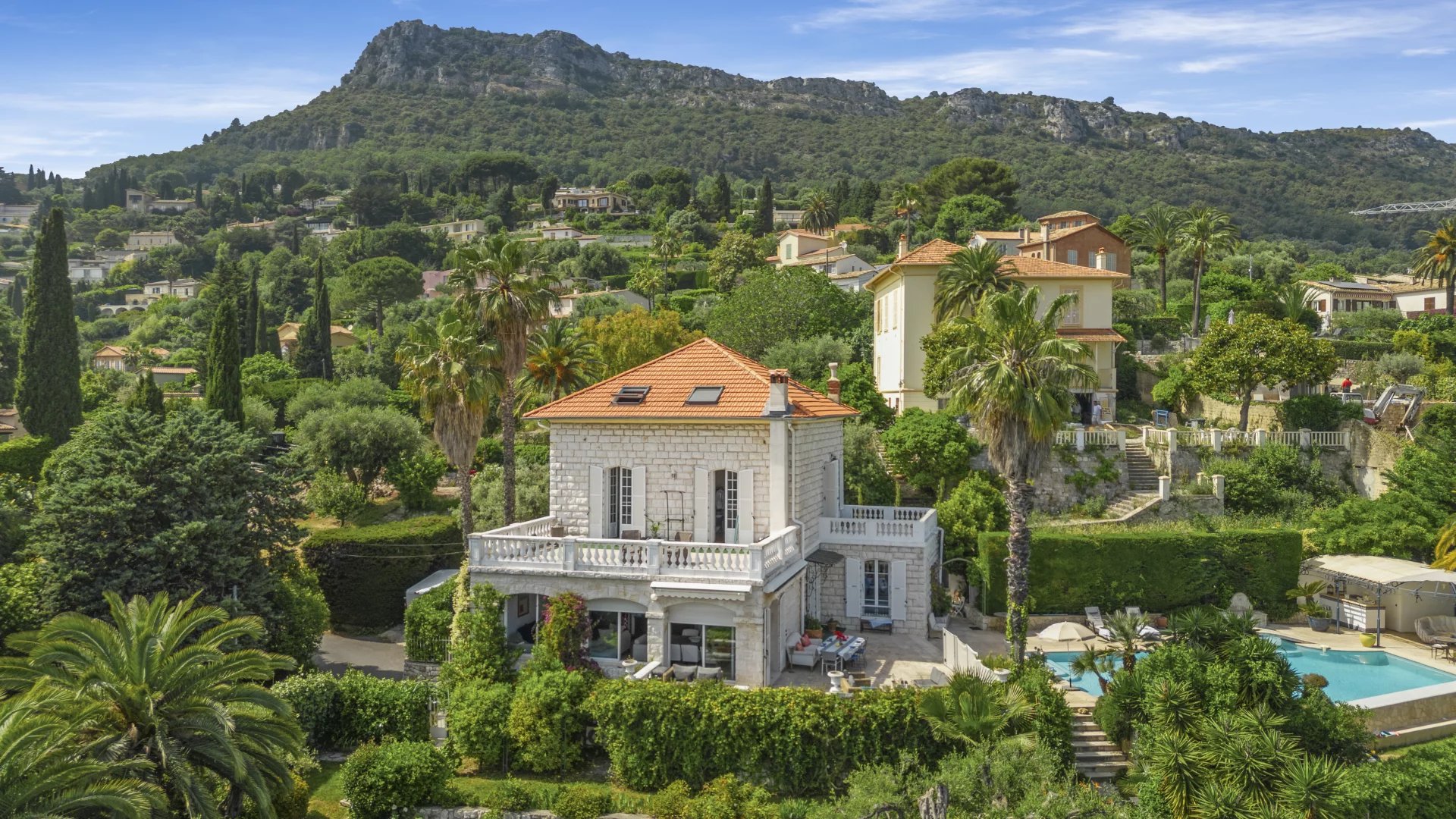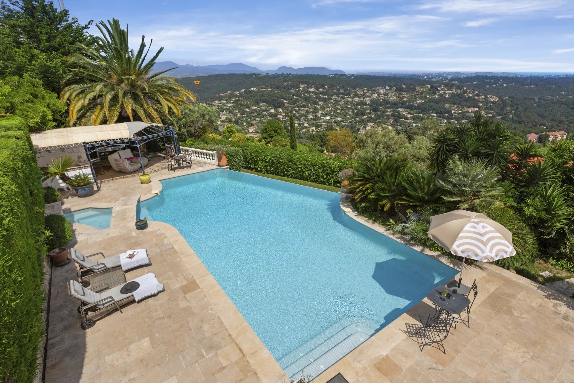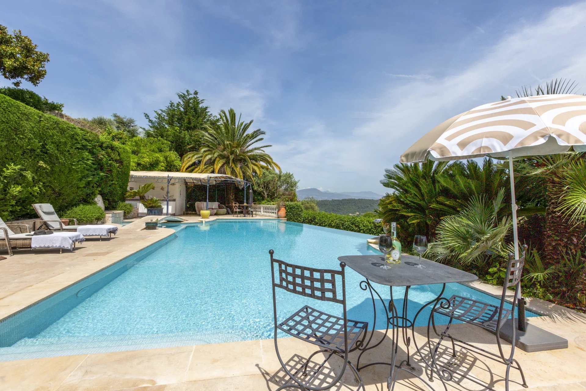 Just a stone’s throw from the village of Vence, this elegant 240 m2 stone villa offers 4 bedrooms, panoramic sea views, a 1,500 m2 landscaped garden and a heated swimming pool. A rare combination of authentic charm and modern comfort.