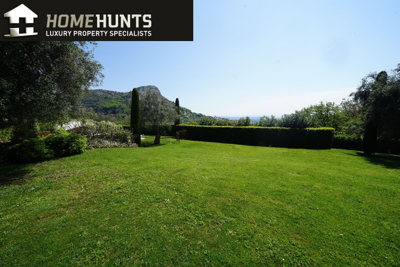 Perched on the serene hills above Vence, this elegant bastide is nestled within a landscaped estate of 4,300 m2, offering total privacy, lush greenery, and unobstructed views stretching from the Mediterranean Sea to the Baou des Blancs and the Chateau Saint-Martin.