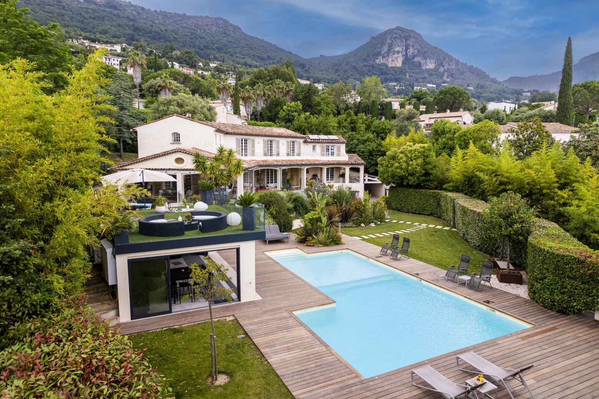 Discover this magnificent bastide nestled in a residential area, just minutes from Vence, offering absolute tranquility on a plot of approximately 2700m2 with a heated pool and a large pool house.